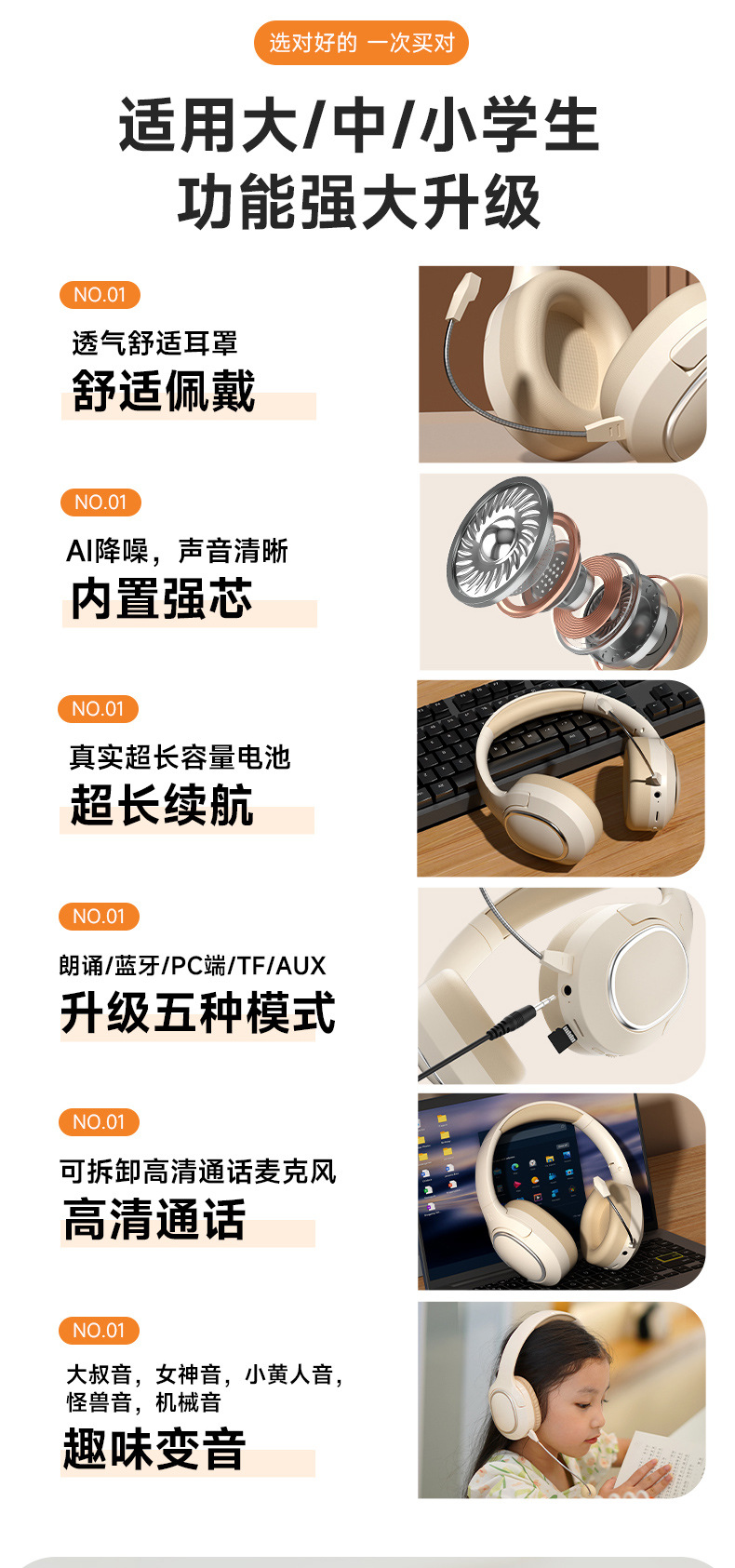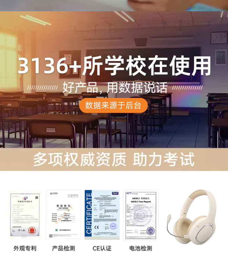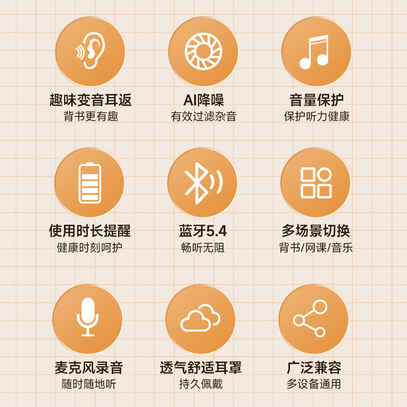 Recording Earphones for Children's Recitation and Learning, Student Endorsement Artifact, Immersive Memory Factory Headwear Wireless
