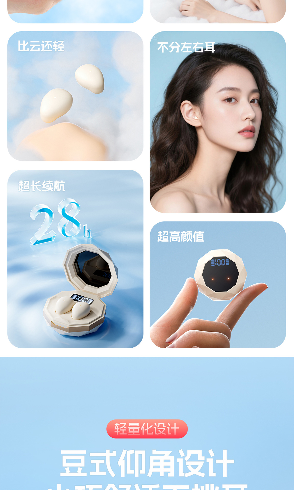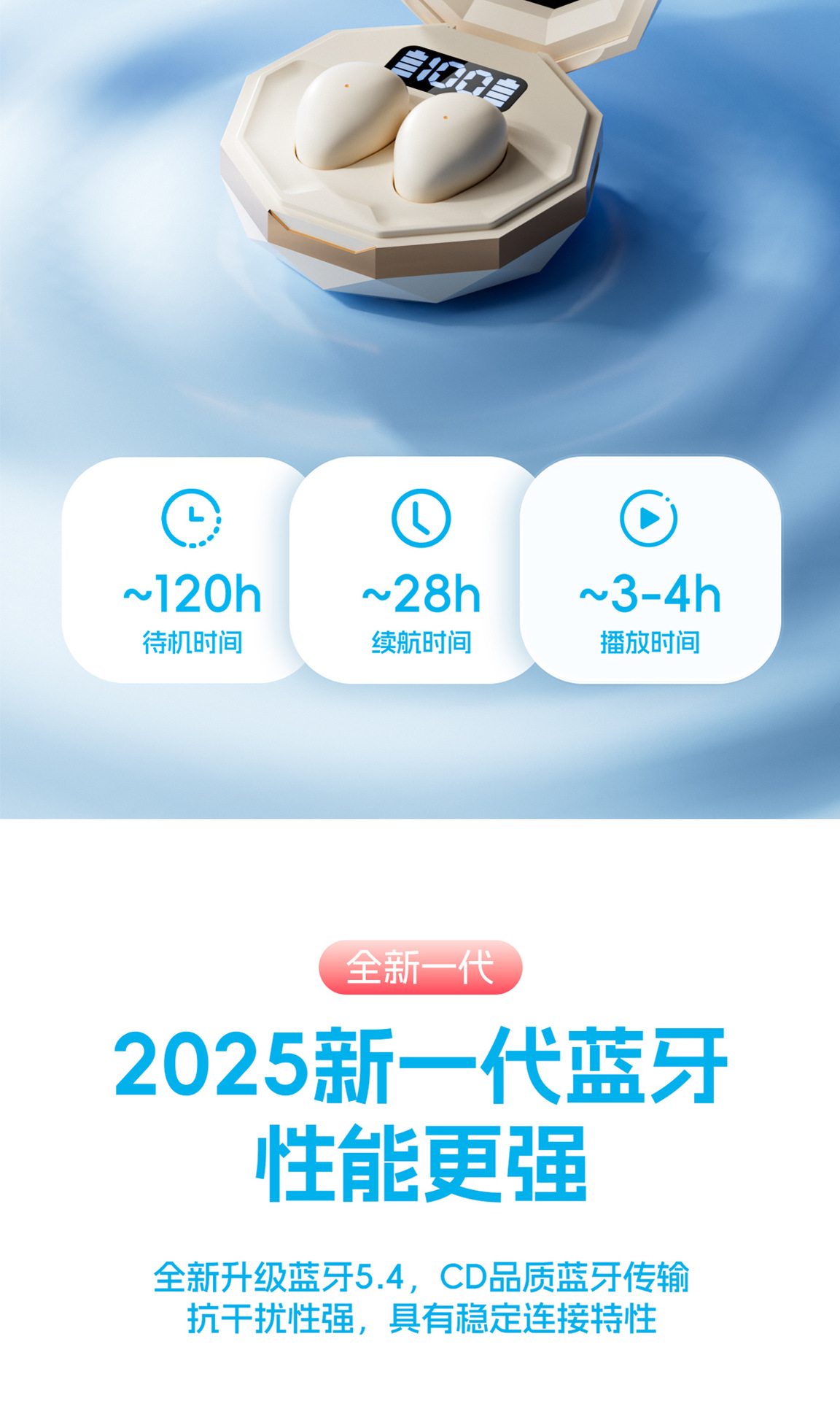 | 功能 | 超长续航;支持音乐;数显屏幕;电竞低延迟 |