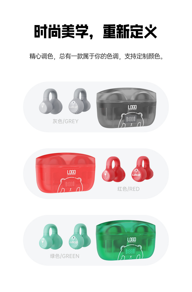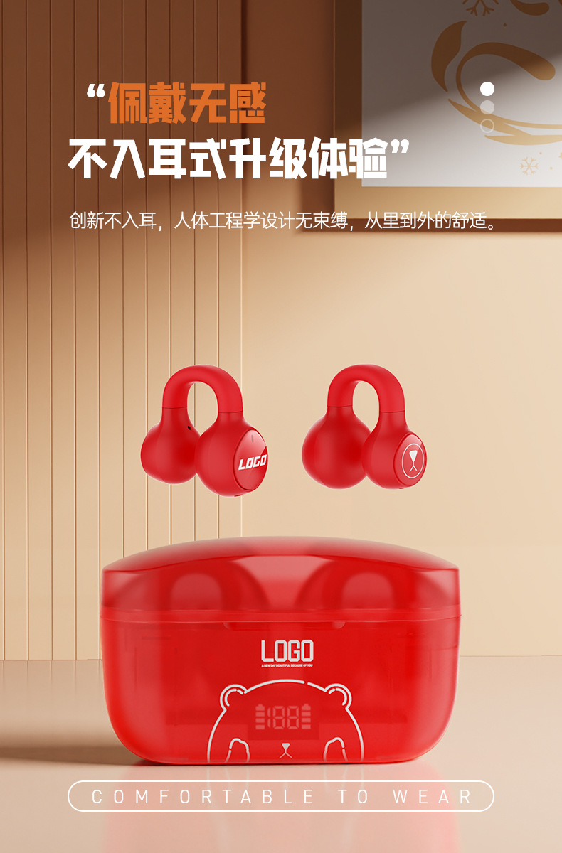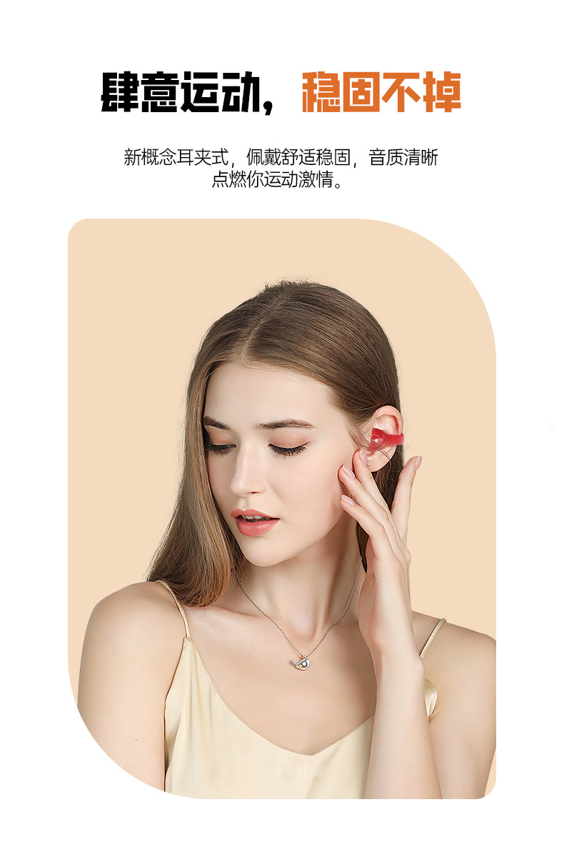 Bone conduction Bluetooth earphones wireless ear clip type non in ear noise reduction sports running 2025 new model with long battery life