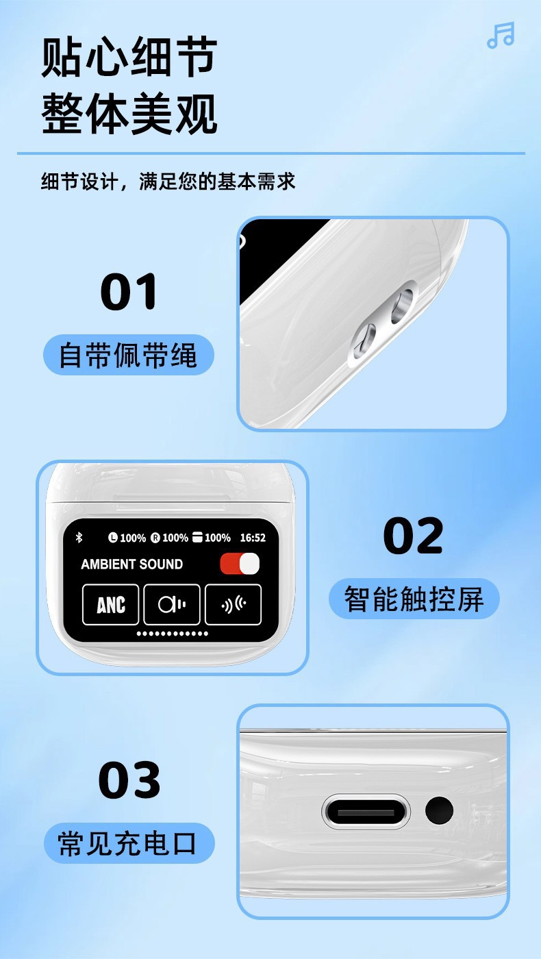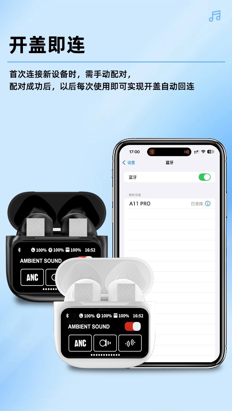 Cross border Huaqiang North Jerry Earphones A11pro Touch Screen Call Noise Reduction Multi function Display Screen Earphones A9pro