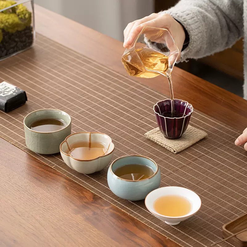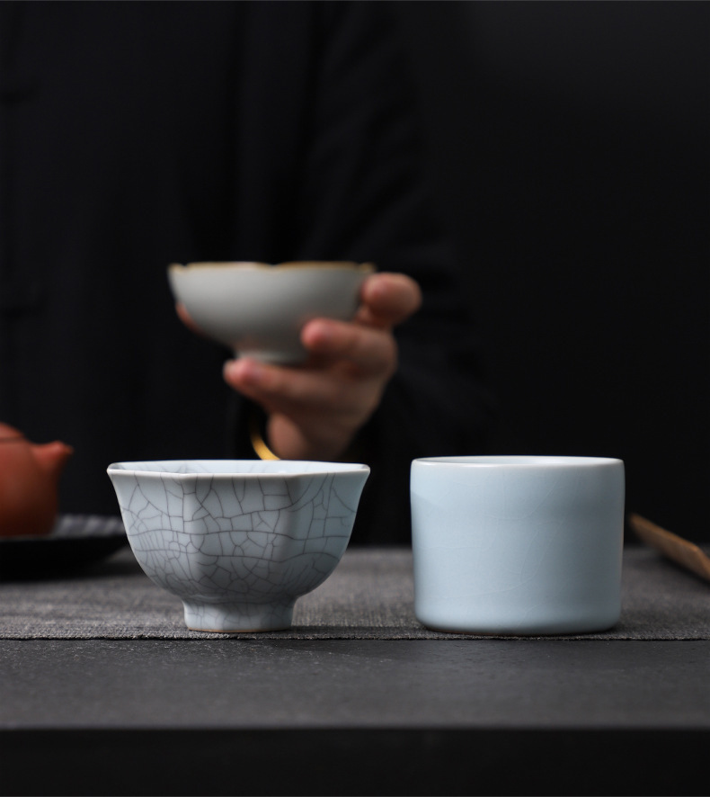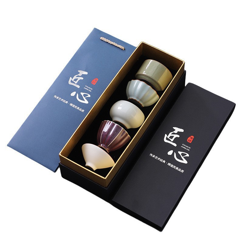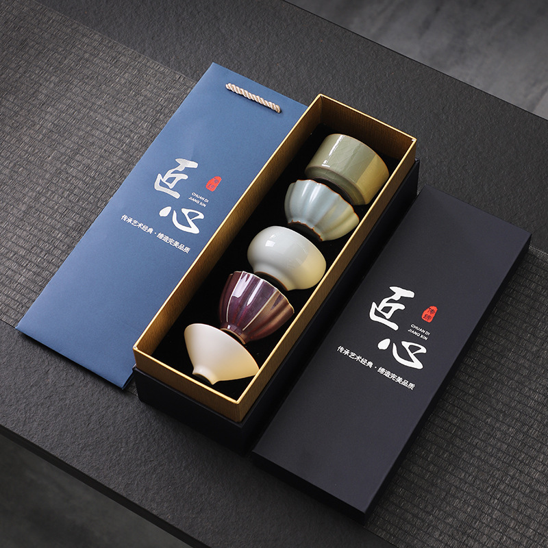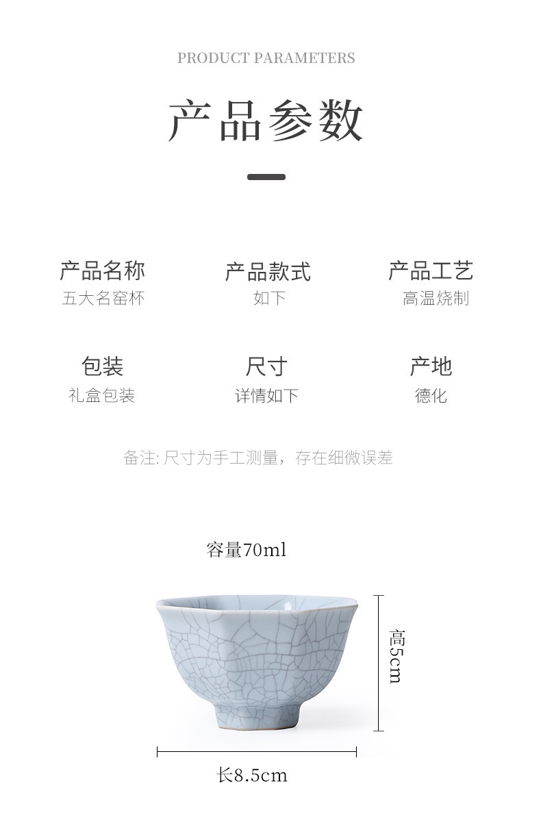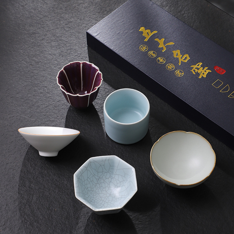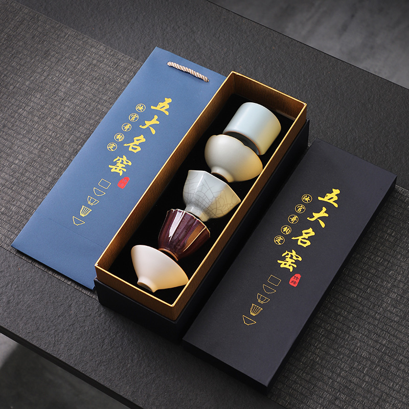 Five famous kiln tea sets, large tea cups, gift boxes, ceramic tea cups, tea bowls, Ru porcelain master cups, cultural and creative souvenirs