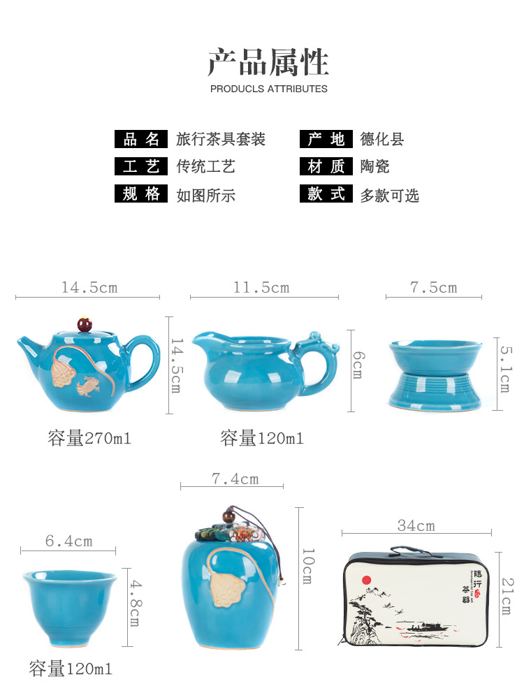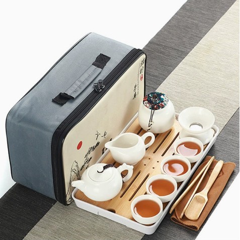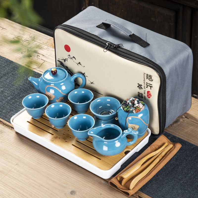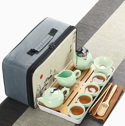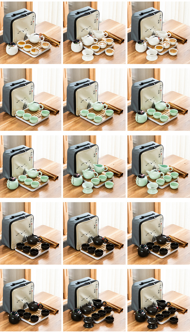 Ceramic Travel Kung Fu Tea Set Portable Outdoor Set Wholesale Complete Set Event Anniversary Celebration Gift for Customers