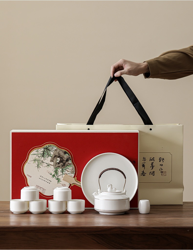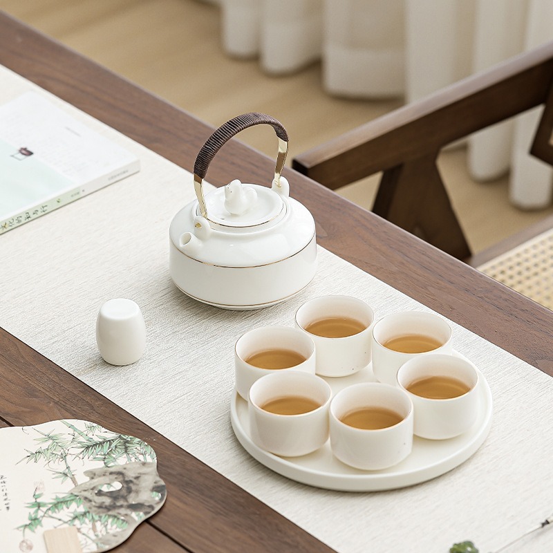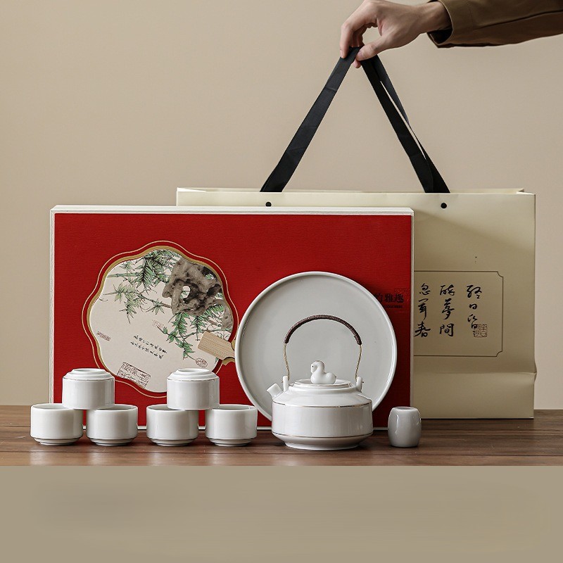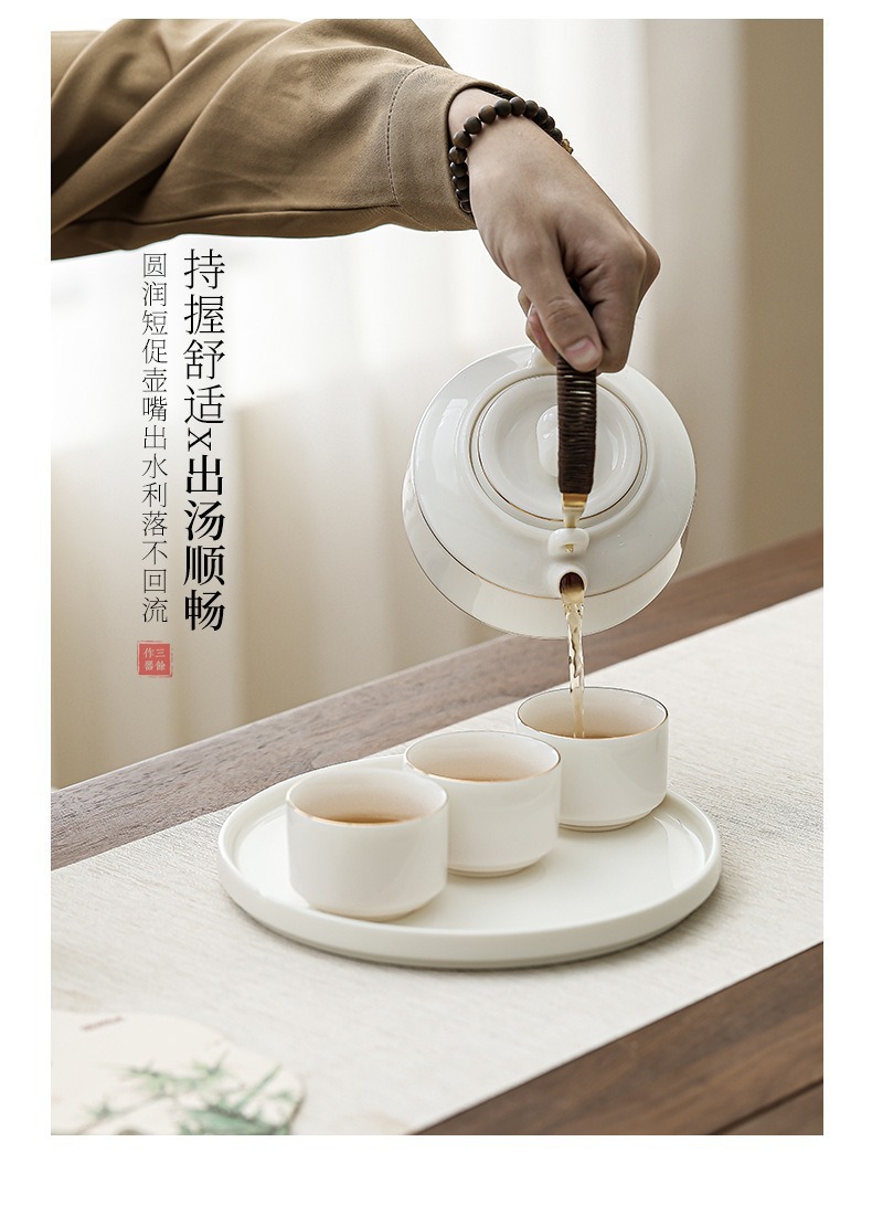 Immediate success China-Chic ceramic tea set with tray set, large handle pot with cup, the first choice for hotel office gifts