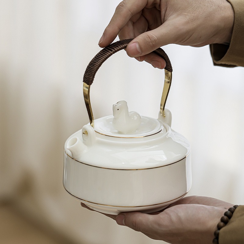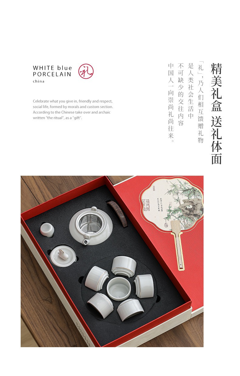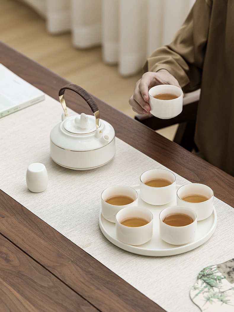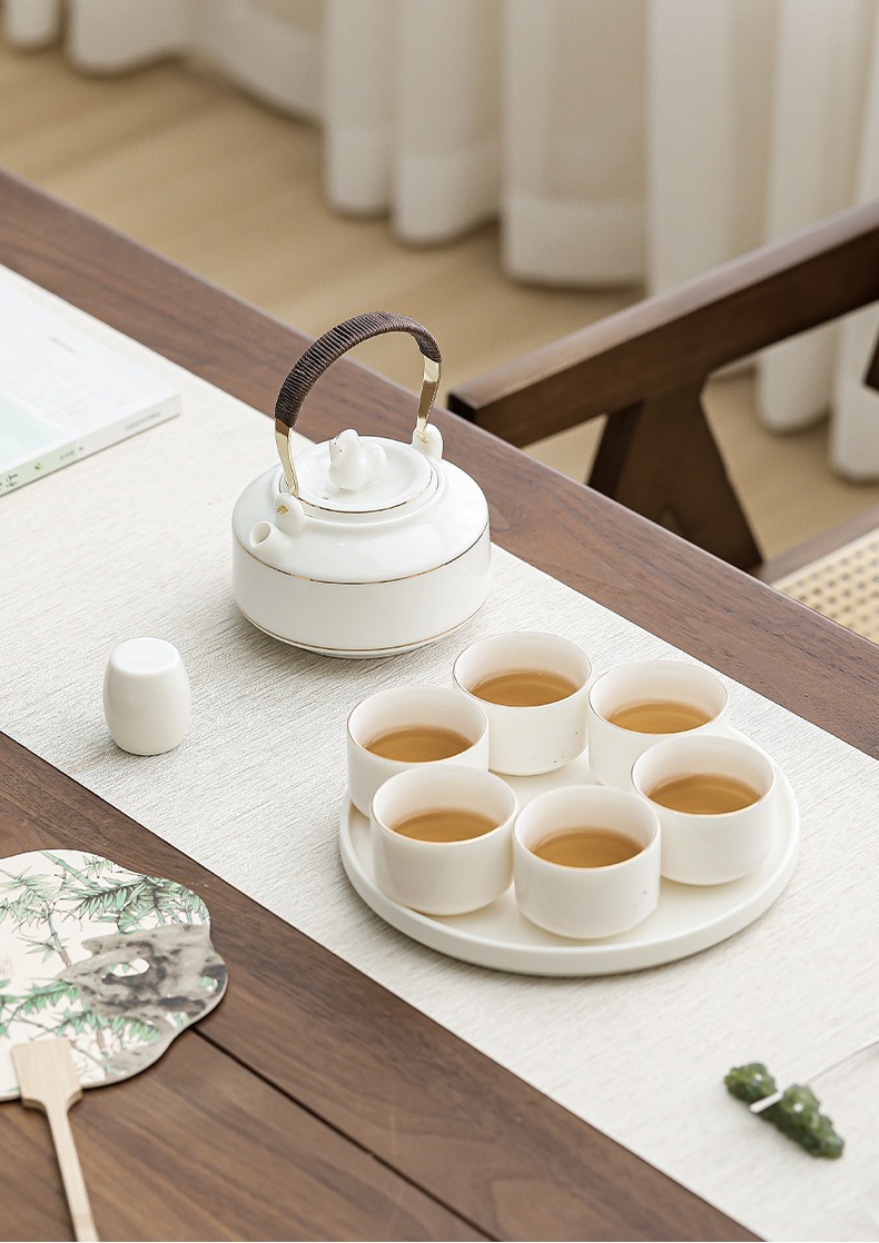 Immediate success China-Chic ceramic tea set with tray set, large handle pot with cup, the first choice for hotel office gifts