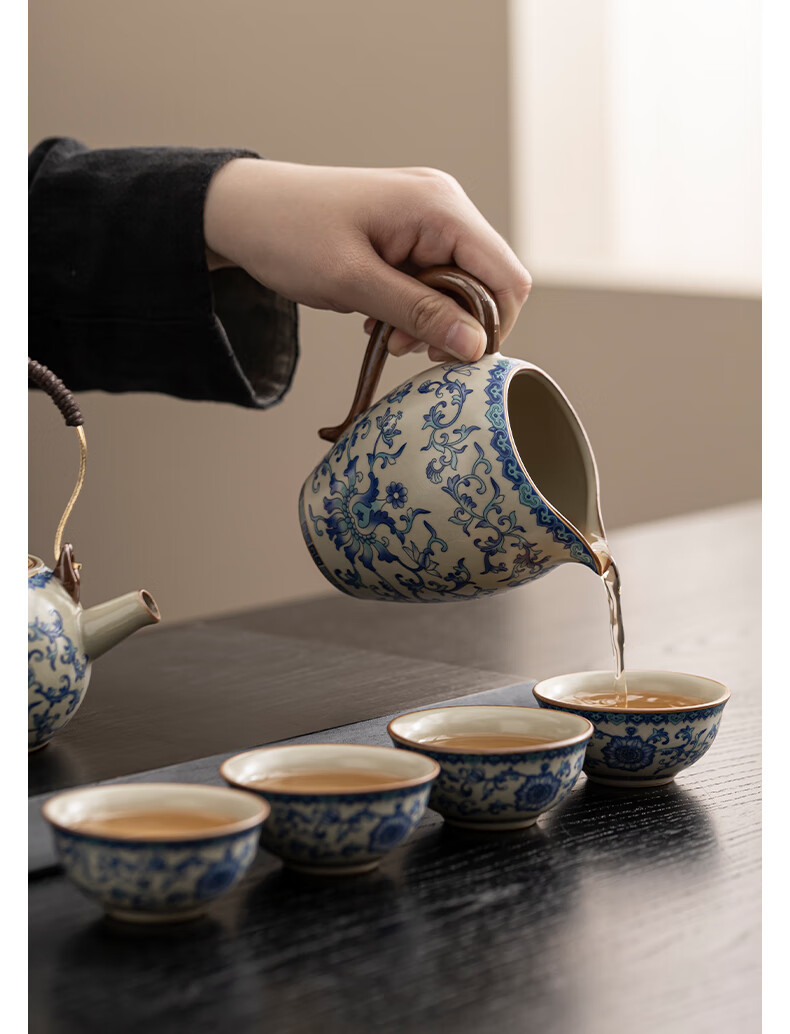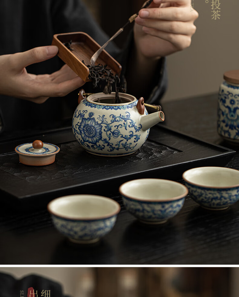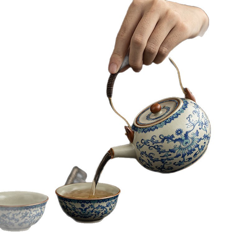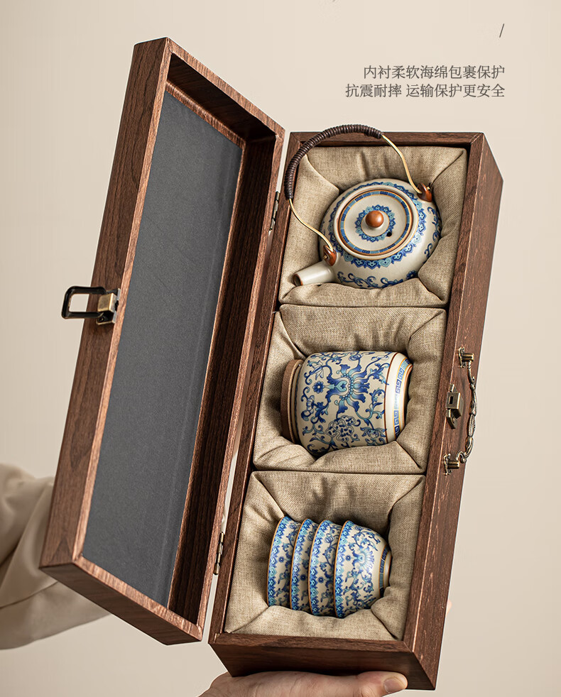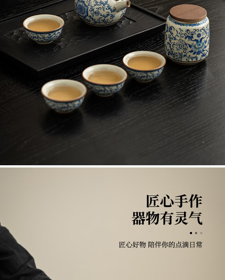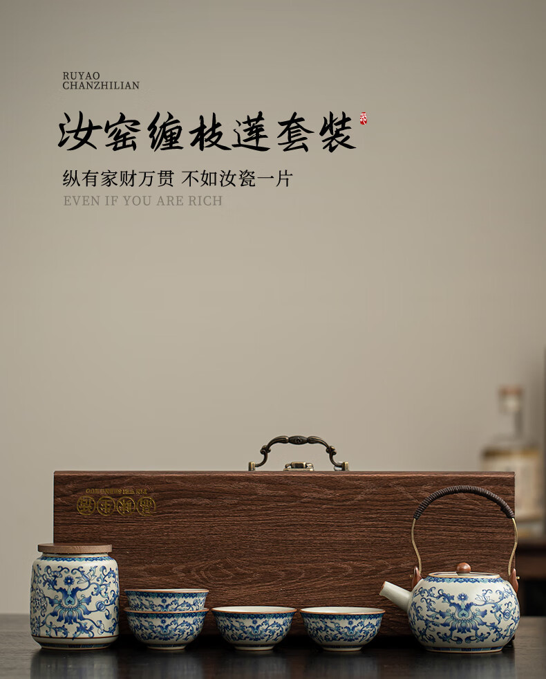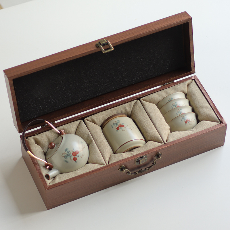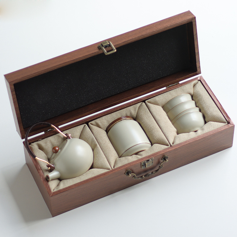Ru Kiln Travel Tea Set, One Pot, Four Cups, Handheld Gift, Business Gift, Father's Birthday Gift, Men's Gift to Father