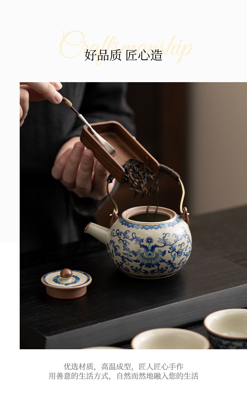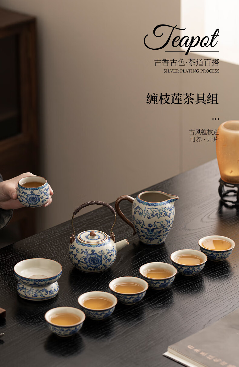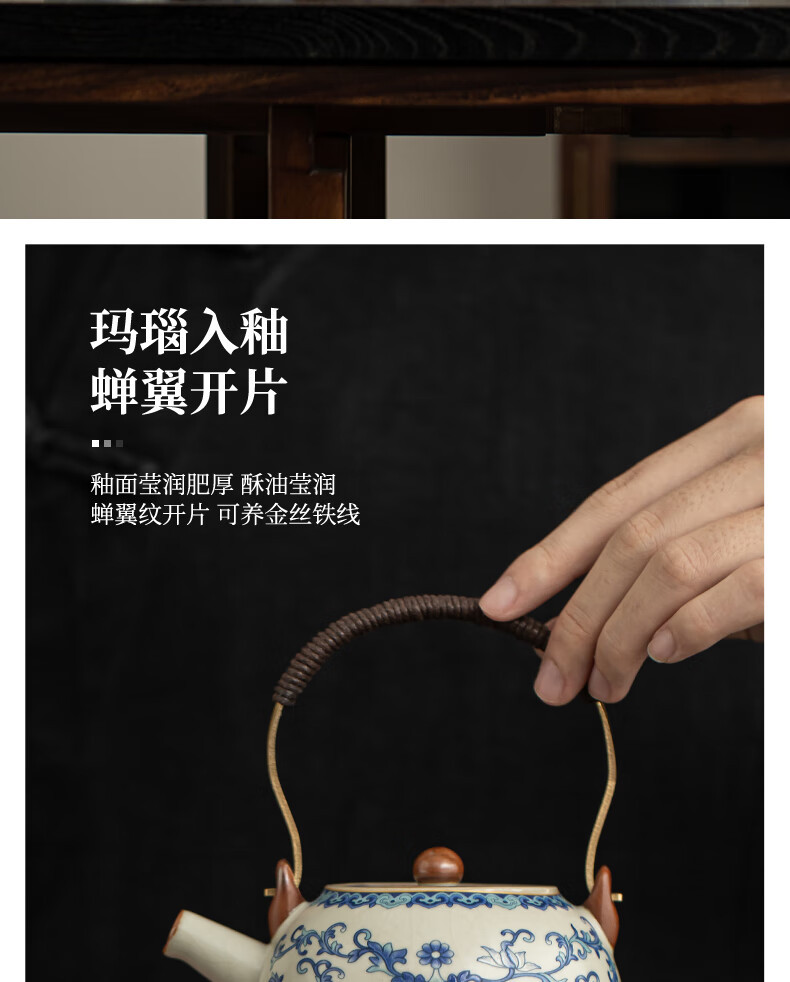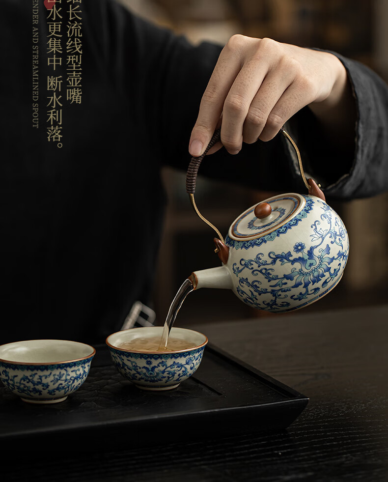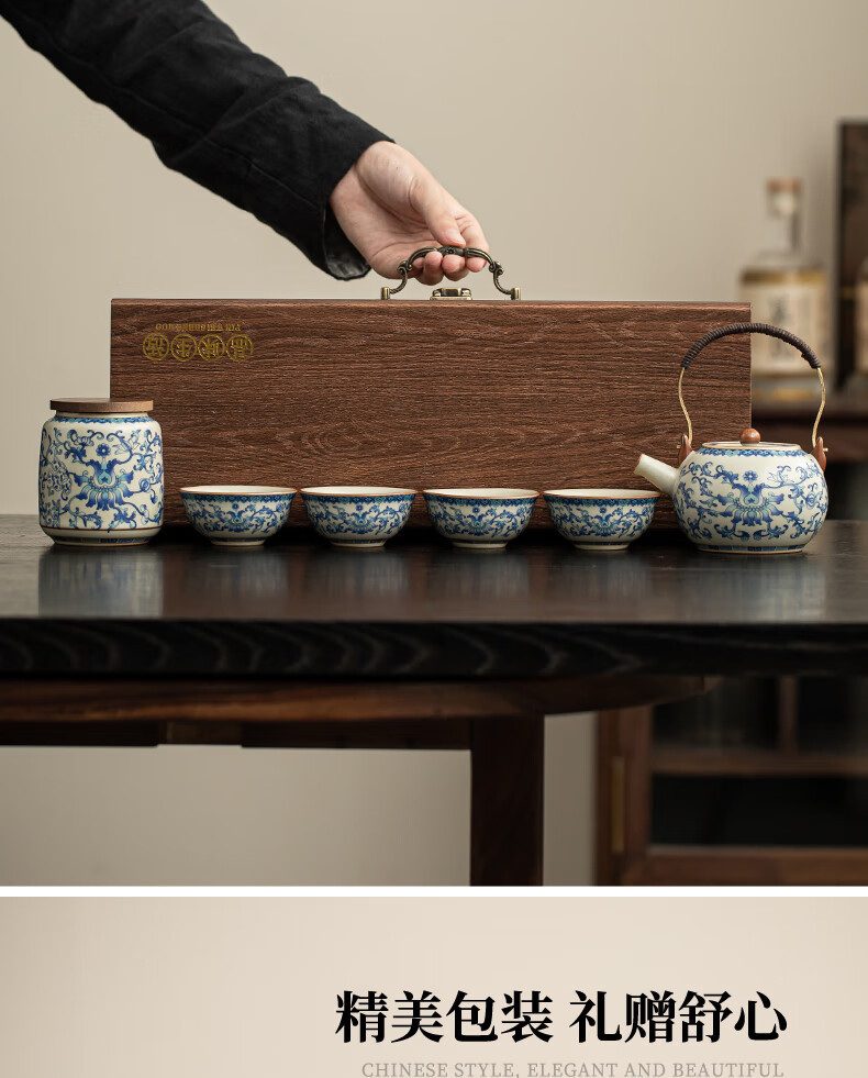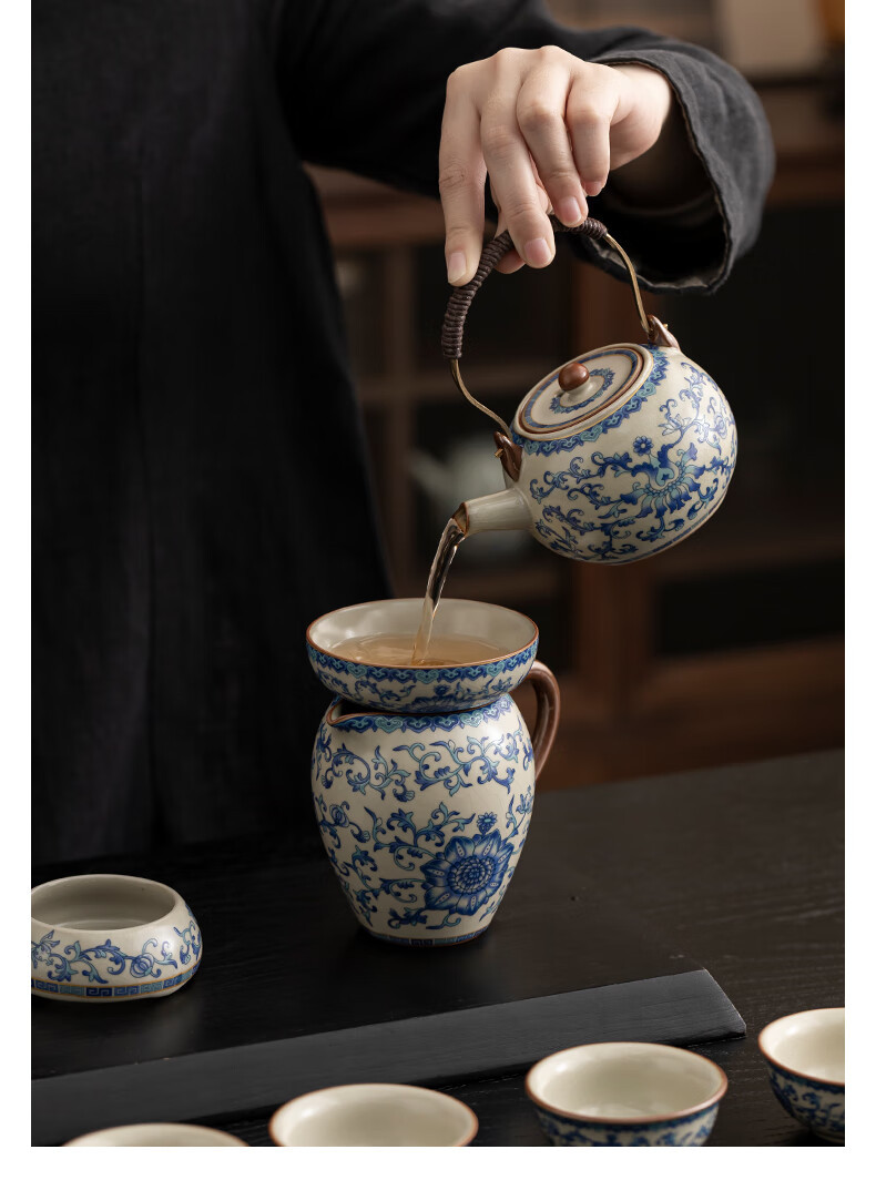 Ru Kiln Travel Tea Set, One Pot, Four Cups, Handheld Gift, Business Gift, Father's Birthday Gift, Men's Gift to Father