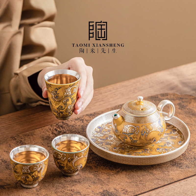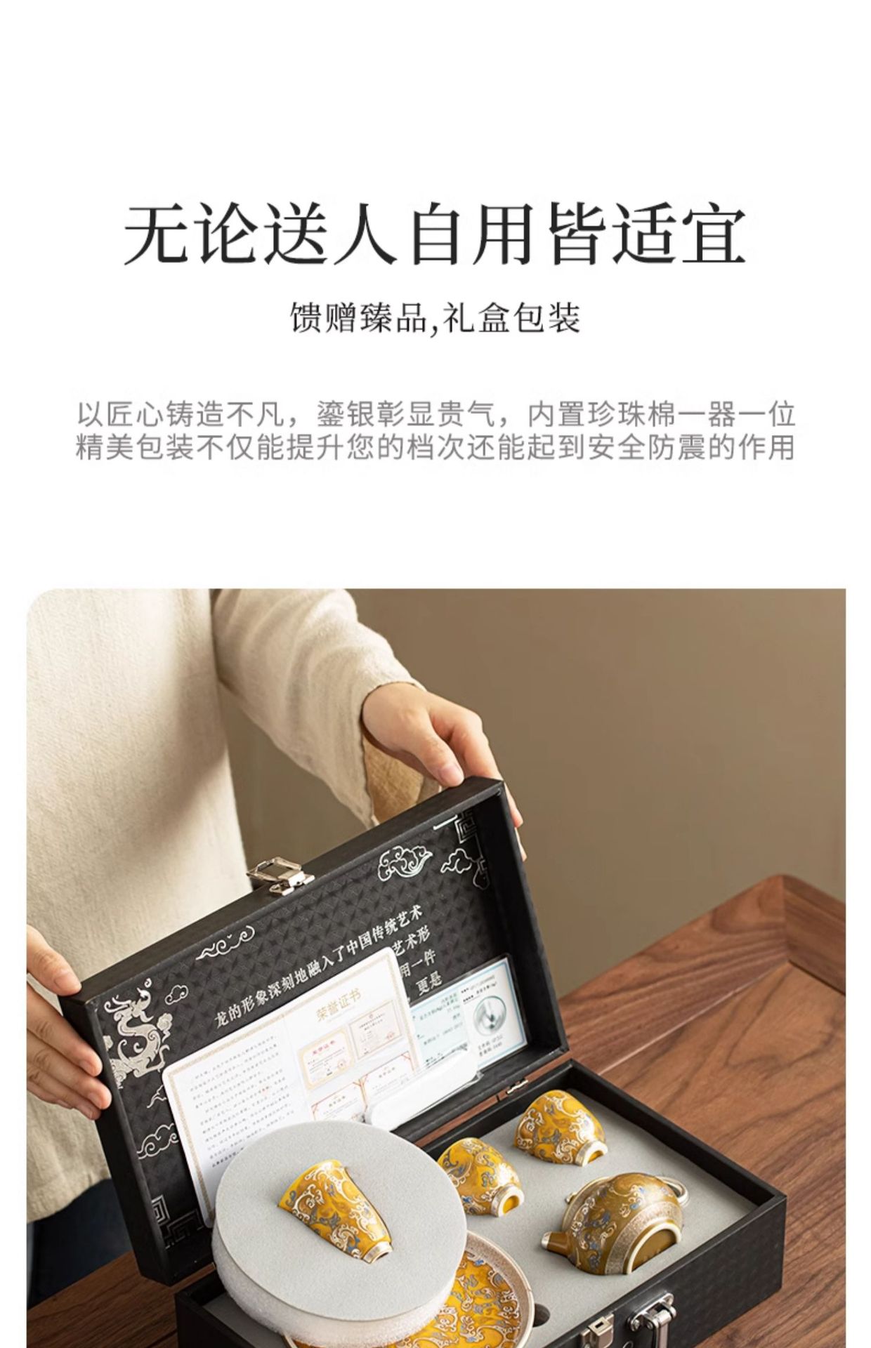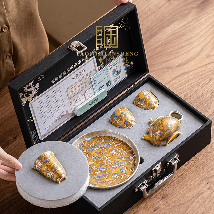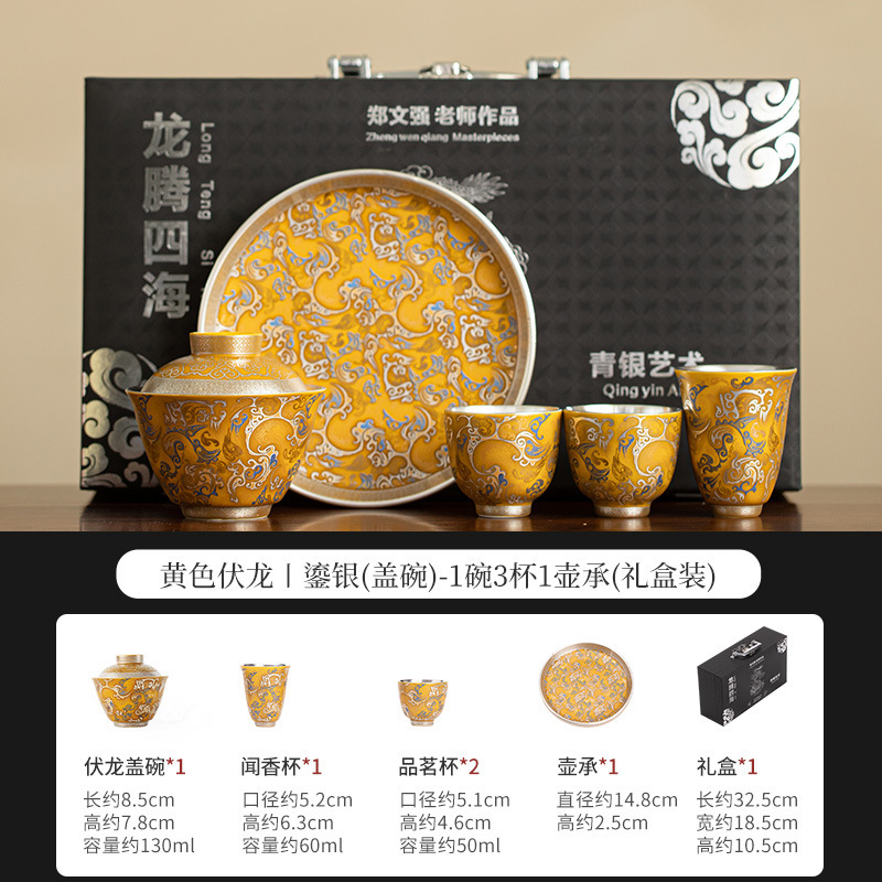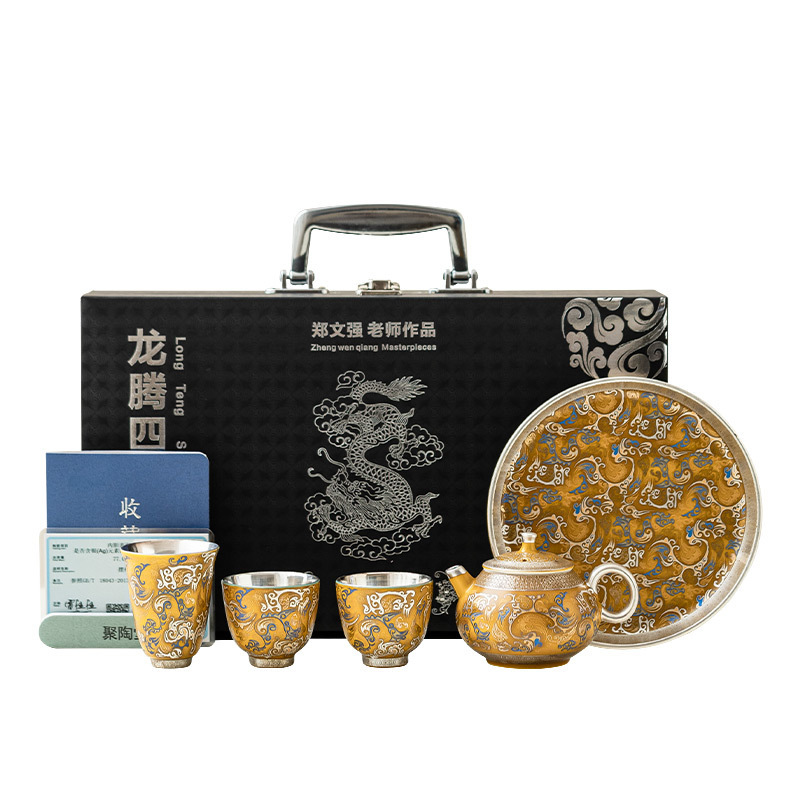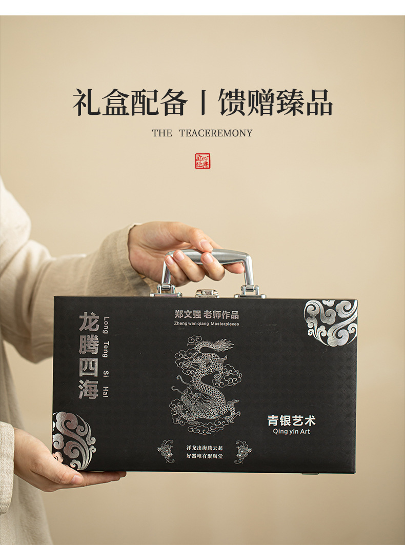 Дракон Тен четыре моря керамика серебряный кунг - фу чайный набор один чайник три чашки для старшего отца руководство учителя