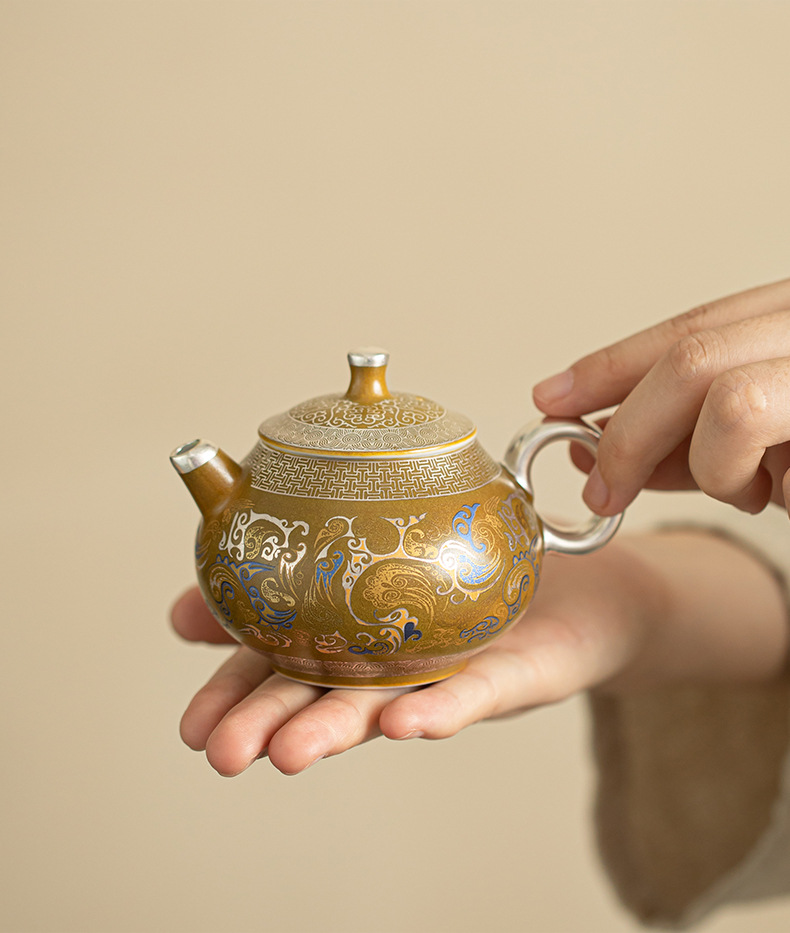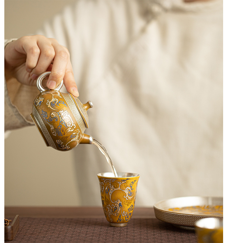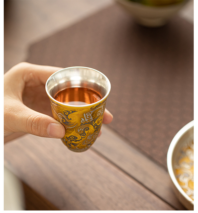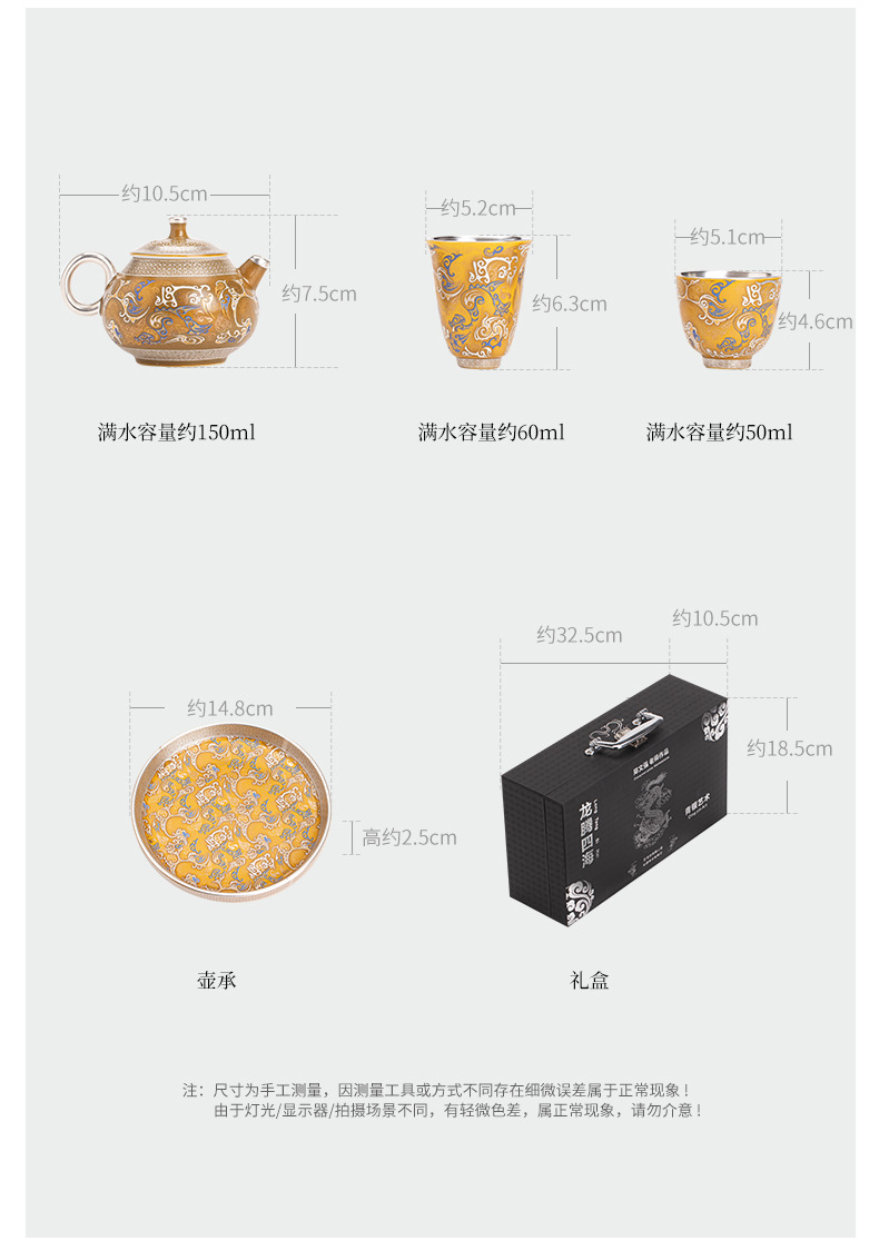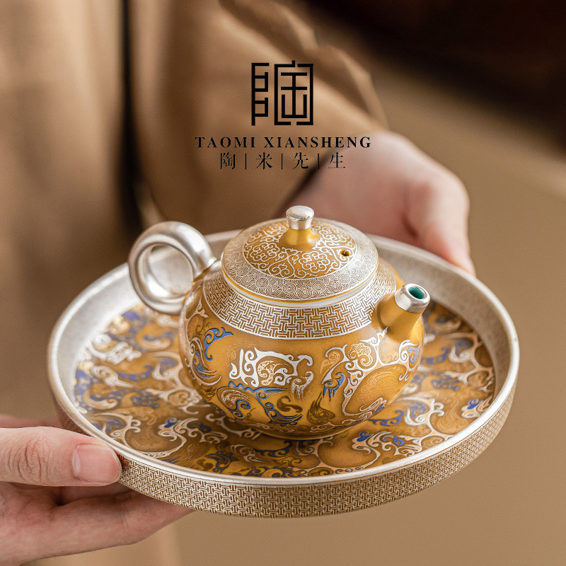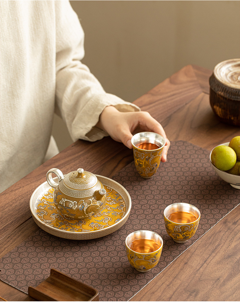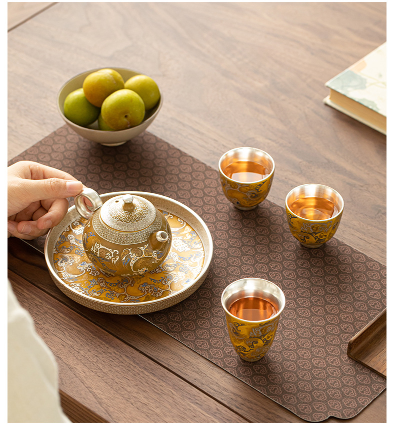 Дракон Тен четыре моря керамика серебряный кунг - фу чайный набор один чайник три чашки для старшего отца руководство учителя