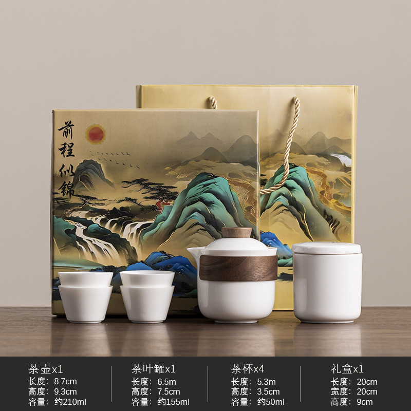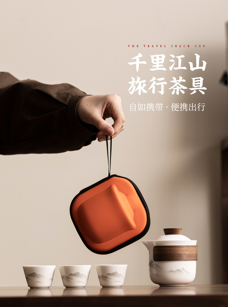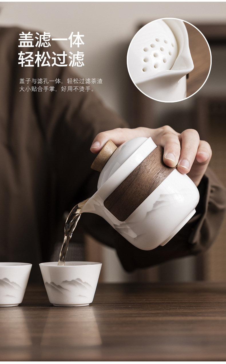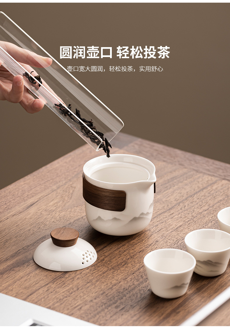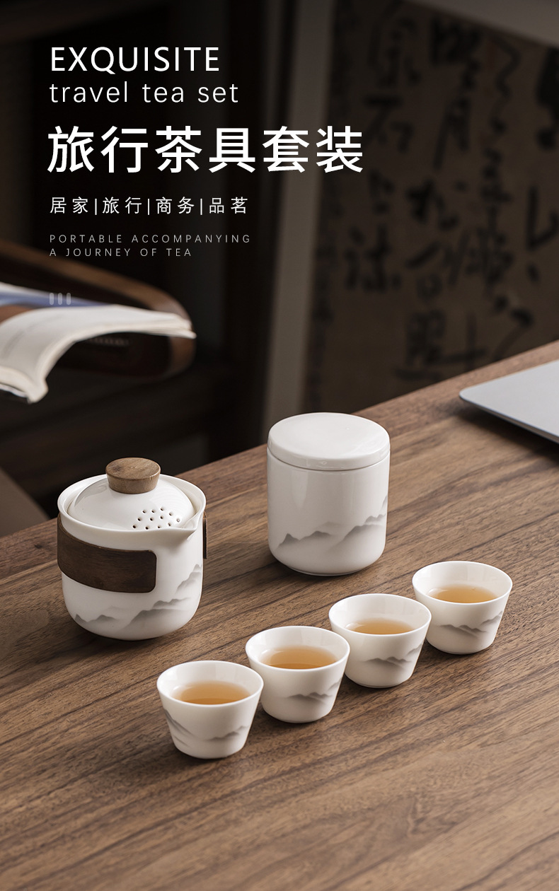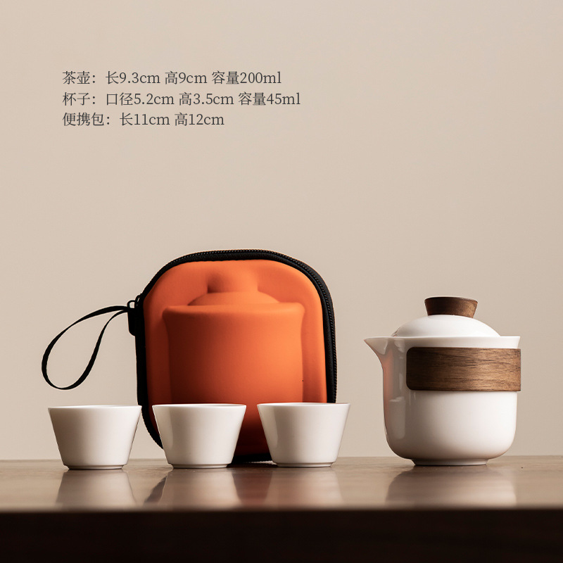 Dehua Yangzhi Jade White Porcelain Travel Tea Set One Pot Three Cups Outdoor Portable Quick Customer Cup Company Event Gift