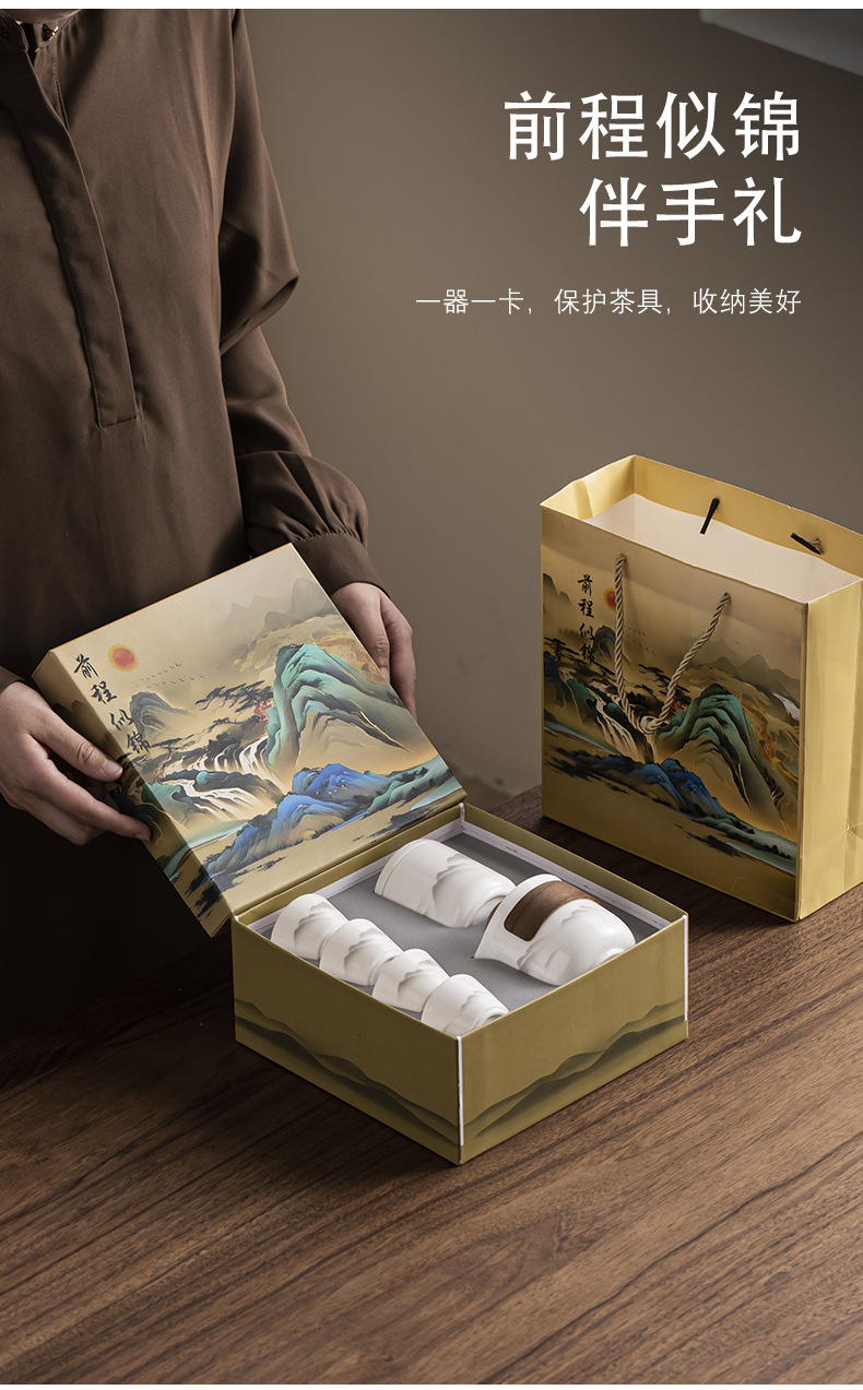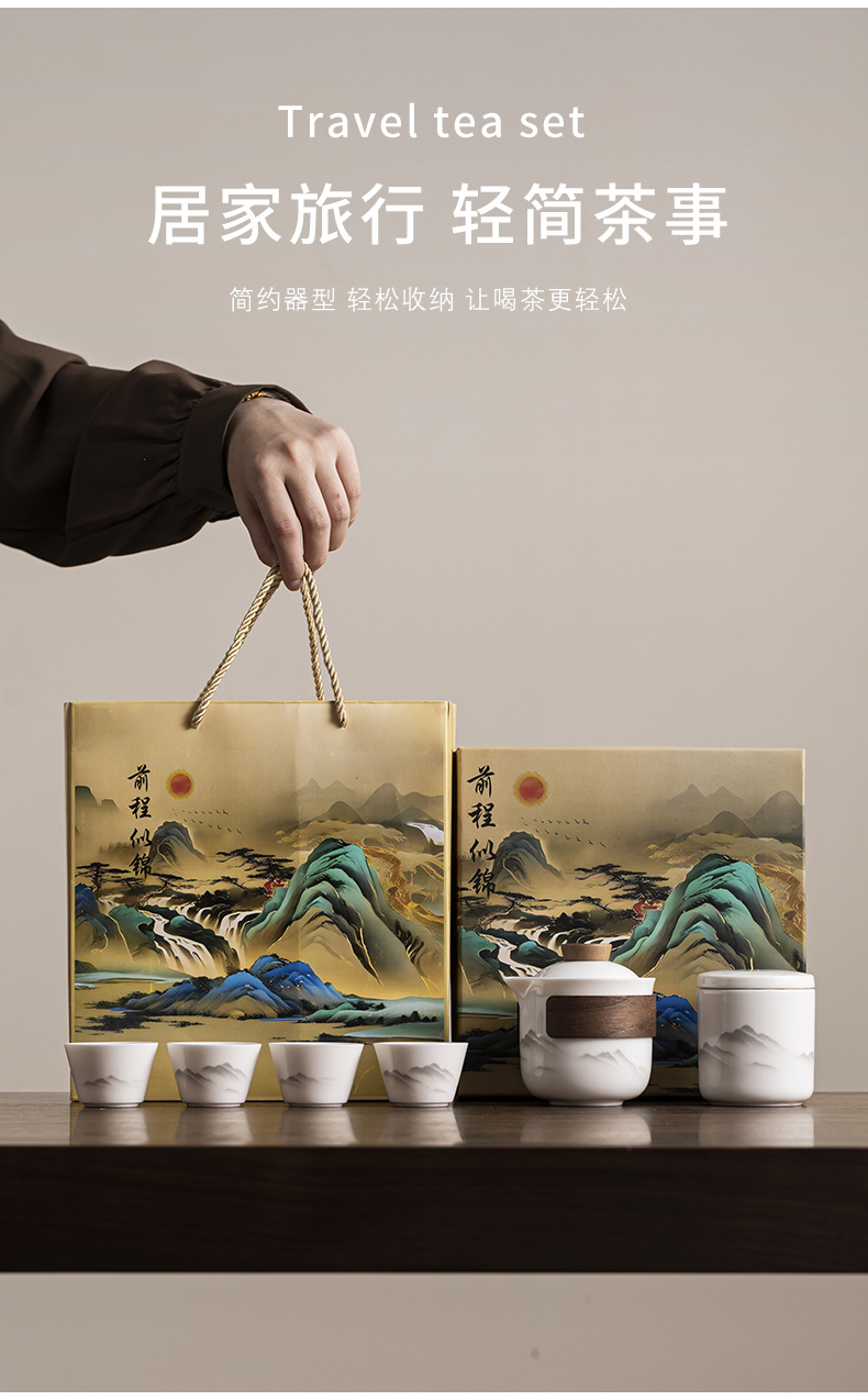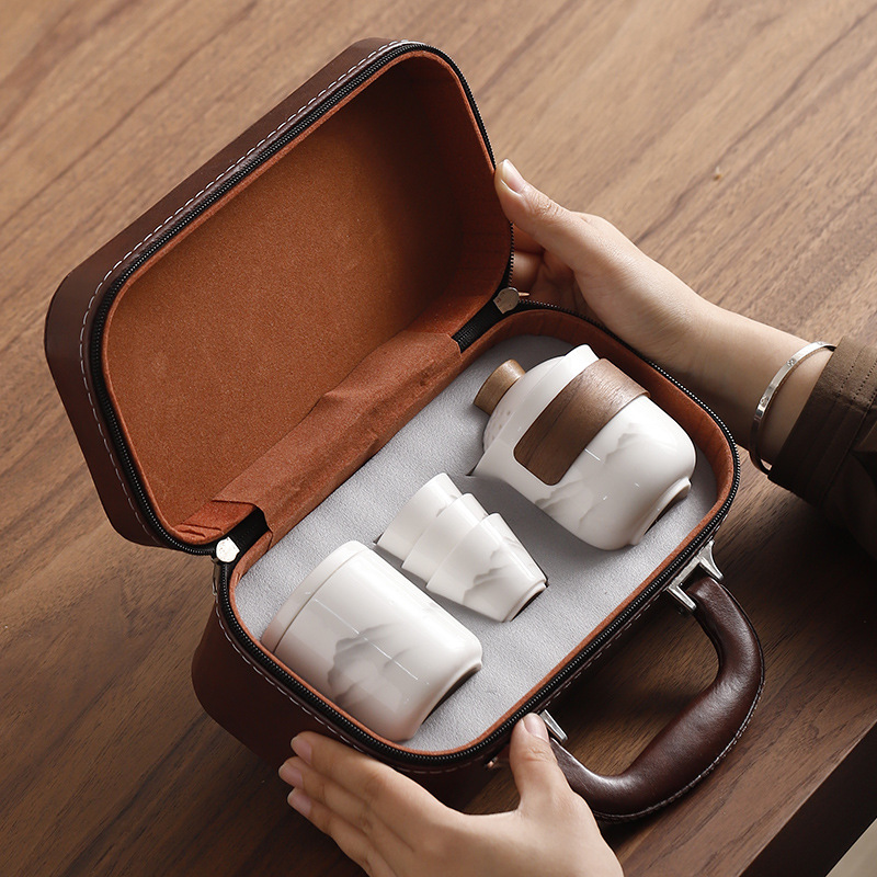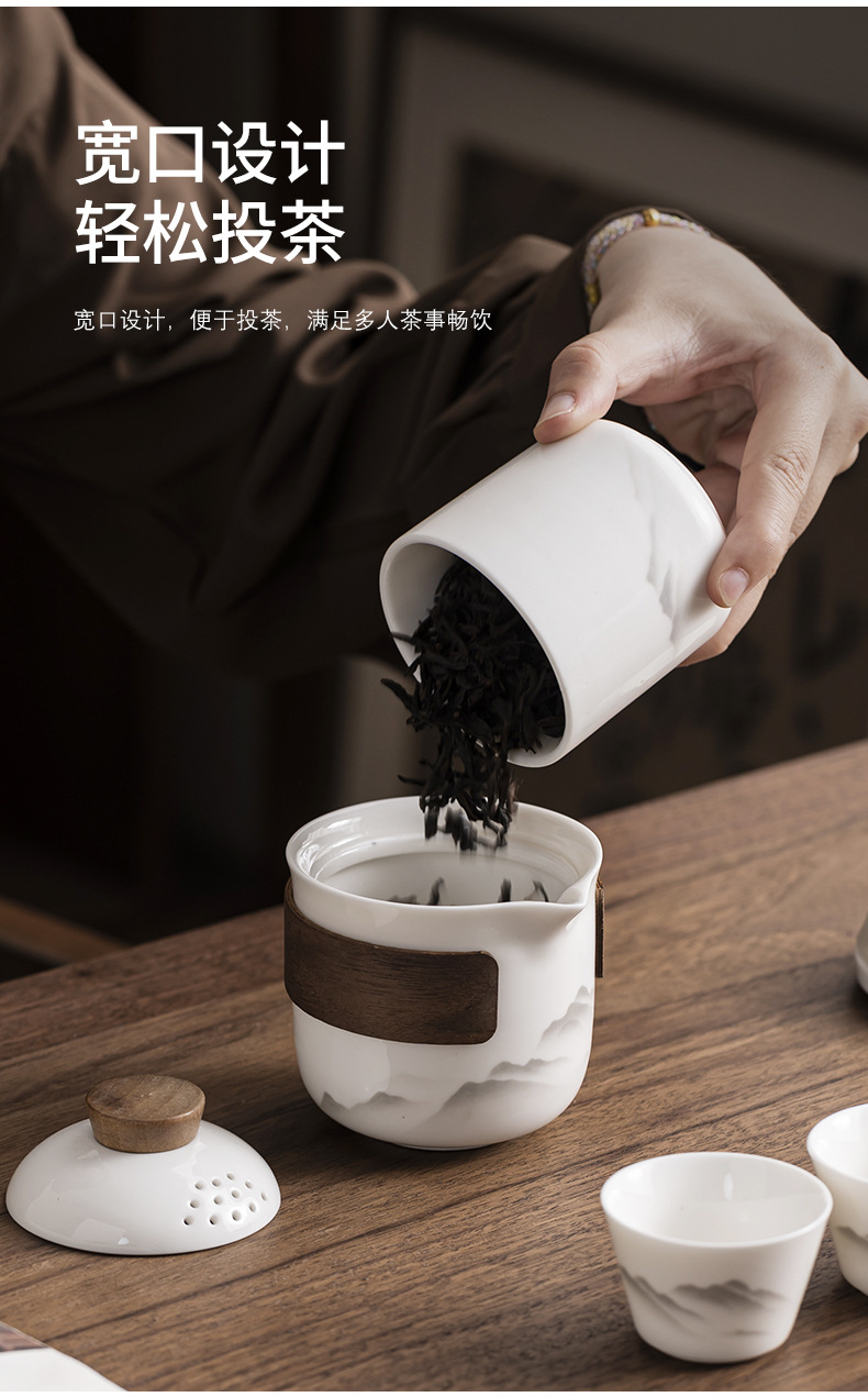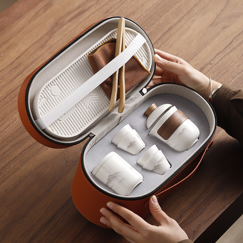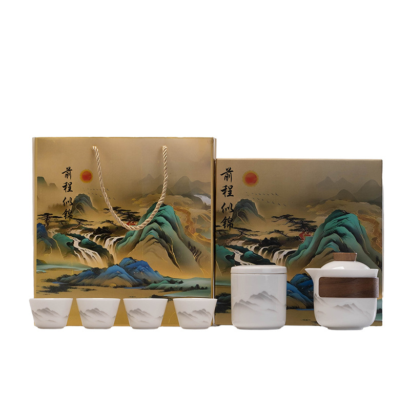 Dehua Yangzhi Jade White Porcelain Travel Tea Set One Pot Three Cups Outdoor Portable Quick Customer Cup Company Event Gift