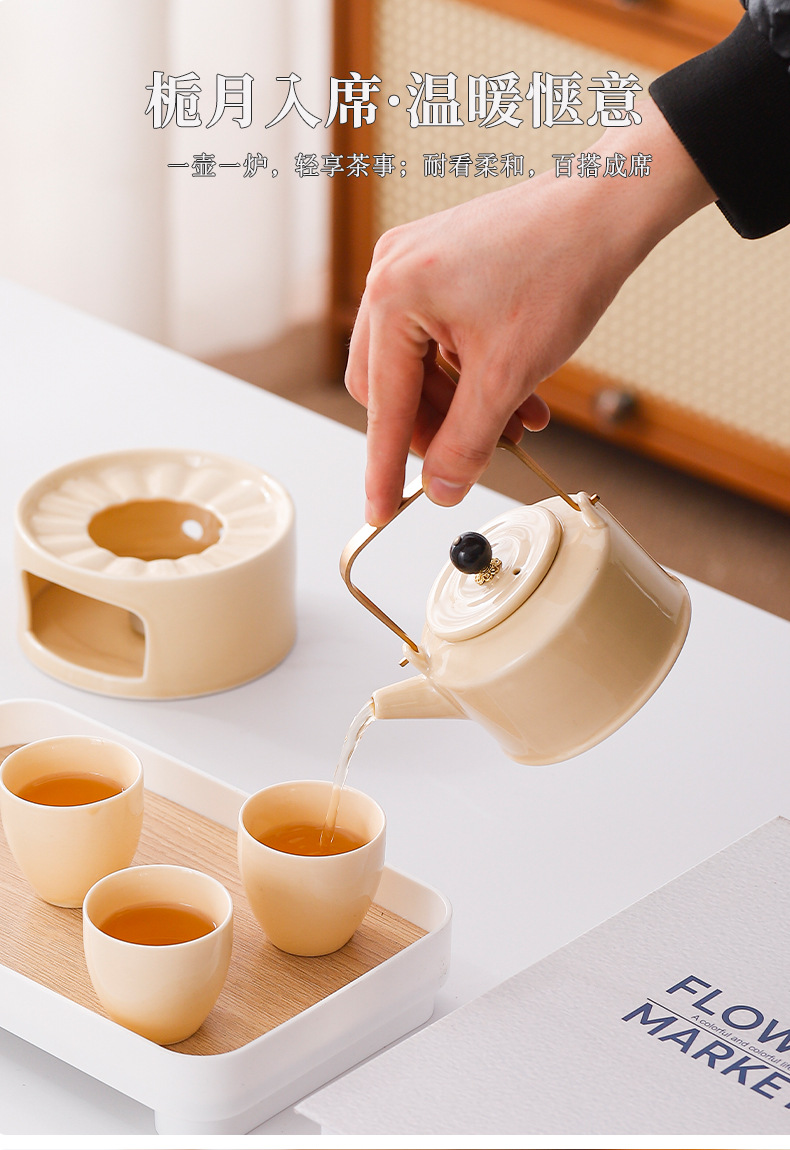 Чайный набор керамический чайник горячий чай печь свечи нагревать домашний теплый чайник чайный сервиз полный комплект