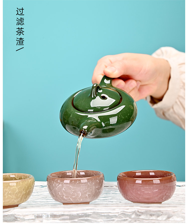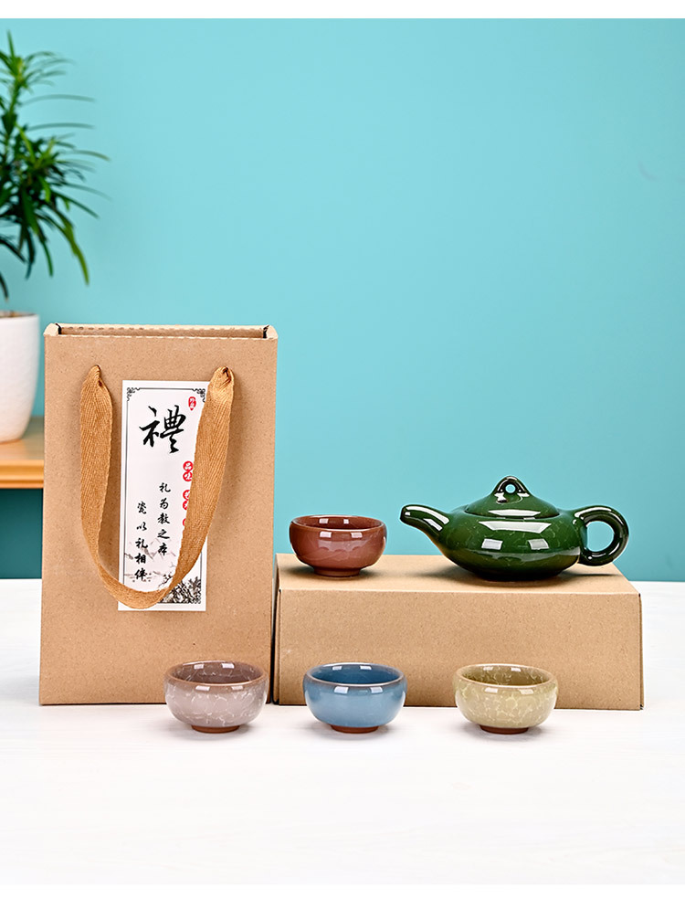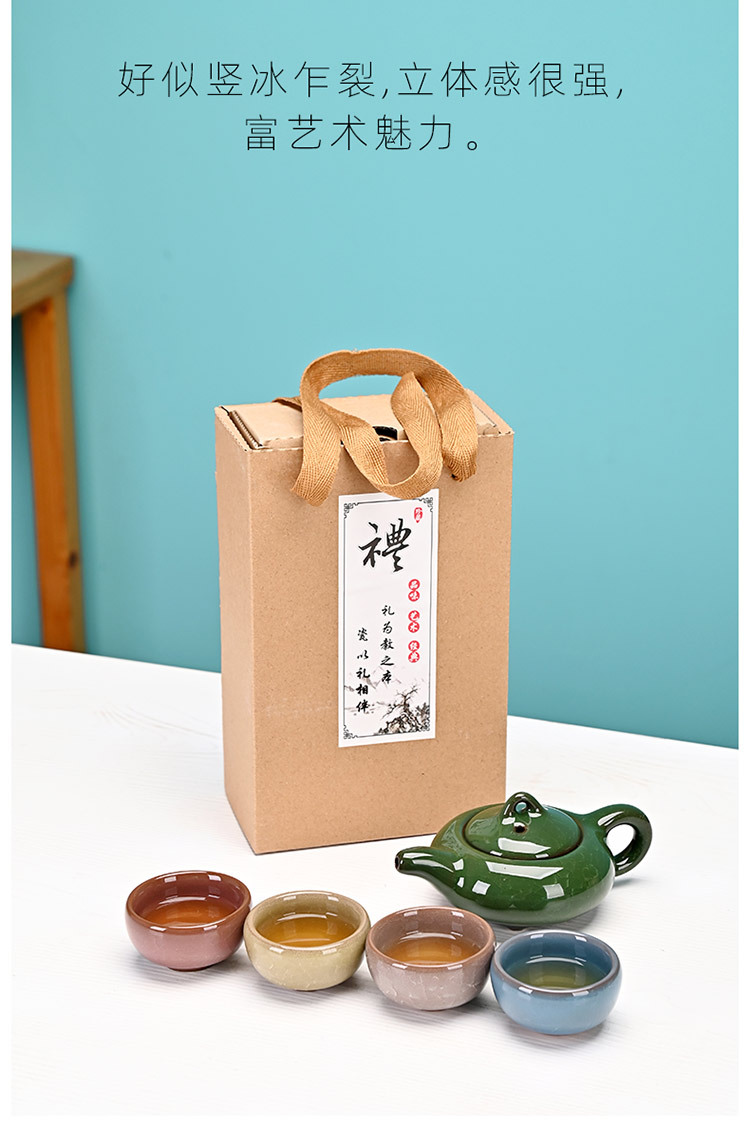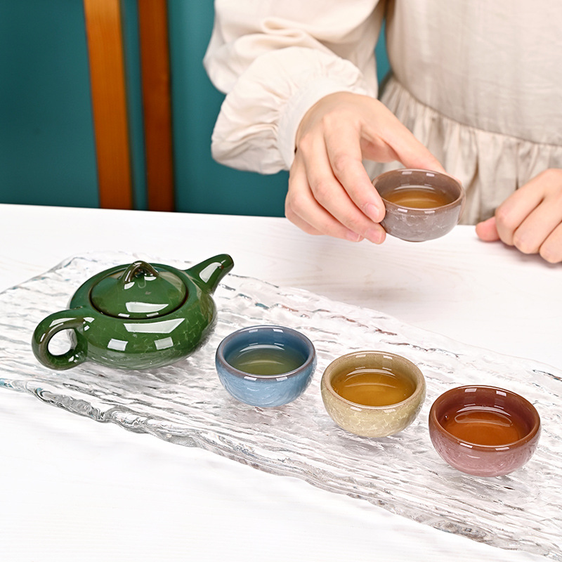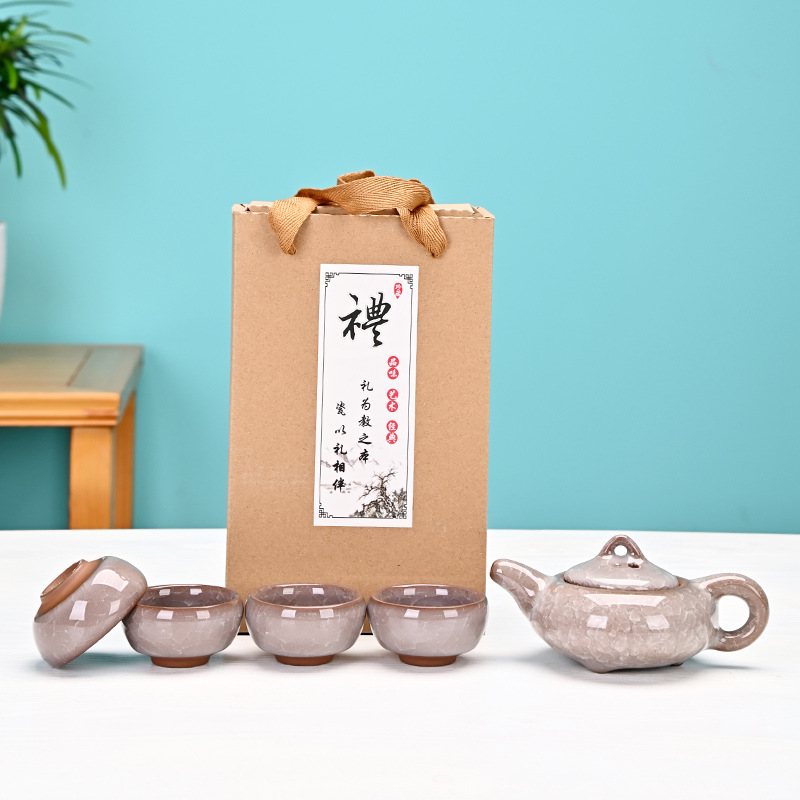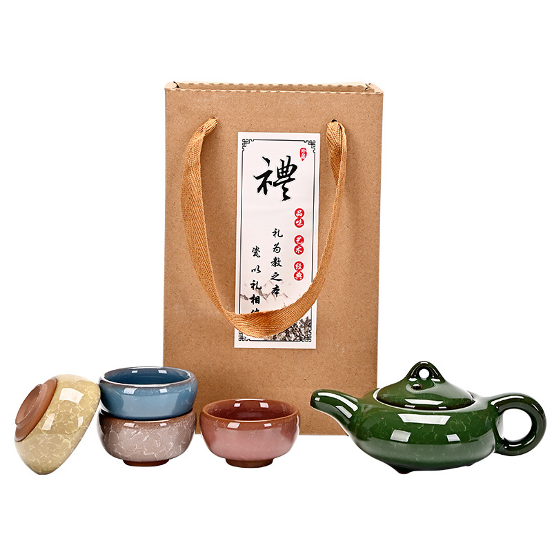 Kung Fu Creative Gift Ice Crack Ceramic Teapot Tea Set Special Offer One Pot Four Cups Travel Set Manufacturer Color