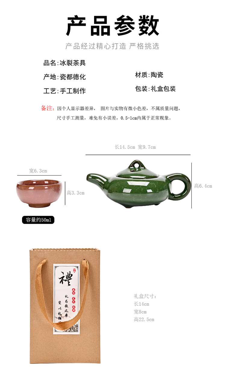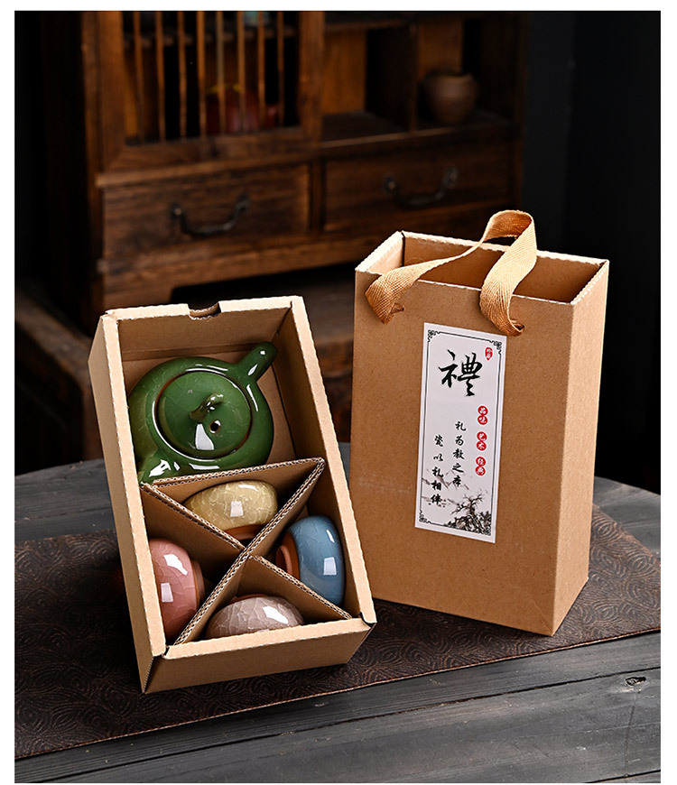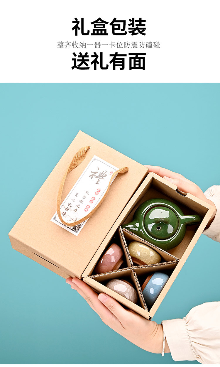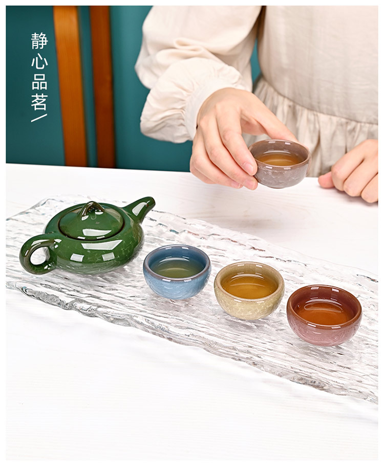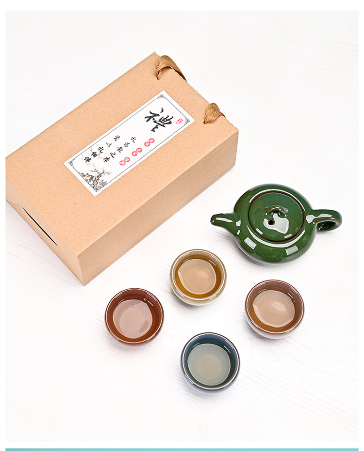 Kung Fu Creative Gift Ice Crack Ceramic Teapot Tea Set Special Offer One Pot Four Cups Travel Set Manufacturer Color