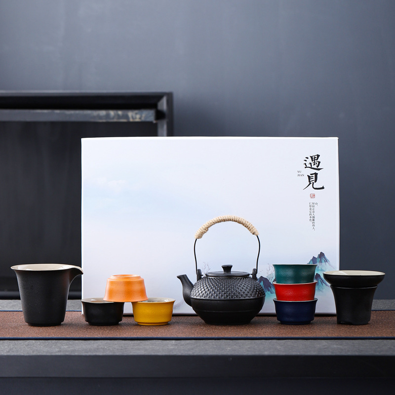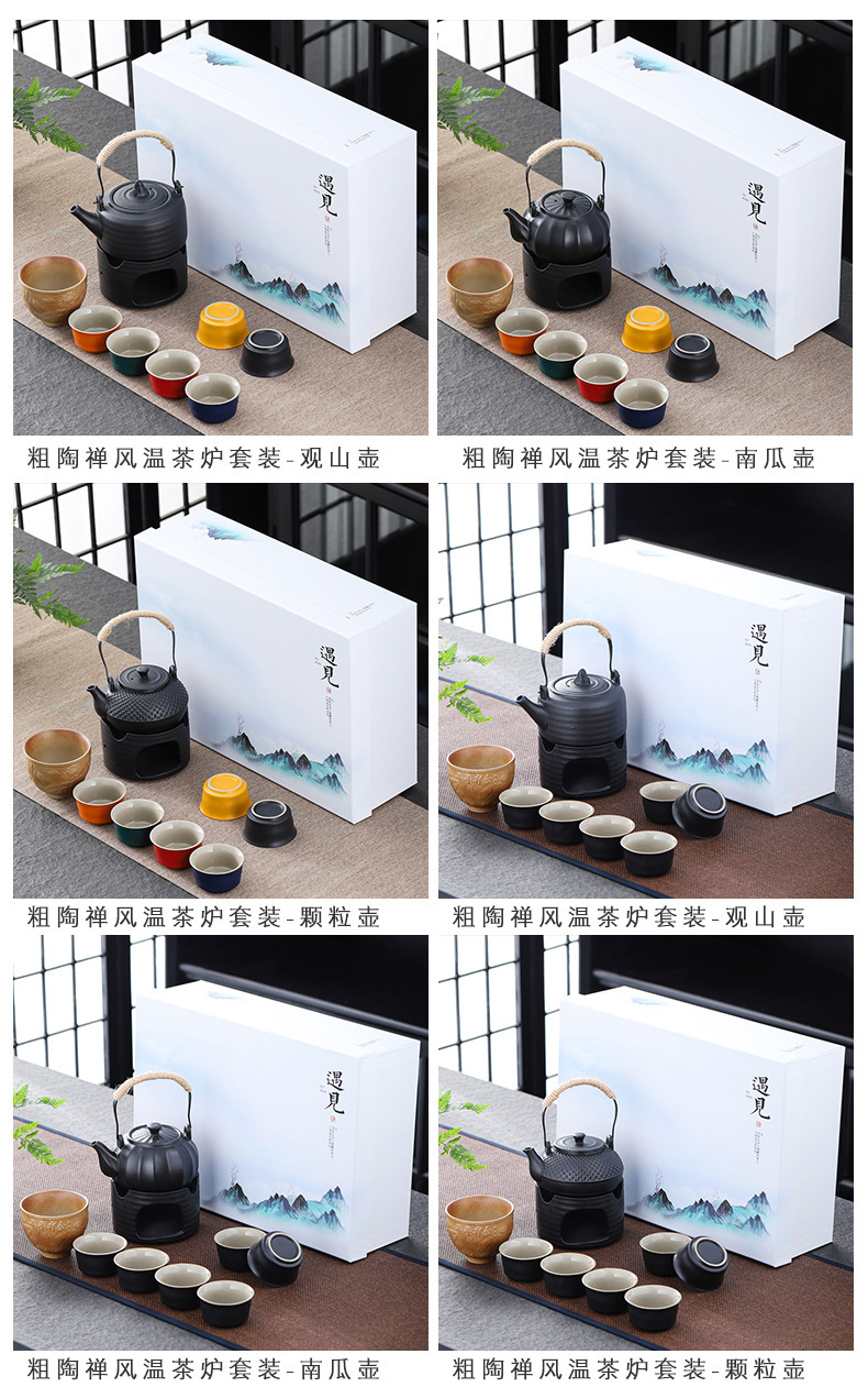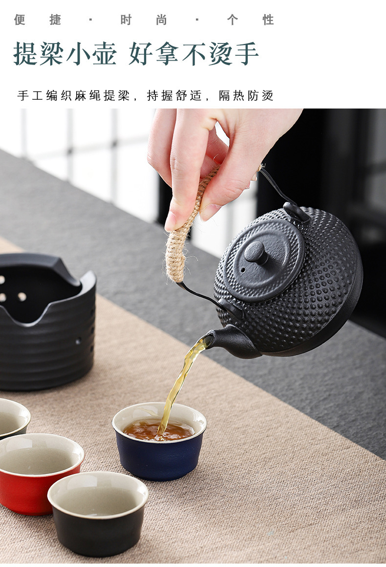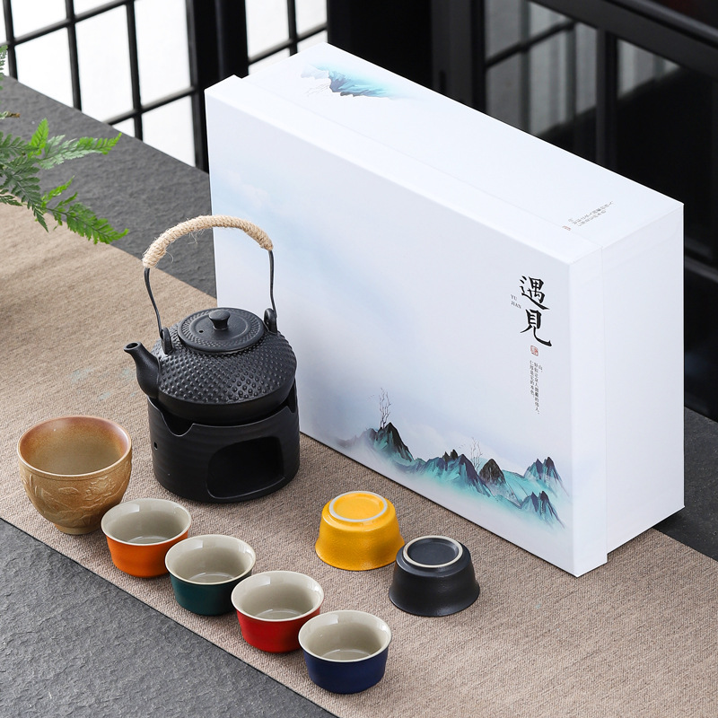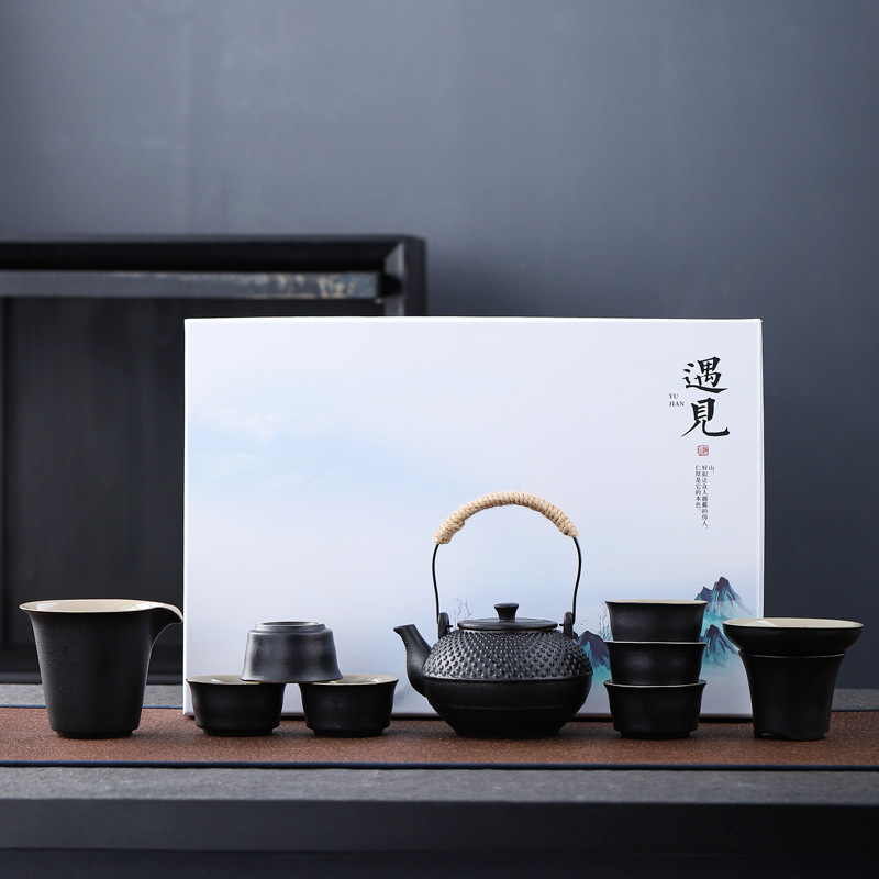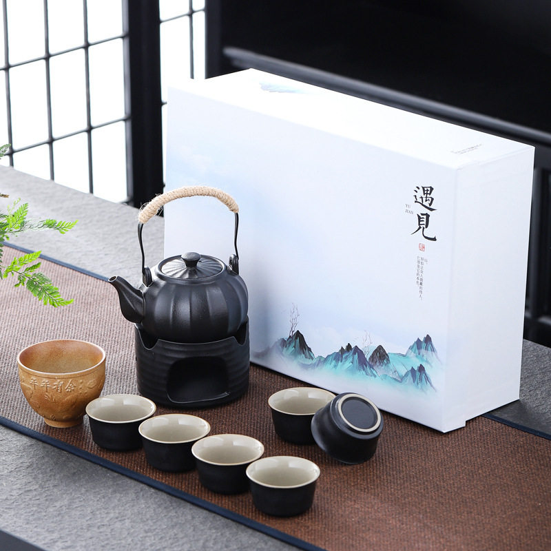 Black pottery handle pot Kung Fu tea set, enclosed stove, tea making gift box, ceramic warm tea pot, tea cup, business companion gift