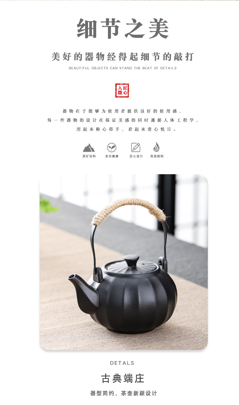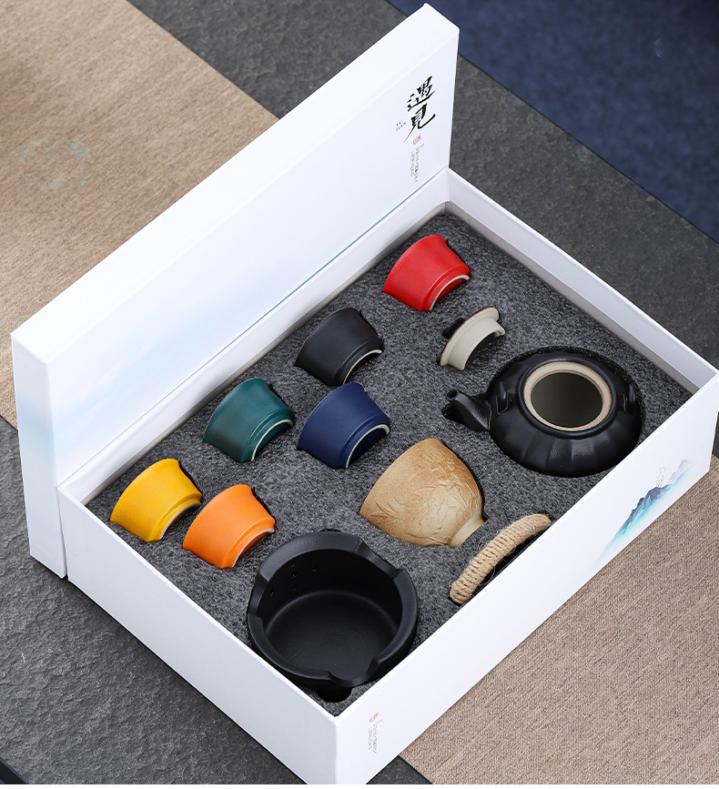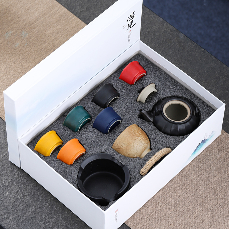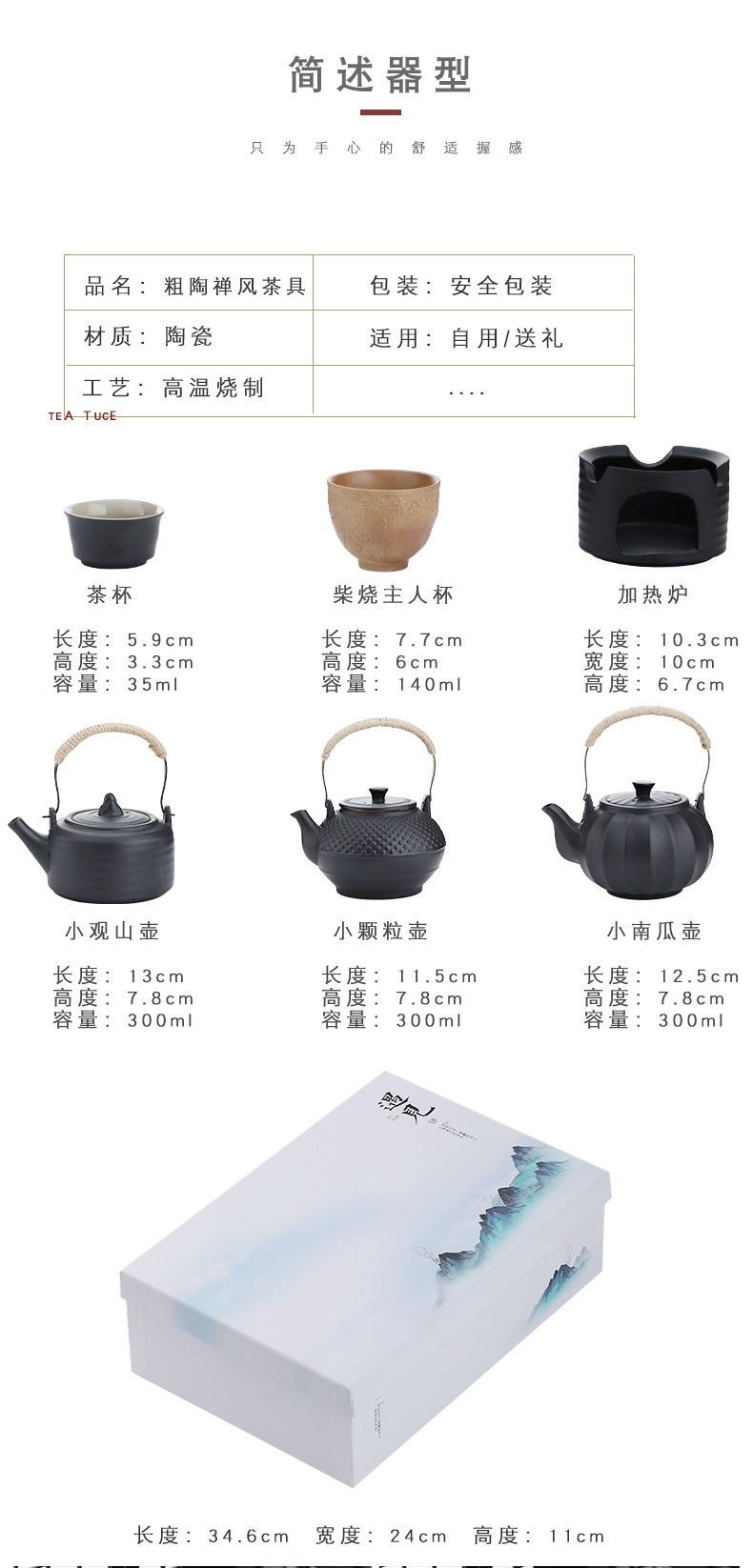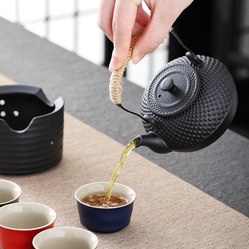 Black pottery handle pot Kung Fu tea set, enclosed stove, tea making gift box, ceramic warm tea pot, tea cup, business companion gift