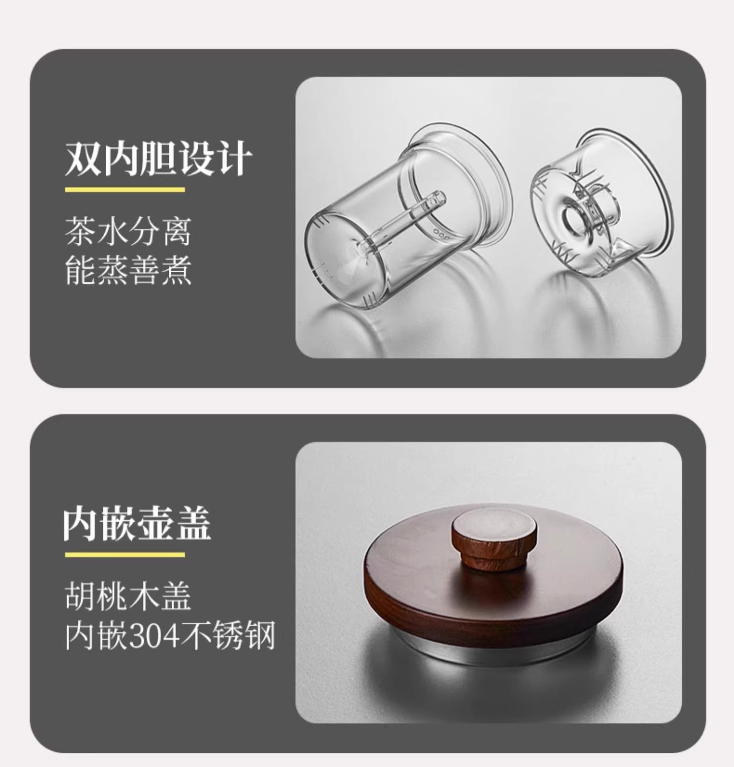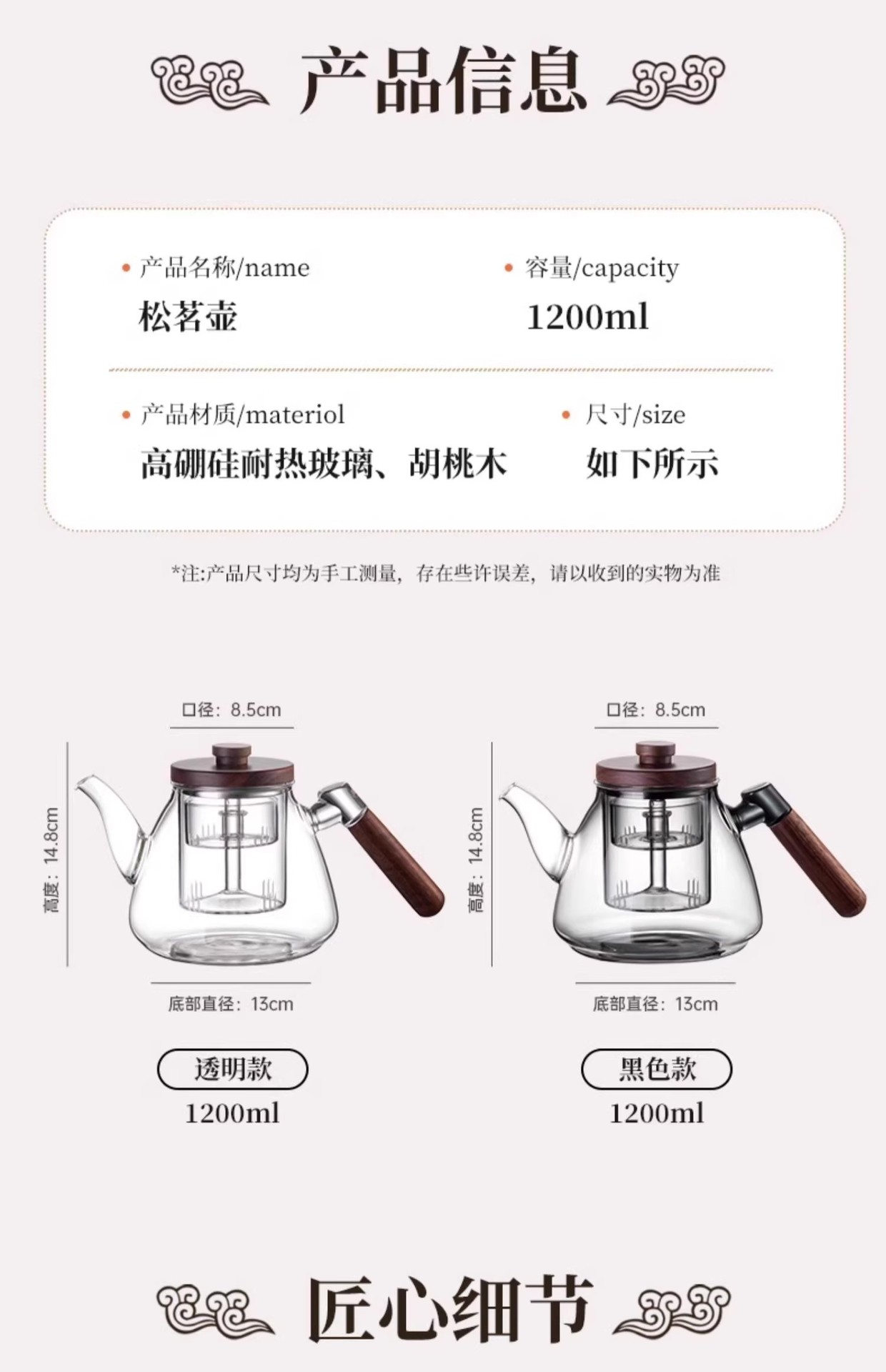 2025 Новое утолщенное высокотемпературное стекло чайник чайник разделение воды электрическая керамическая печь большой емкости чайный набор