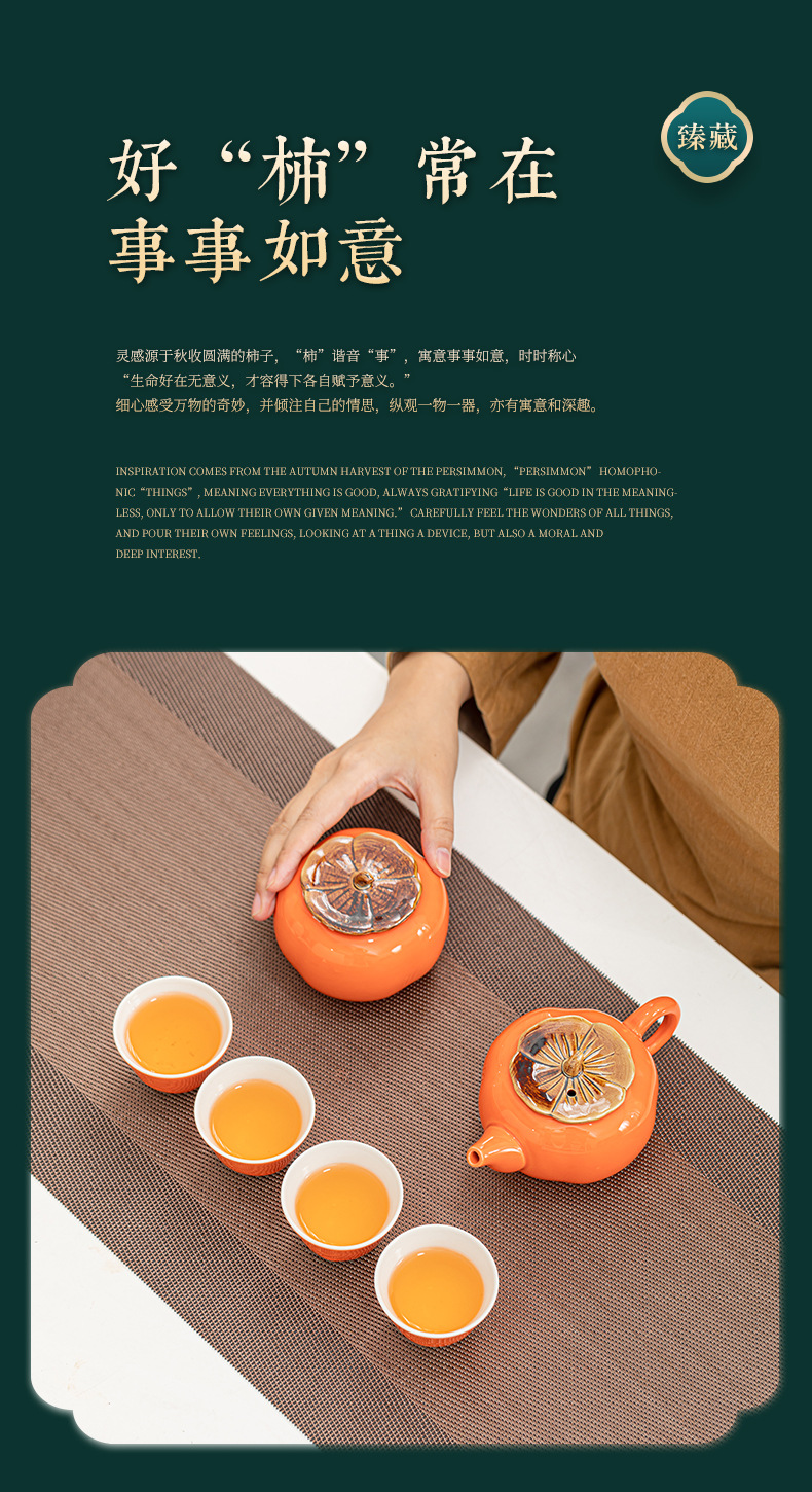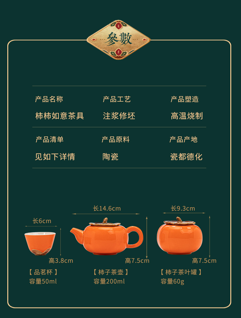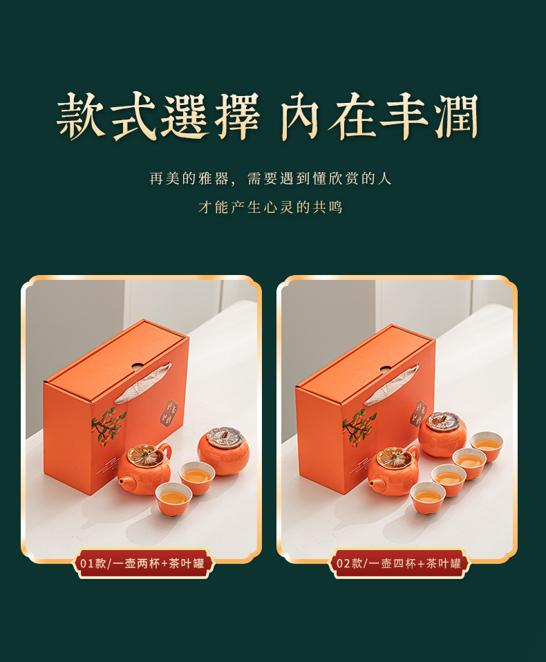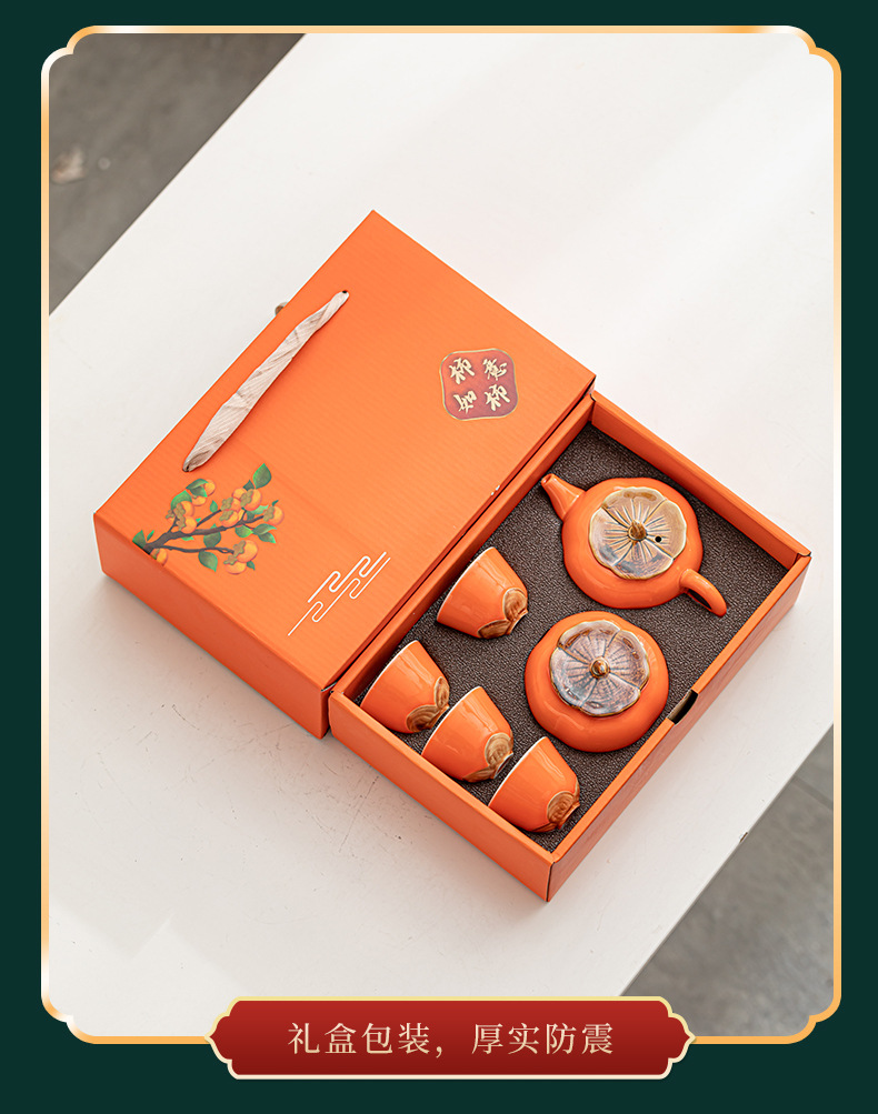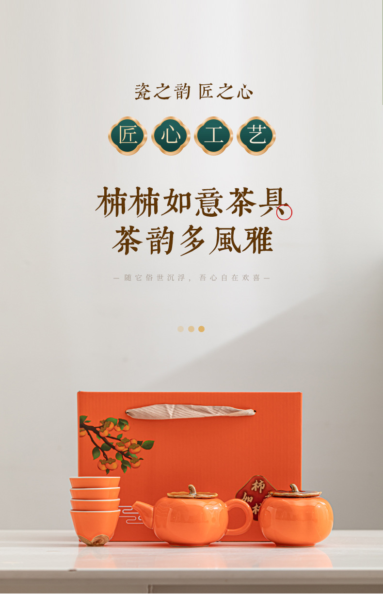 Persimmon and Persimmon Ruyi Tea Set, Persimmon Teapot, Tea Cup, Everything Gift Box, Handheld Gift Set, Customized Ceramic Gift Set, Small