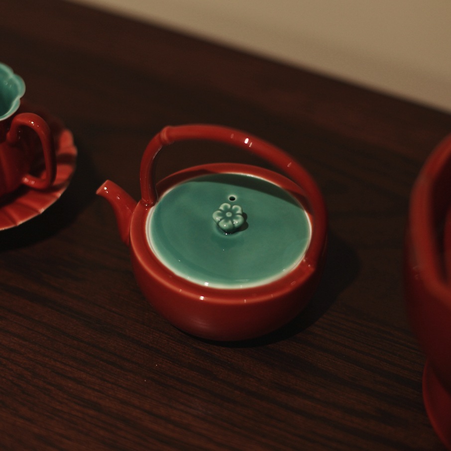 Palace Museum Red Tiled Teapot Red Glazed Teapot Set Warm Tea Teacup Teapot Chinese Jingdezhen Ceramic Tea