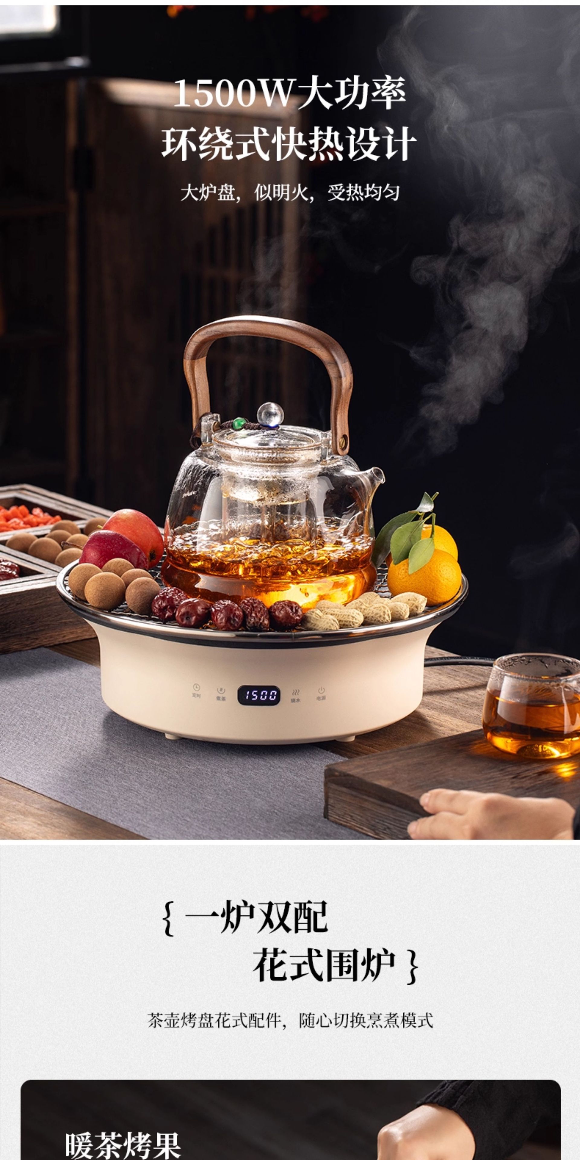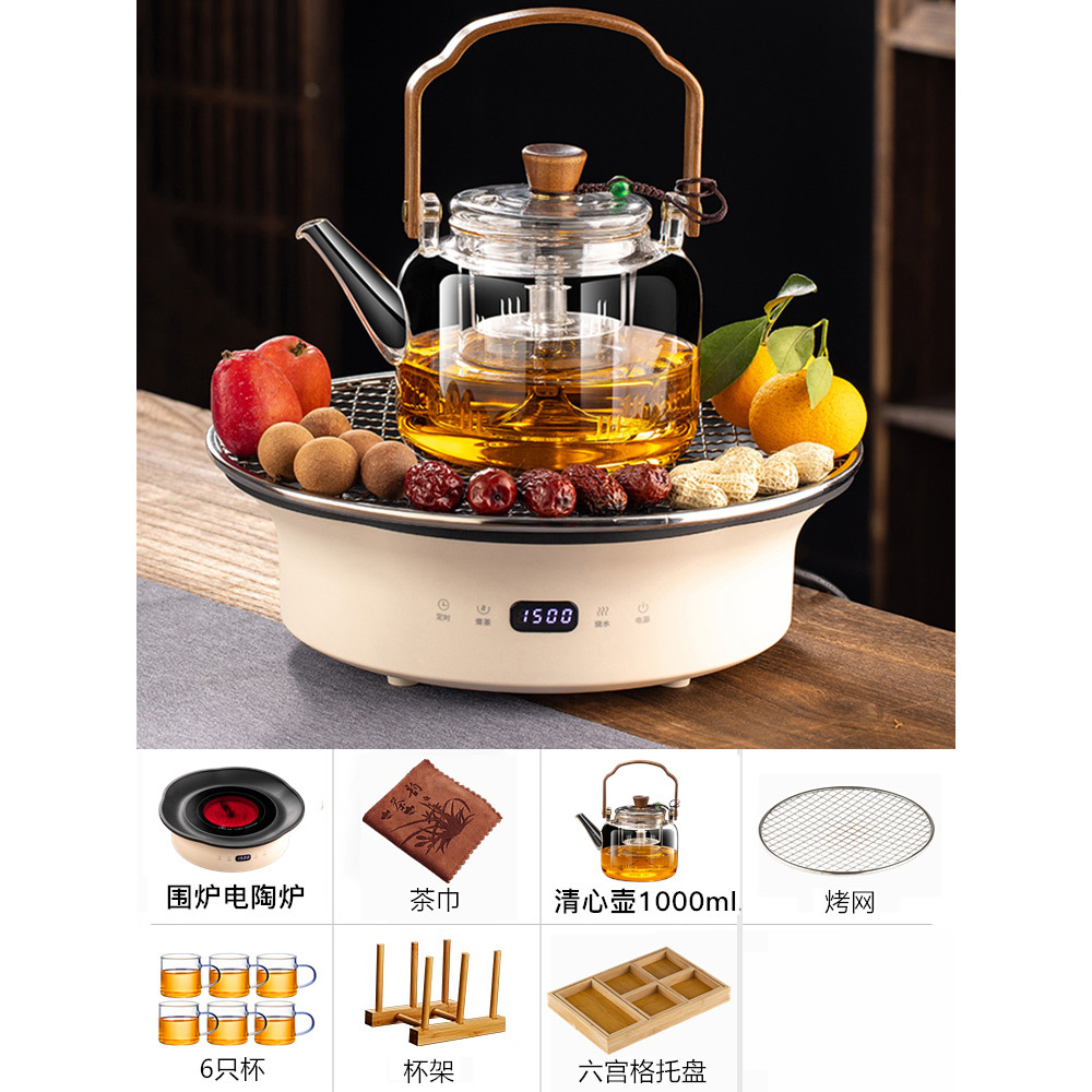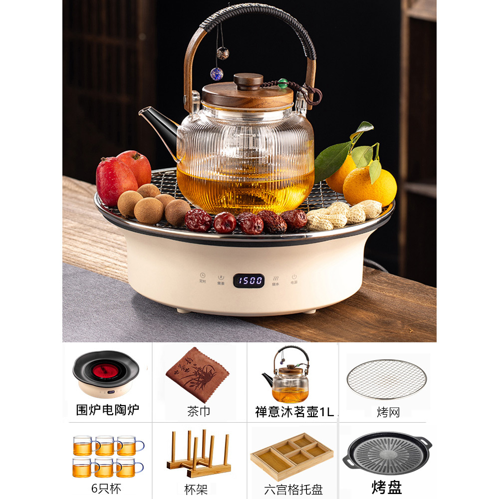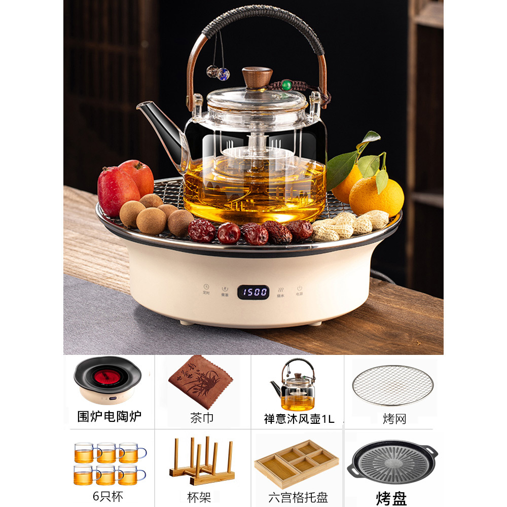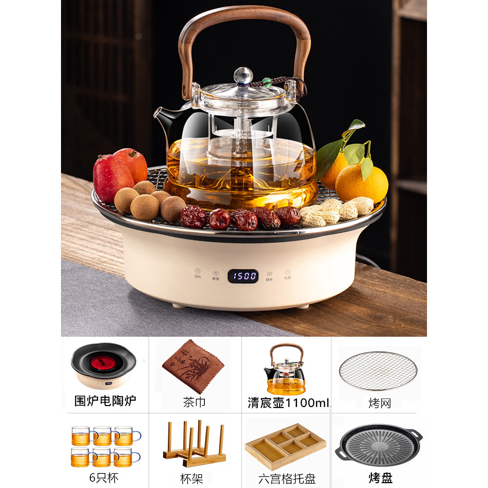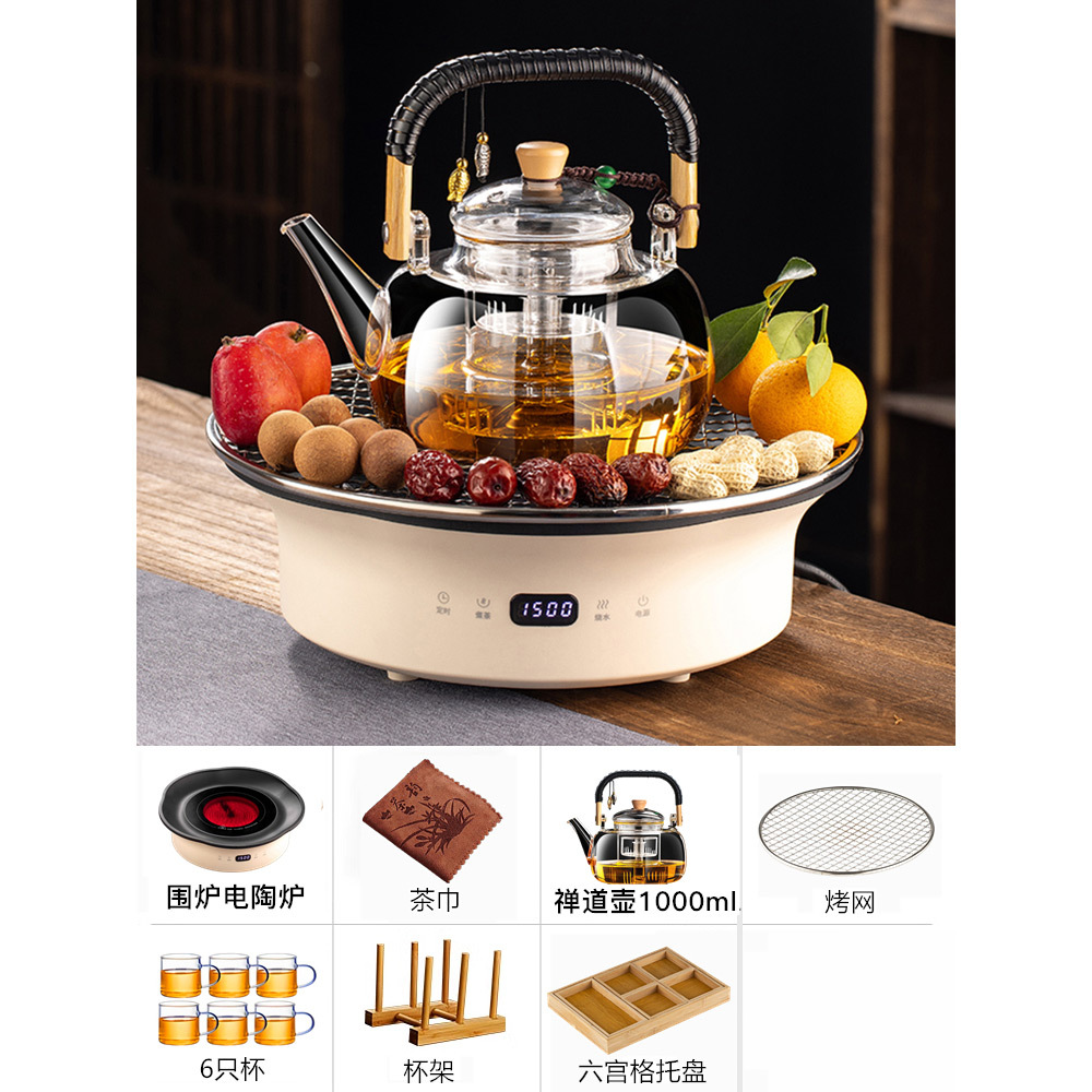 Indoor Multi functional Smoke free Oven Tea Set for Household Electric Ceramic Stove Glass Teapot Cooking Set