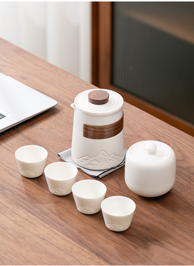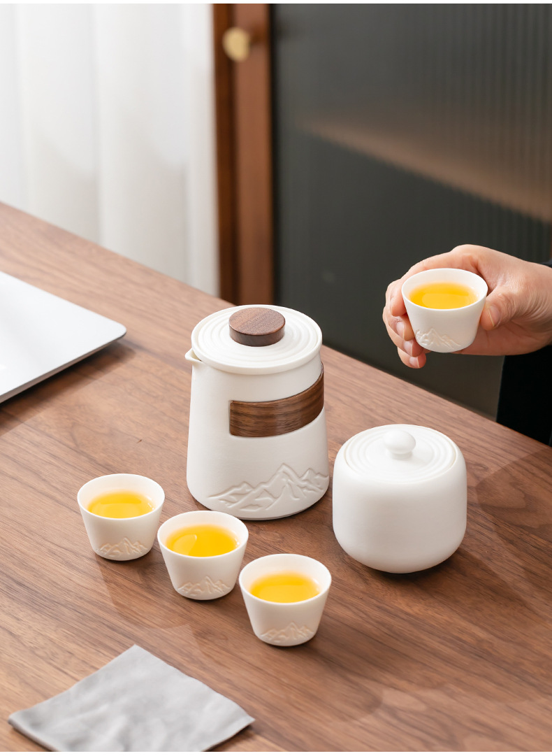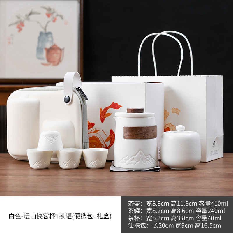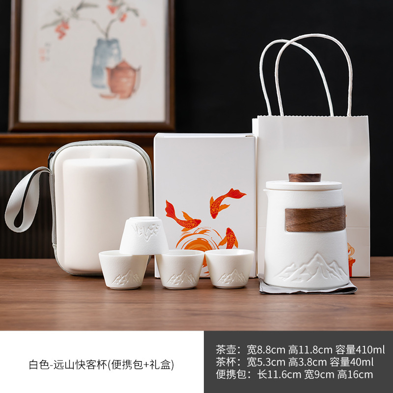 Керамические путешествия, переносные чайные наборы, чайник, четыре чашки, кемпинг, один человек на улице, чтобы выпить подарок от делового партнера, логотип