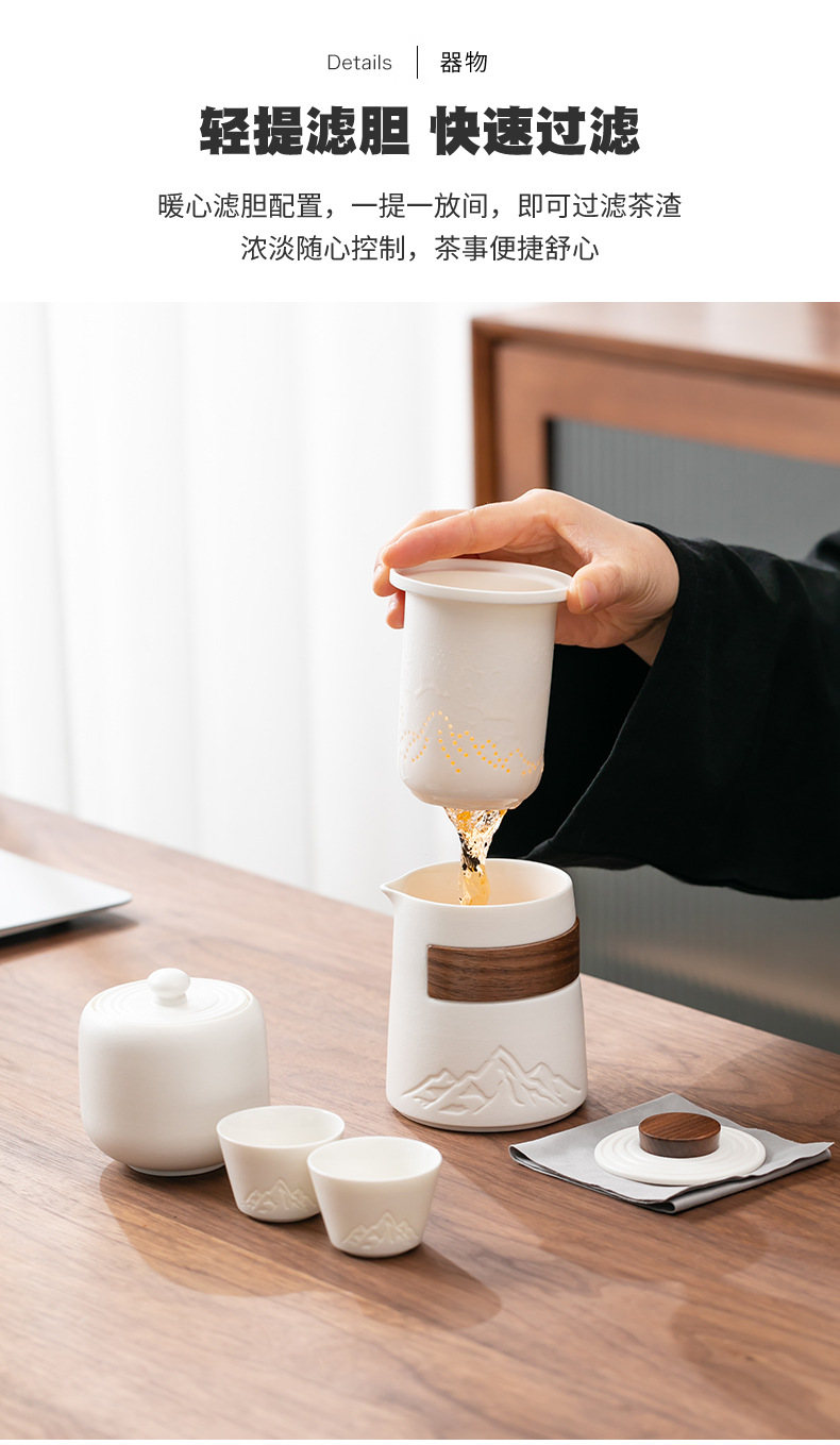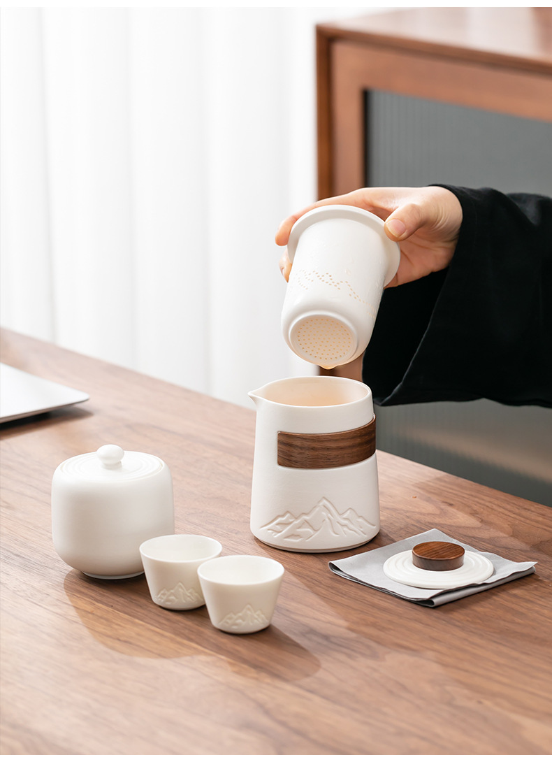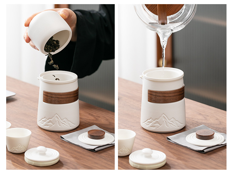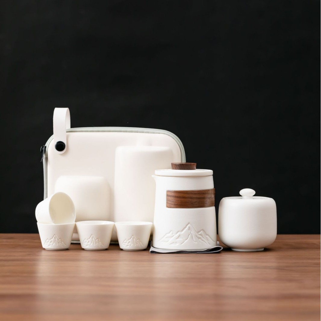 Керамические путешествия, переносные чайные наборы, чайник, четыре чашки, кемпинг, один человек на улице, чтобы выпить подарок от делового партнера, логотип