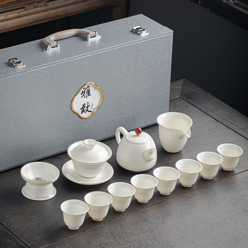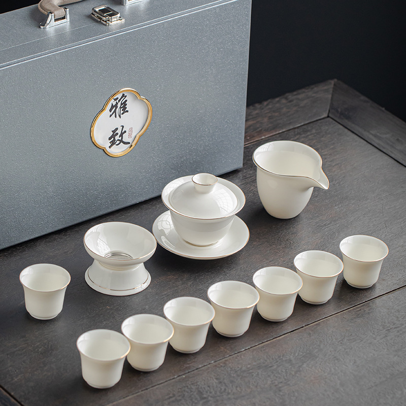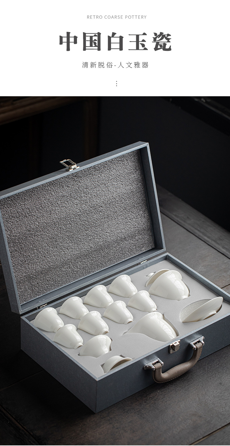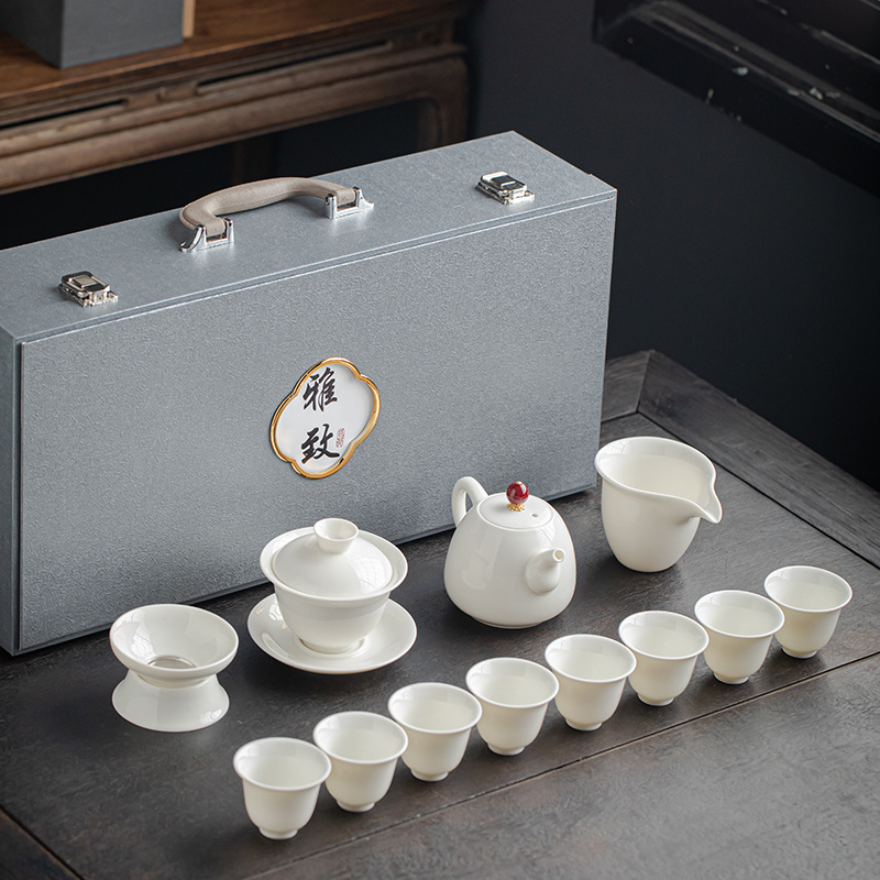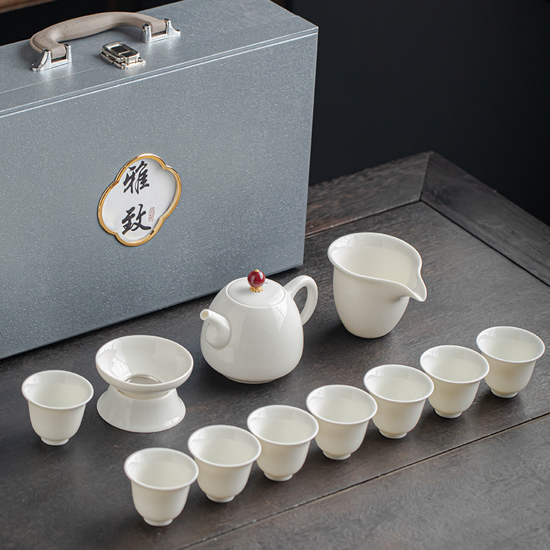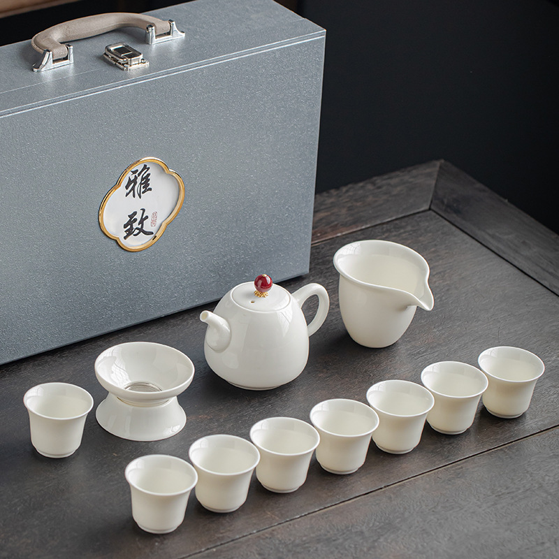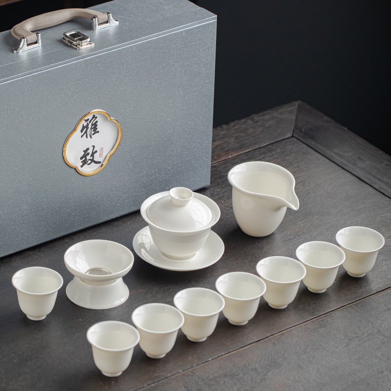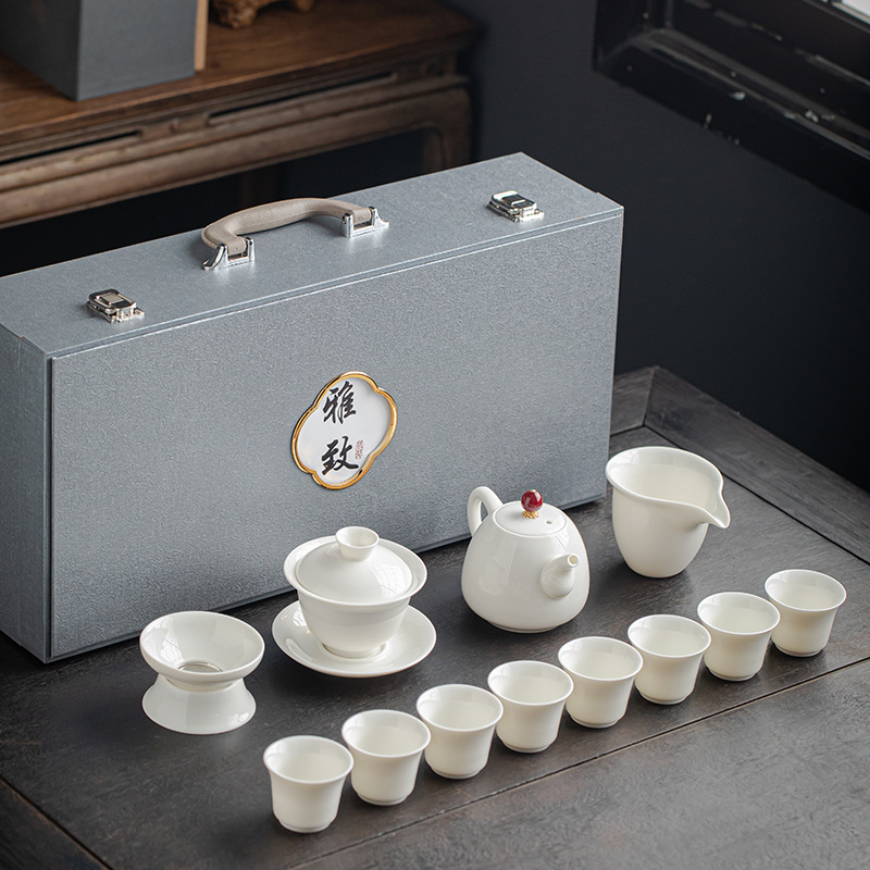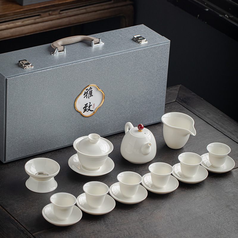 Dehua Yangzhi Jade White Porcelain Kung Fu Tea Set Wholesale with printable company logo Opening Gift Set Set Gift Box Set