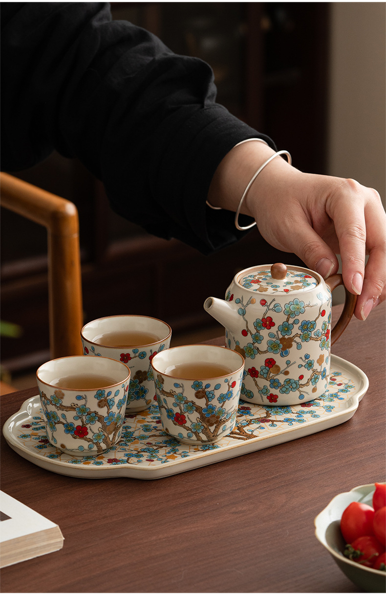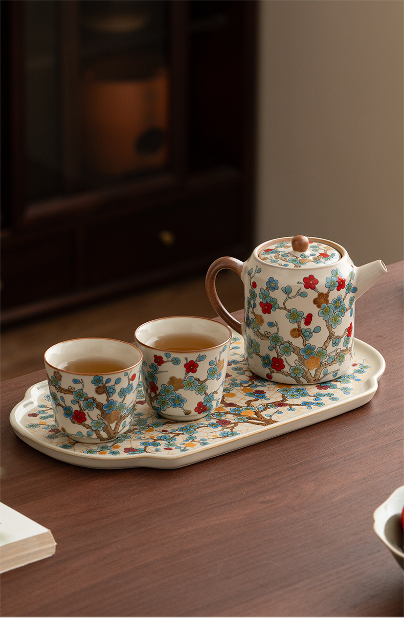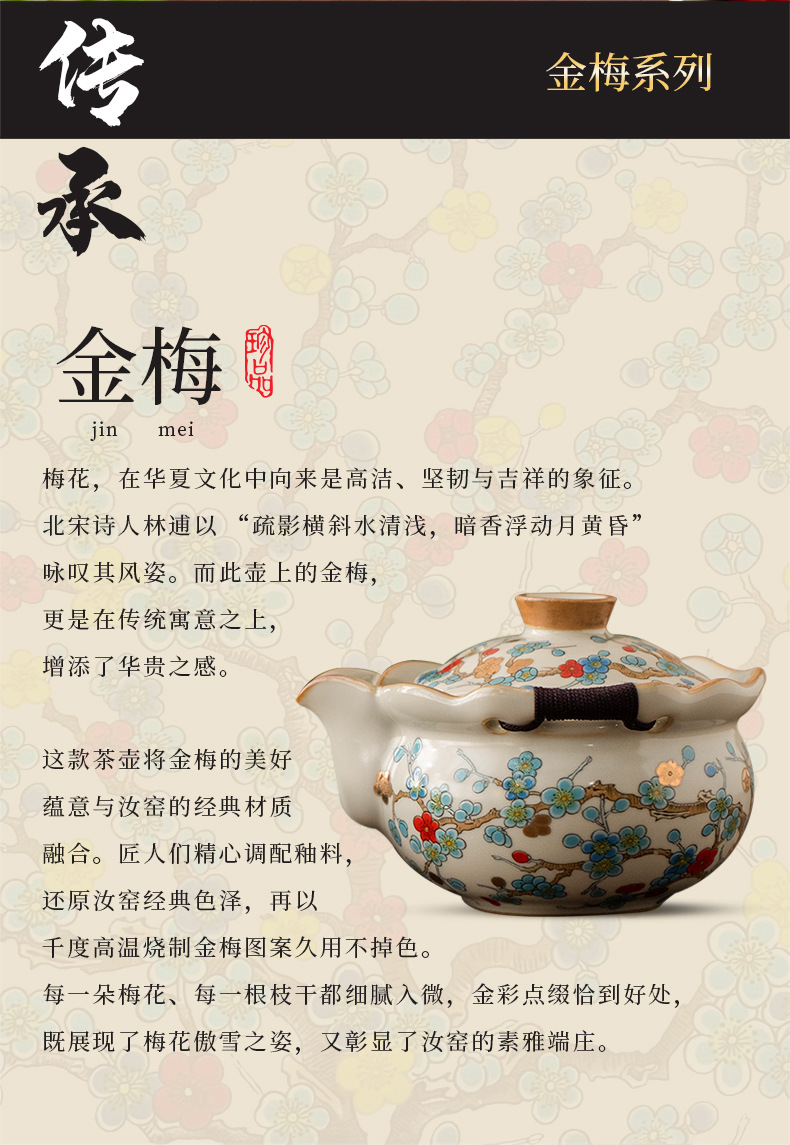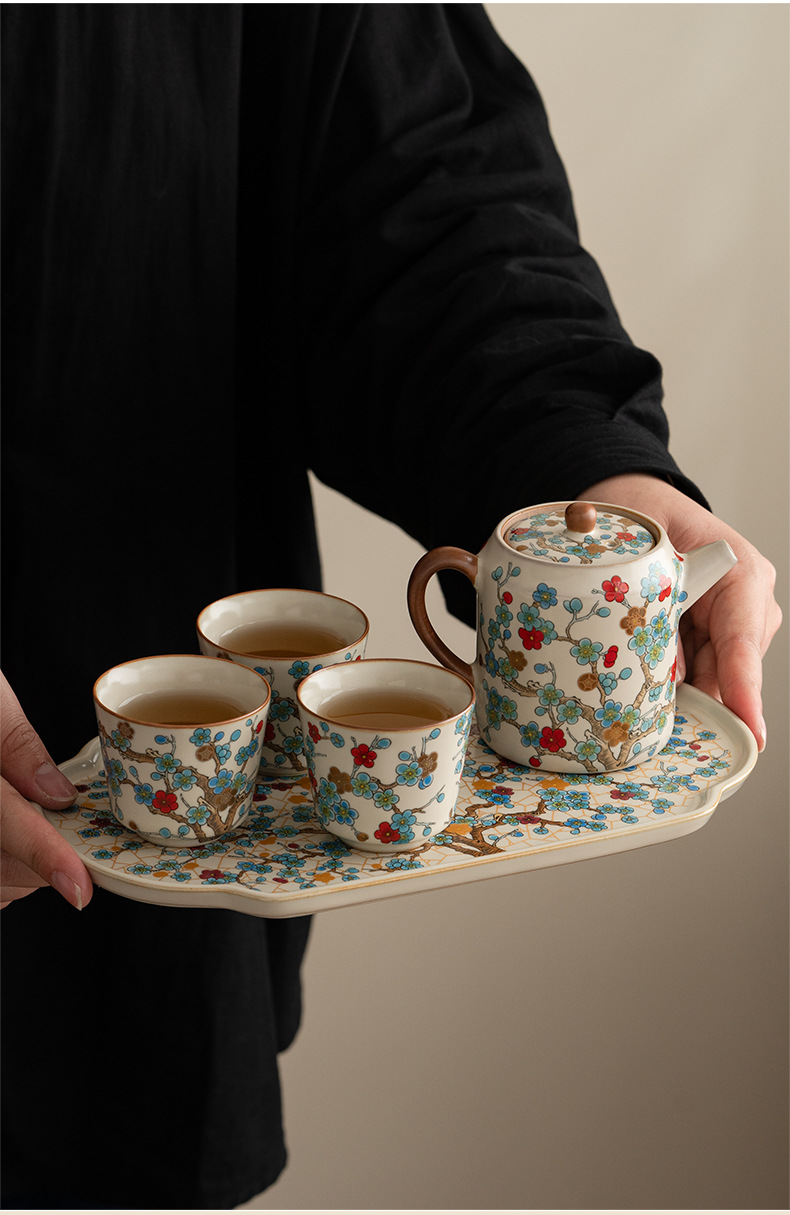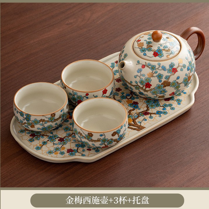 Ji Huan Ru Kiln Golden Plum Teapot Kung Fu Tea Set Chinese High end Household Ceramic Teapot Teacup Tray