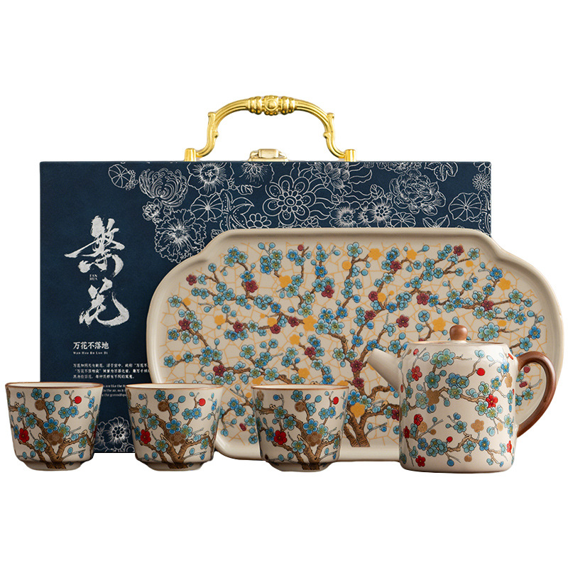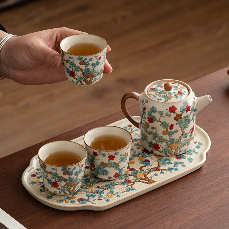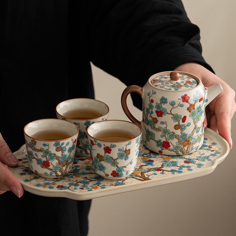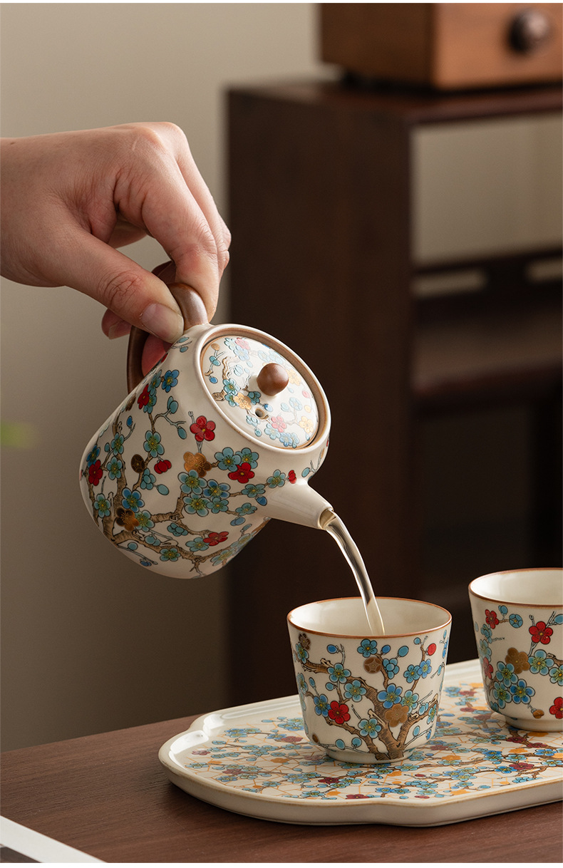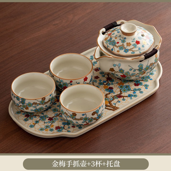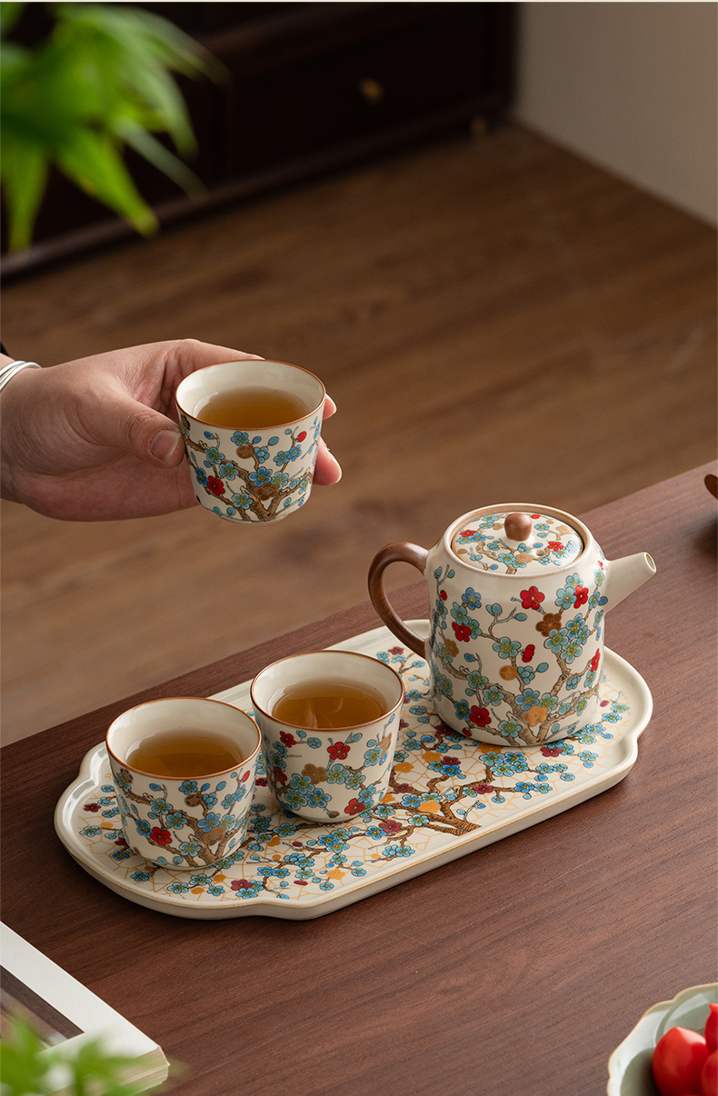 Ji Huan Ru Kiln Golden Plum Teapot Kung Fu Tea Set Chinese High end Household Ceramic Teapot Teacup Tray