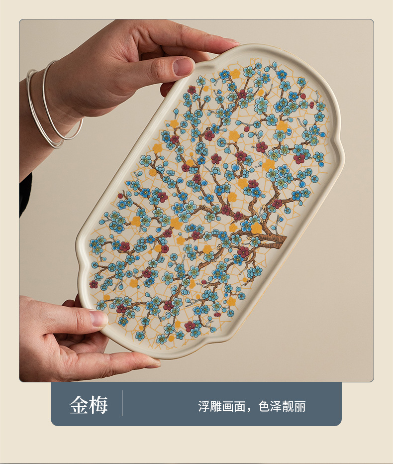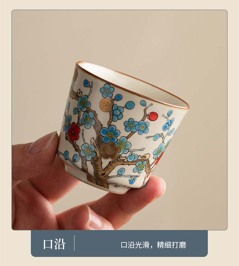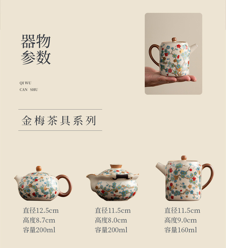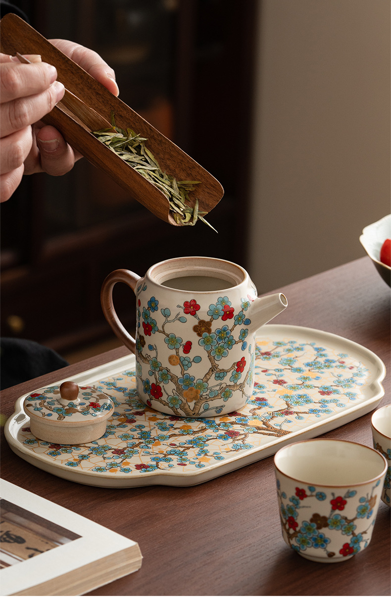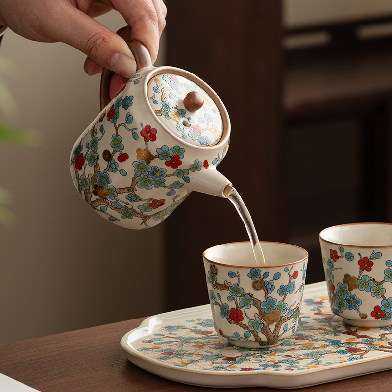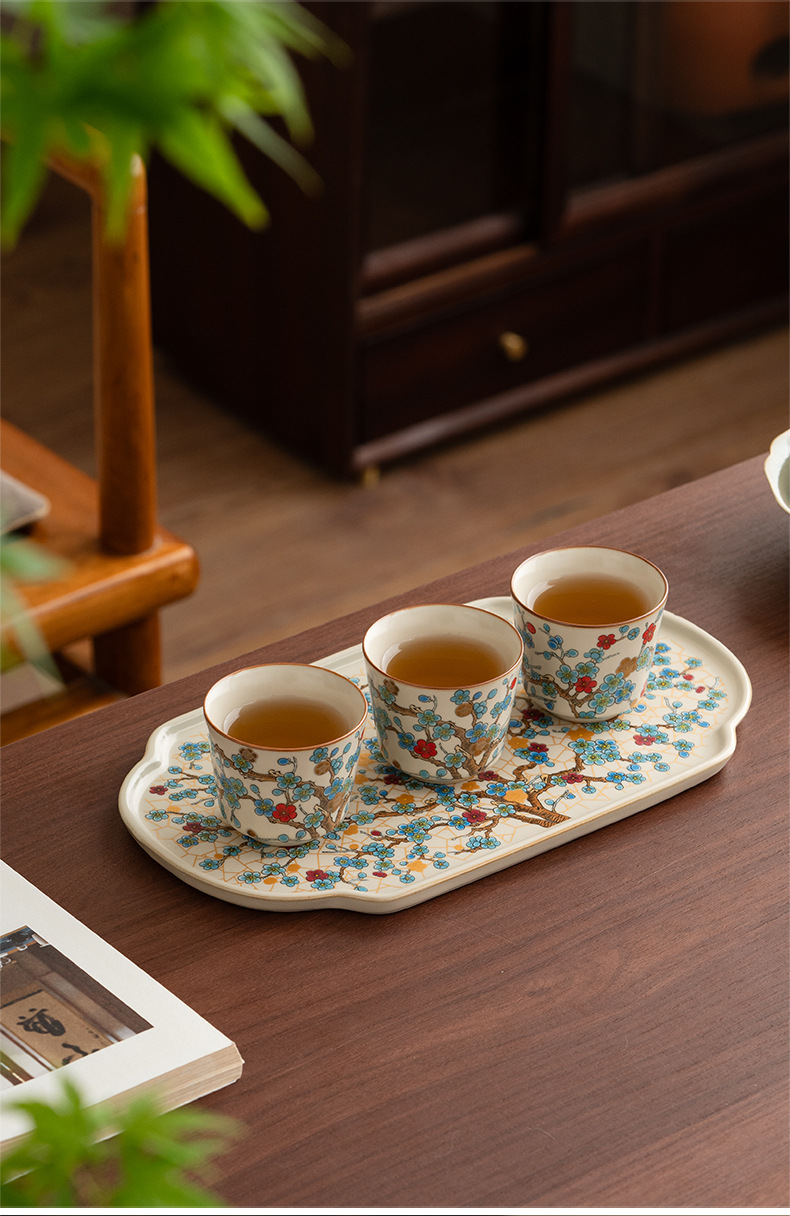 Ji Huan Ru Kiln Golden Plum Teapot Kung Fu Tea Set Chinese High end Household Ceramic Teapot Teacup Tray