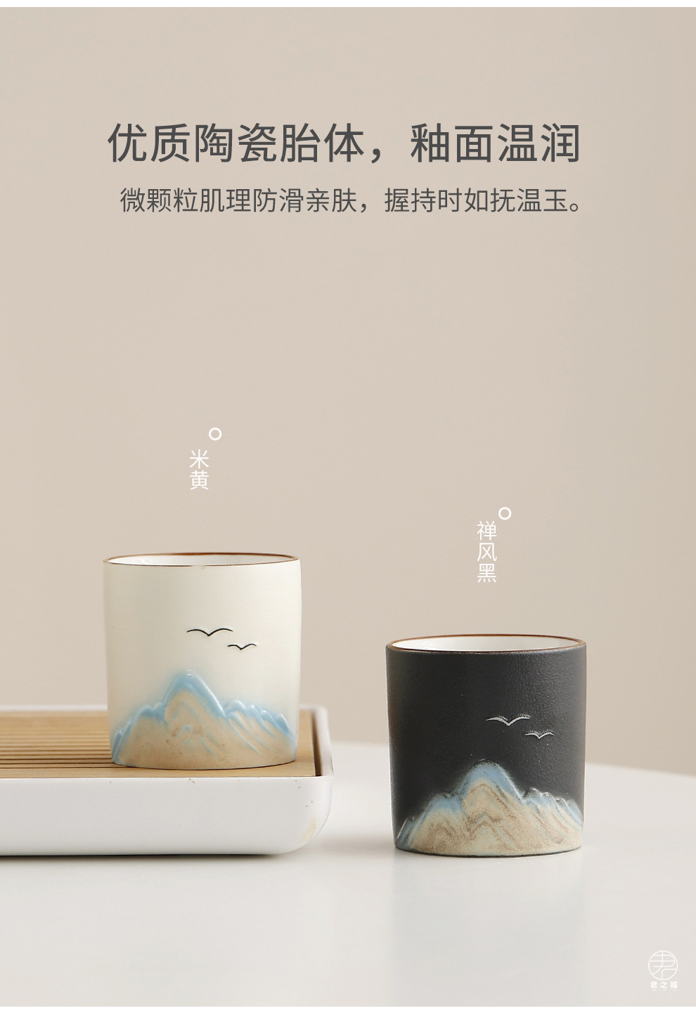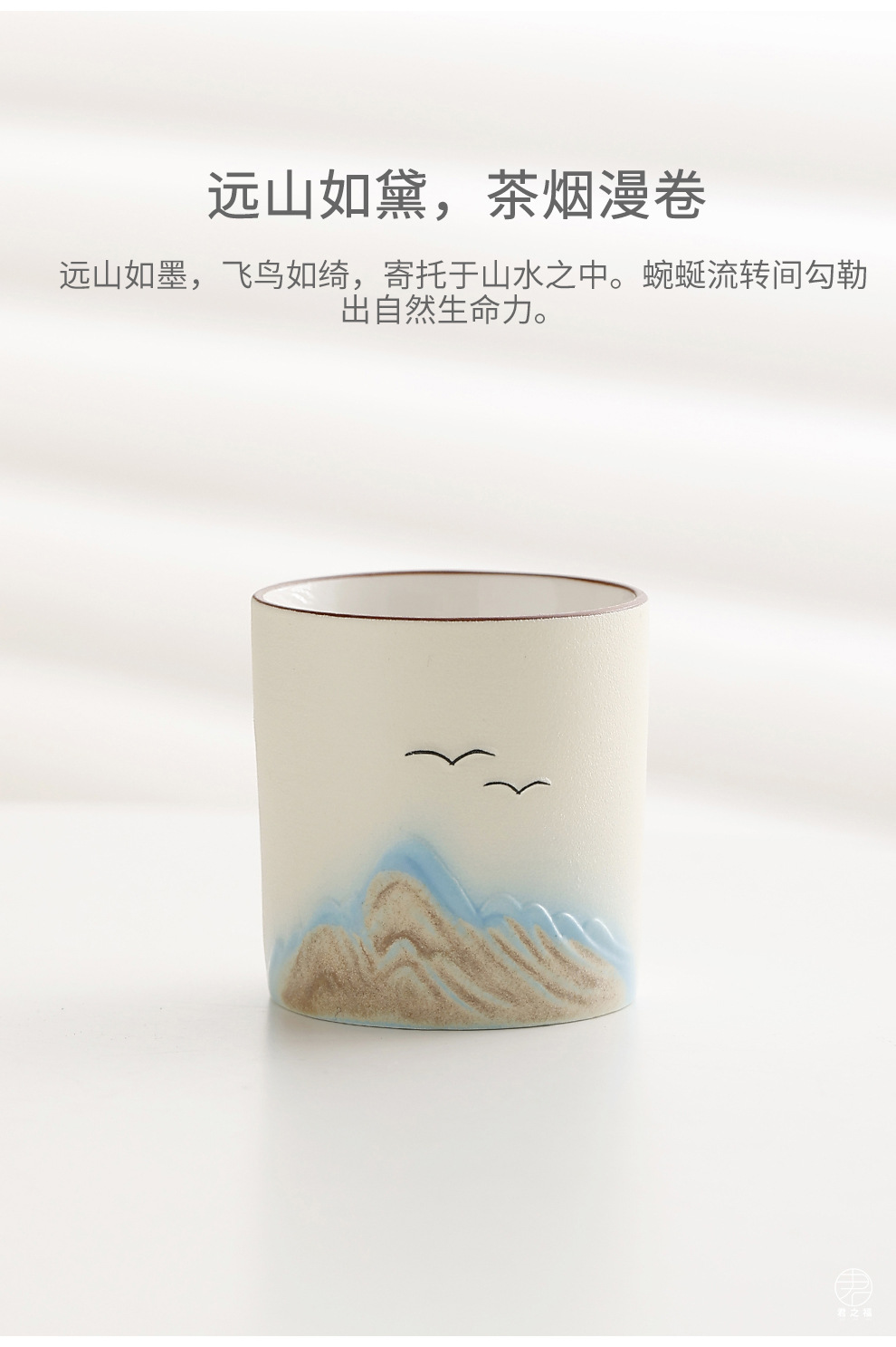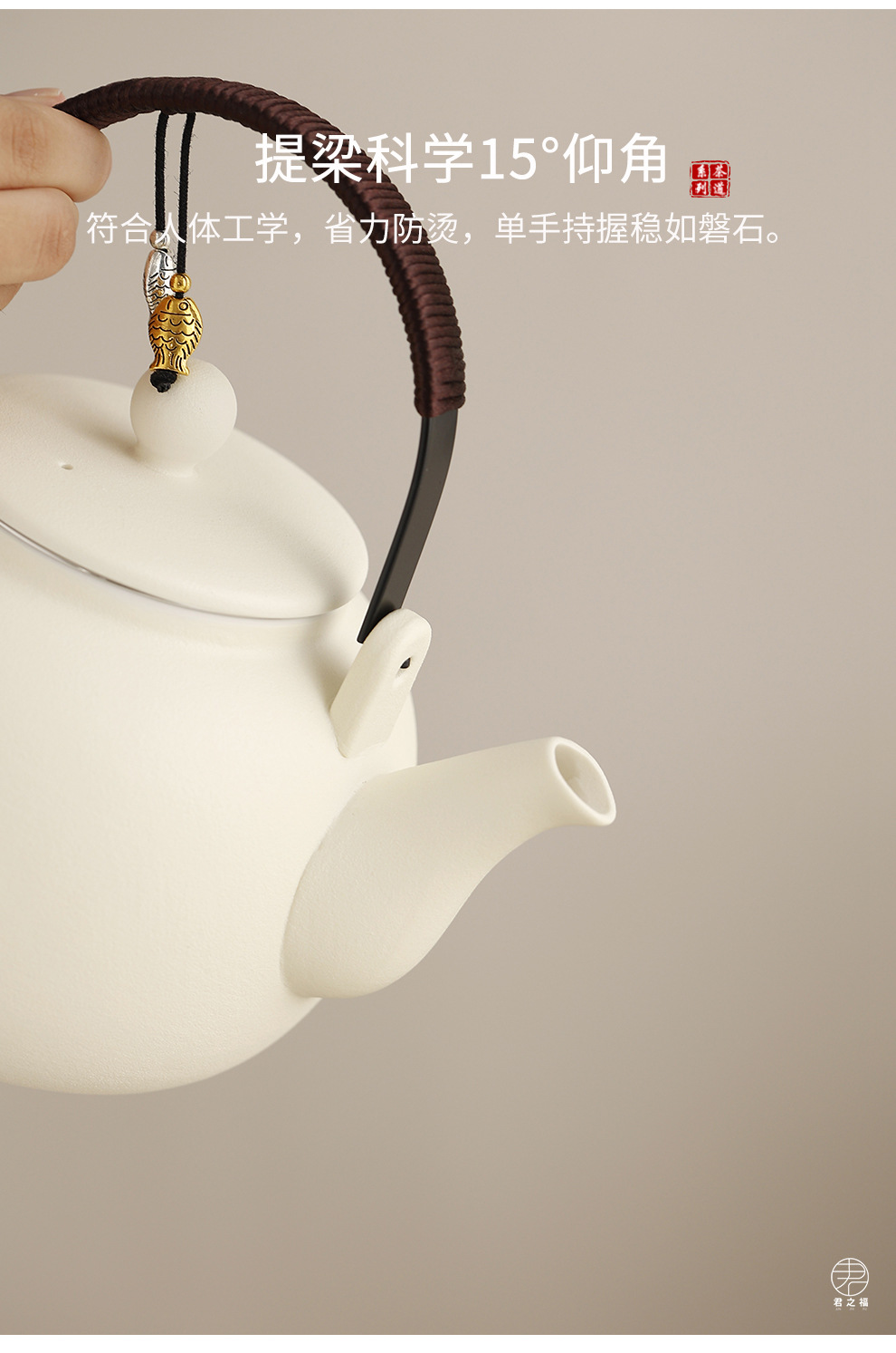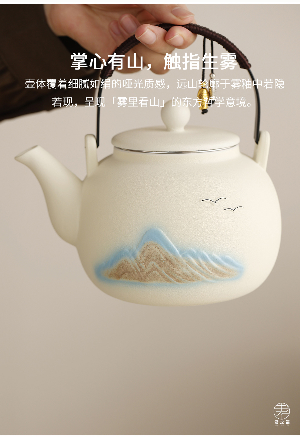 Cross border ceramic frosted glaze large capacity lifting beam teapot tea set, Japanese style simple relief distant mountain teapot cup set
