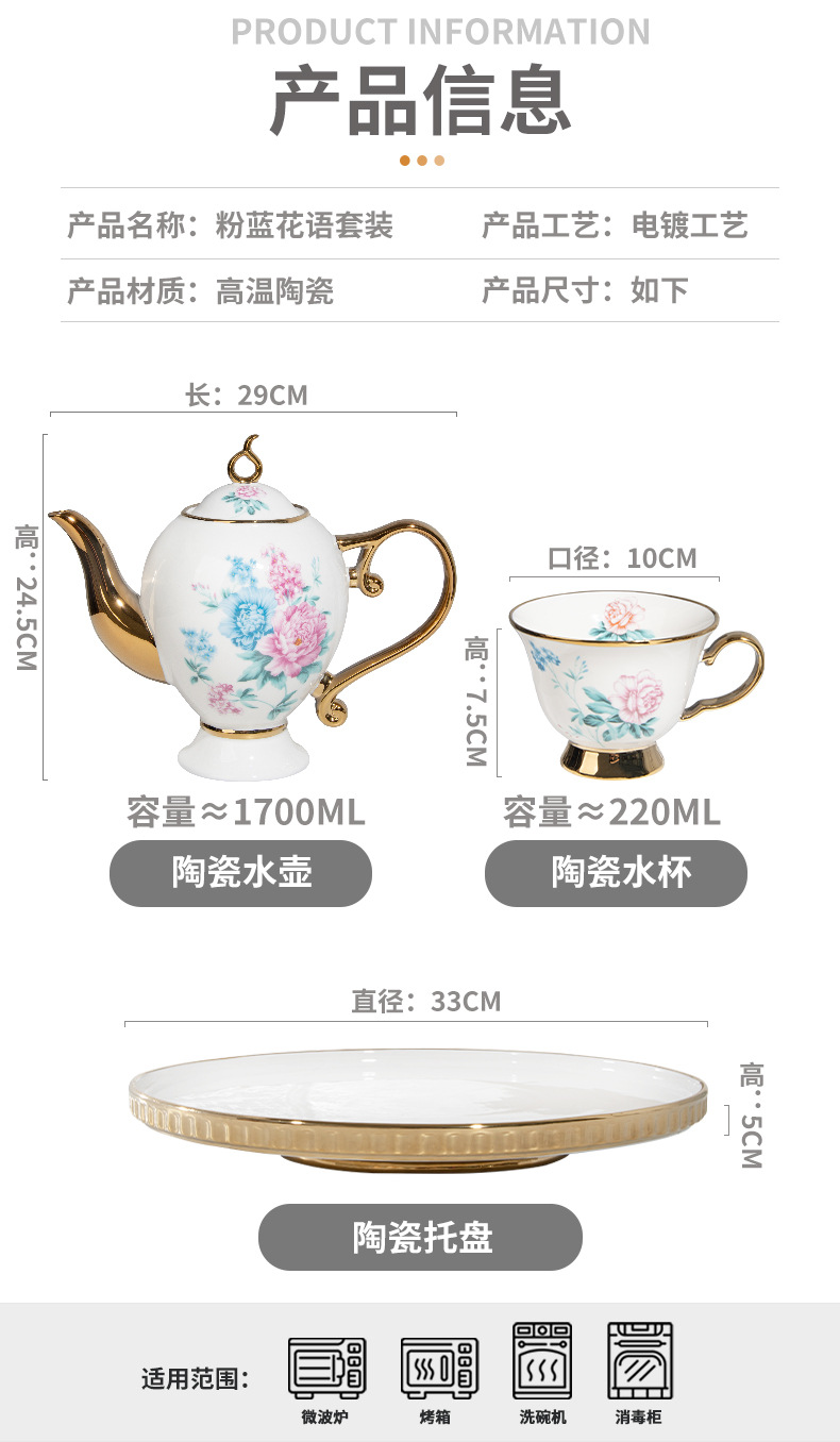 Ceramic water tools, antique tea sets, household water cups, heat-resistant cold water pots, housewarming gifts, tea cups, boxed sets