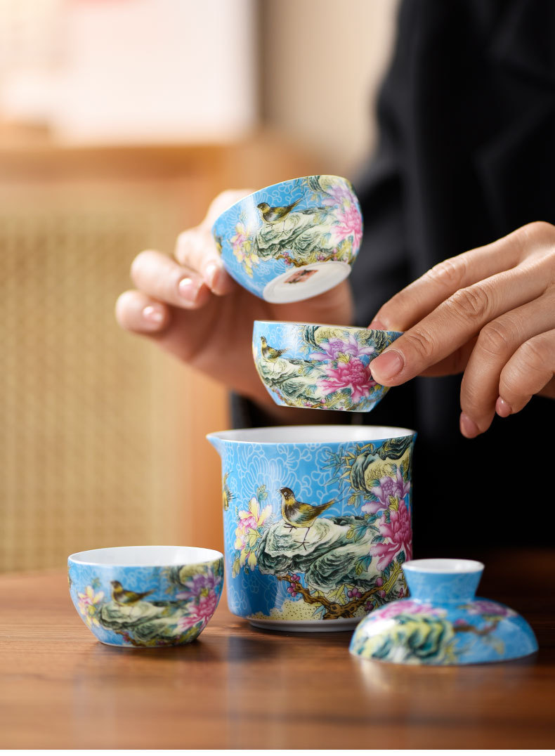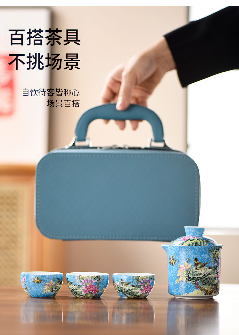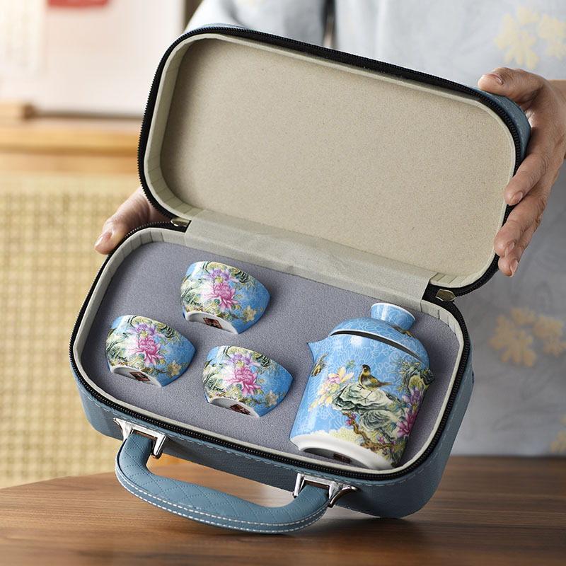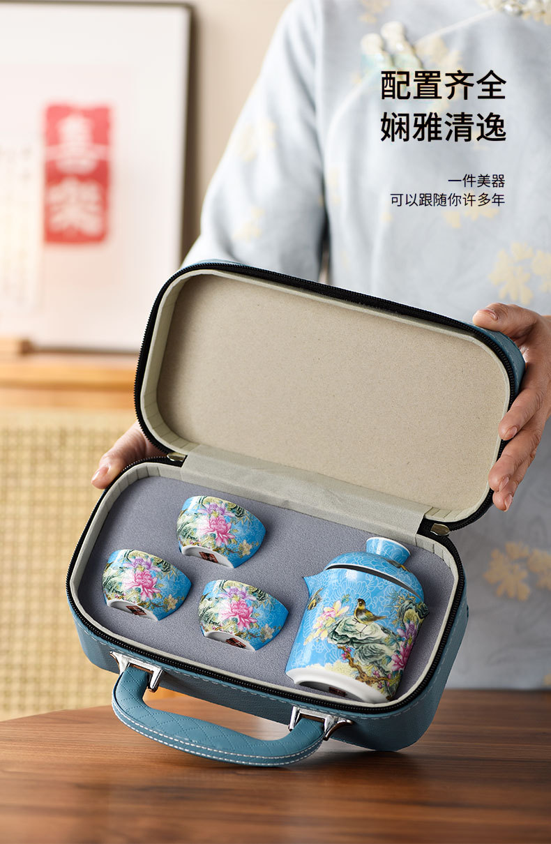 New Chinese Travel Tea Set Full Color Outdoor Tea Maker Portable Teapot Kung Fu Travel Car Cup