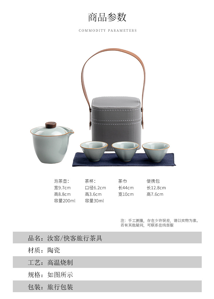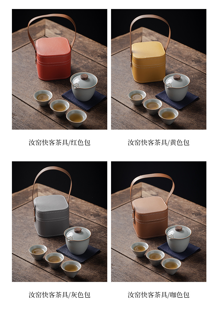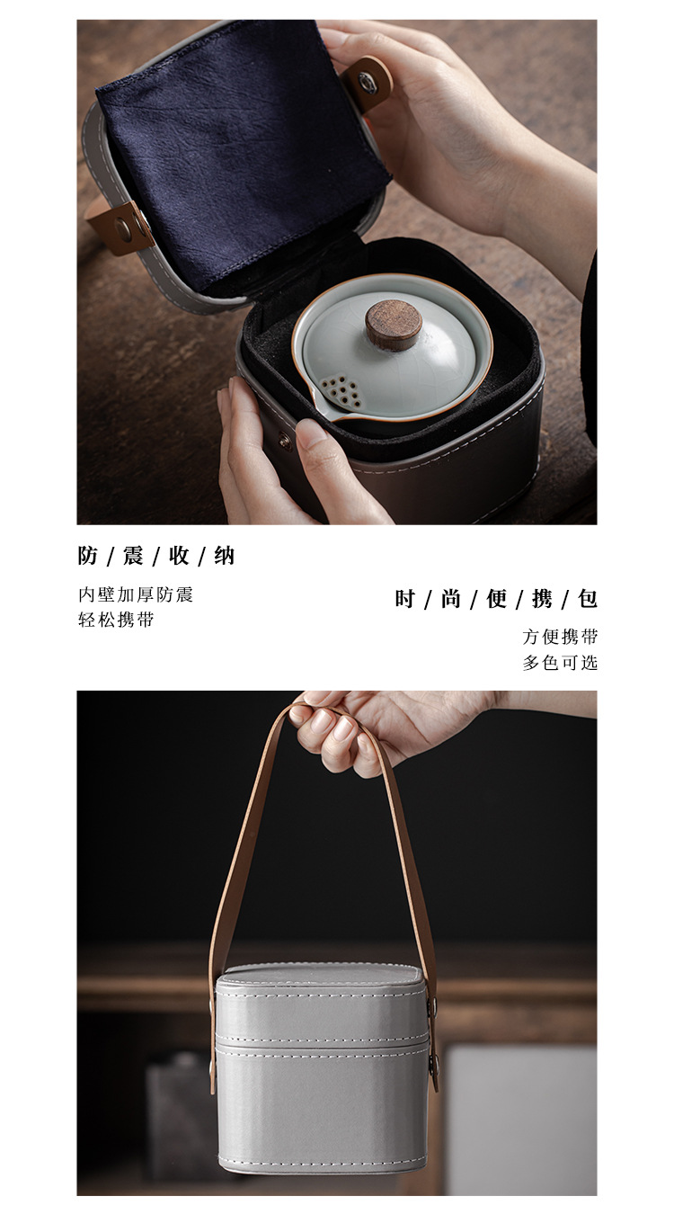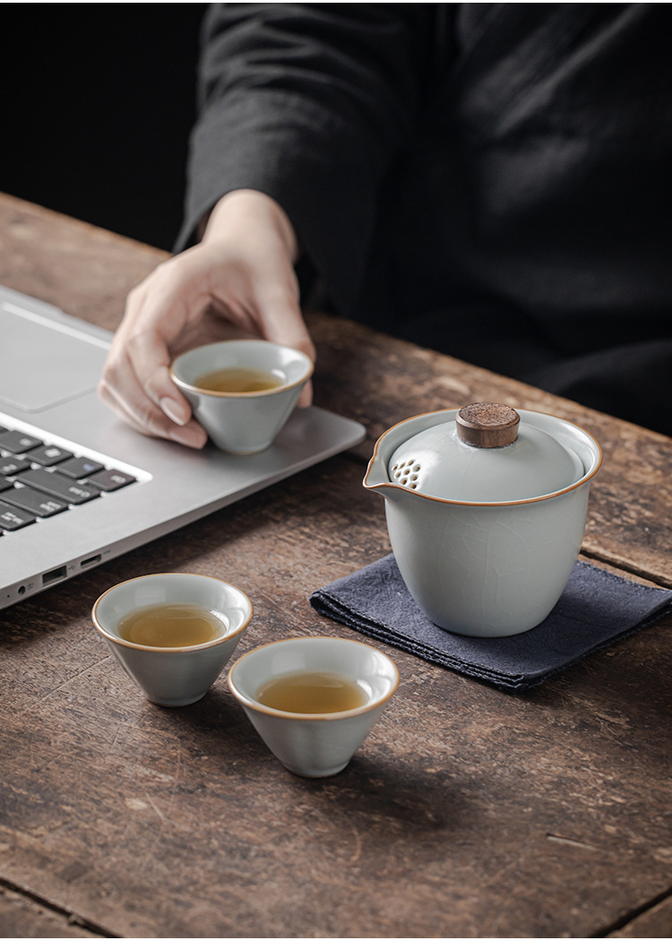 Ru Kiln Travel Tea Set Outdoor Portable One Pot Three Cups Kung Fu Tea Maker Cup Complete Set Handheld Gift