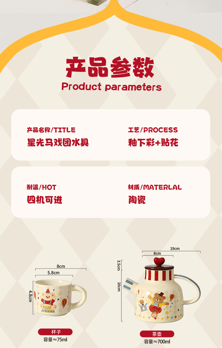 Цирковые пары Холодный чайник Чайник Наборы Домашние подарки Чашки Милый день рождения Водные принадлежности Домашние чайники