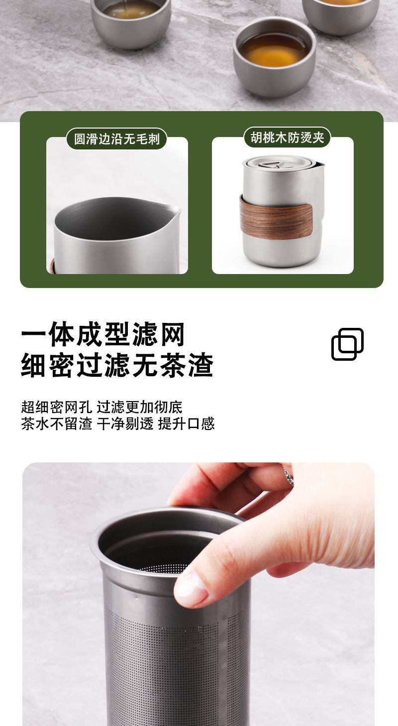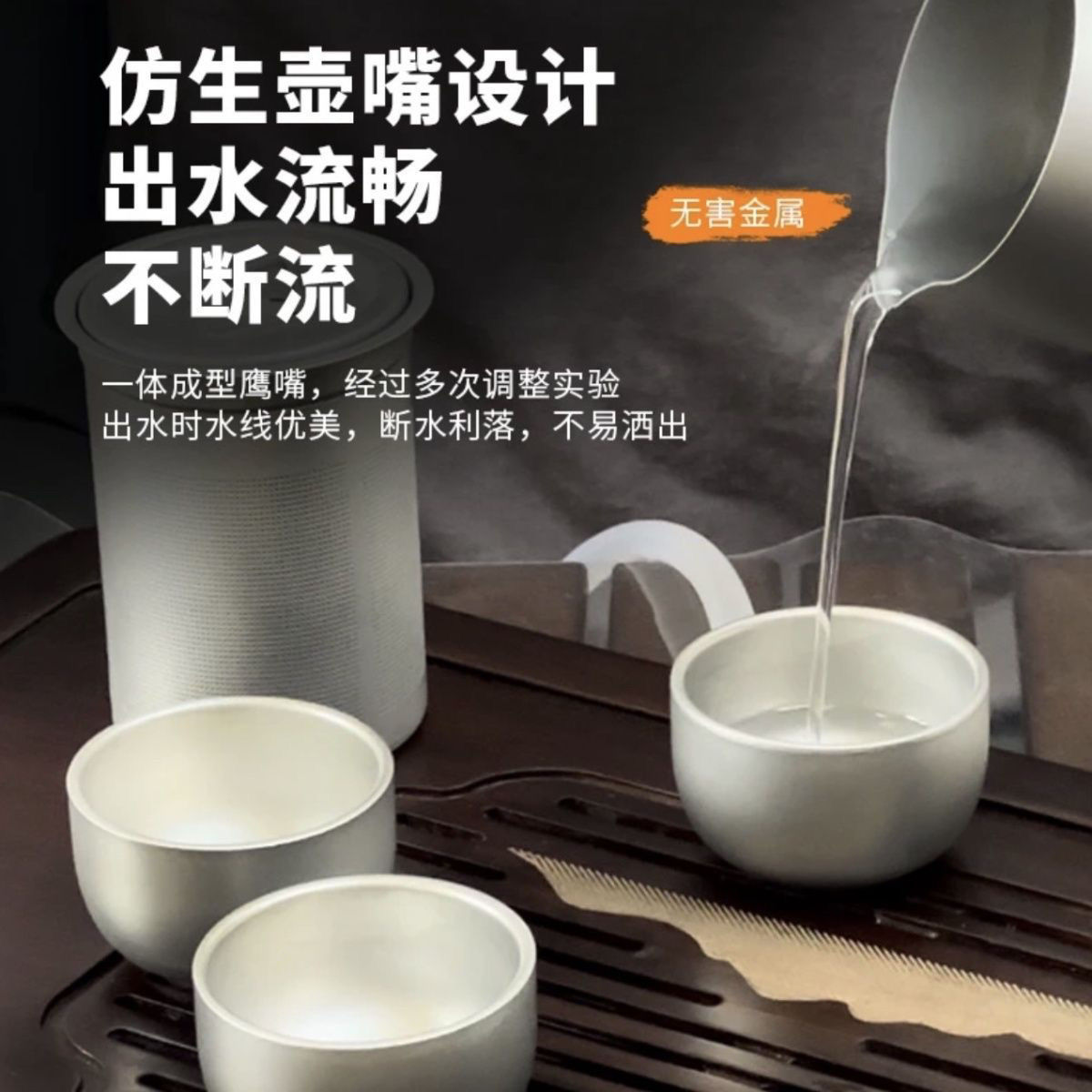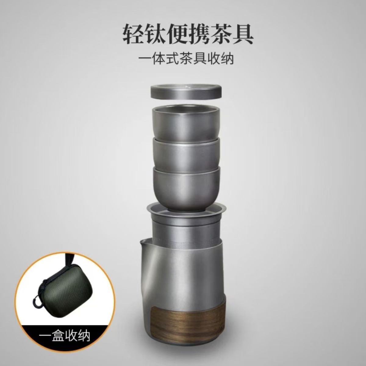 Cross border outdoor camping tea set, alloy tea set, portable travel tea set, teapot, double-layer tea cup