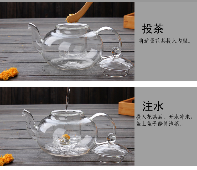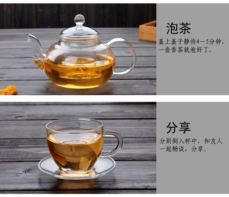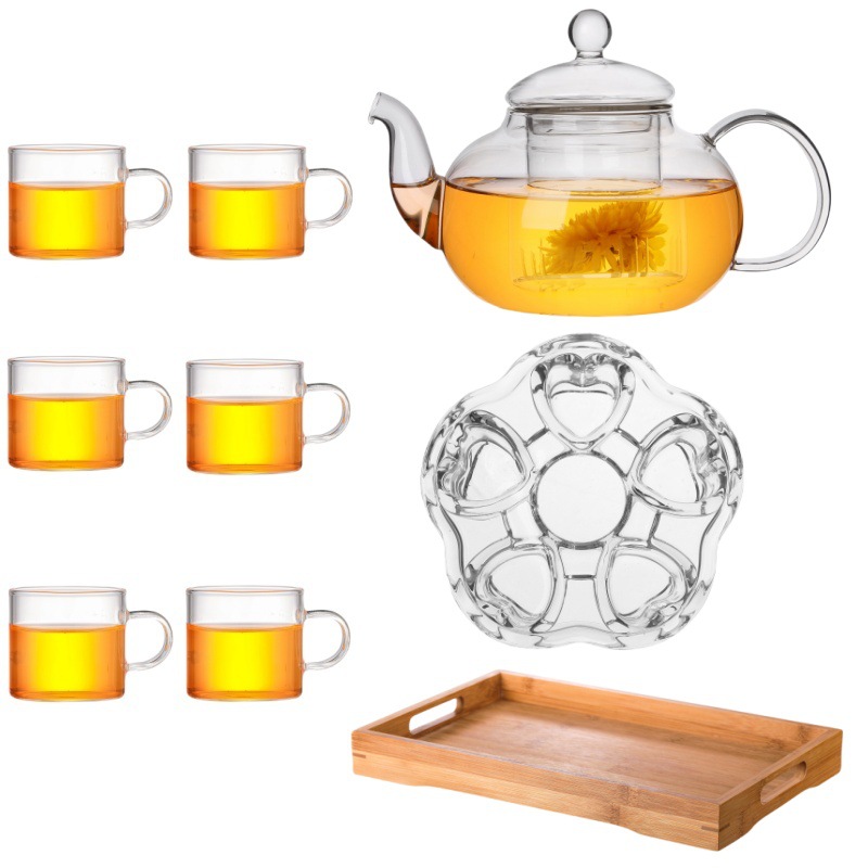 Thickened heat-resistant glass tea pot, Kung Fu tea set, flower tea pot, transparent filter inner liner, glass tea set, gift box set
