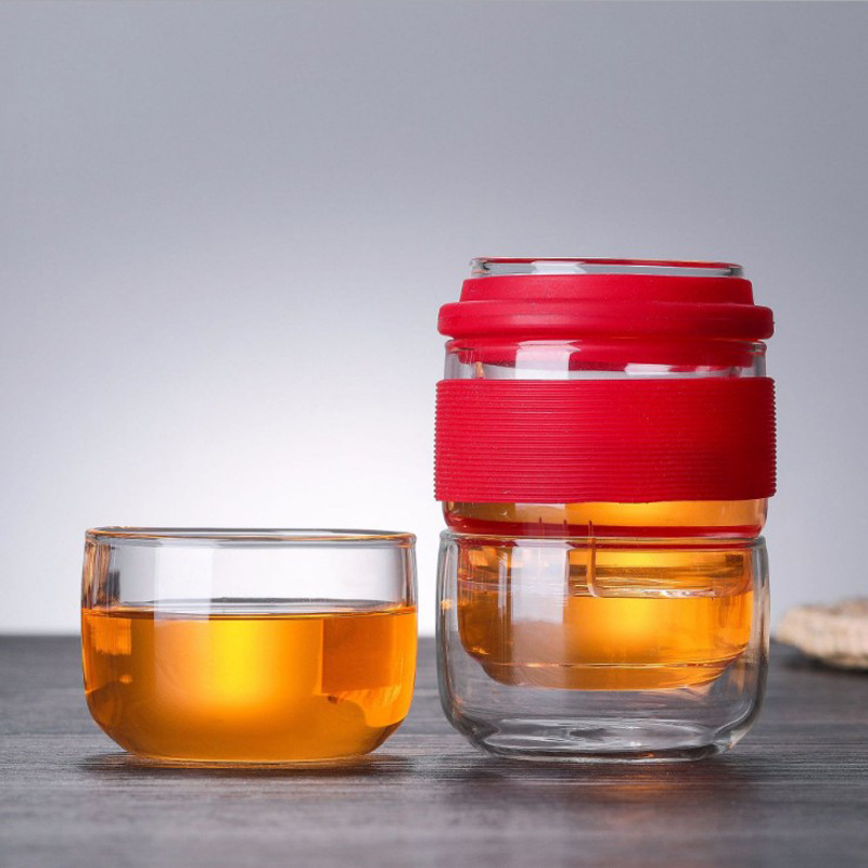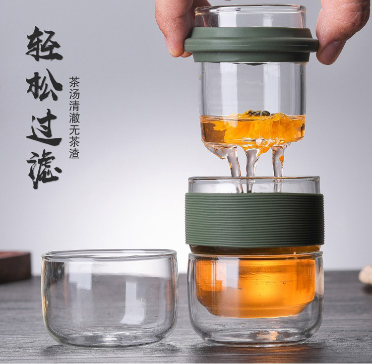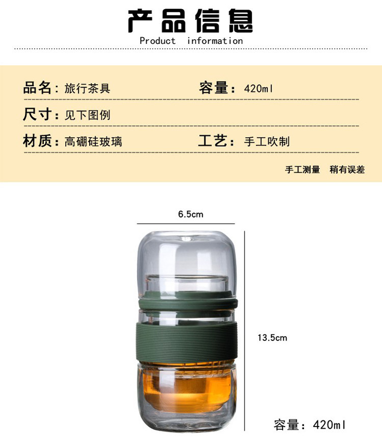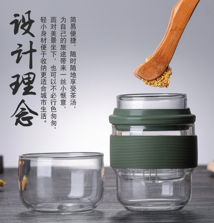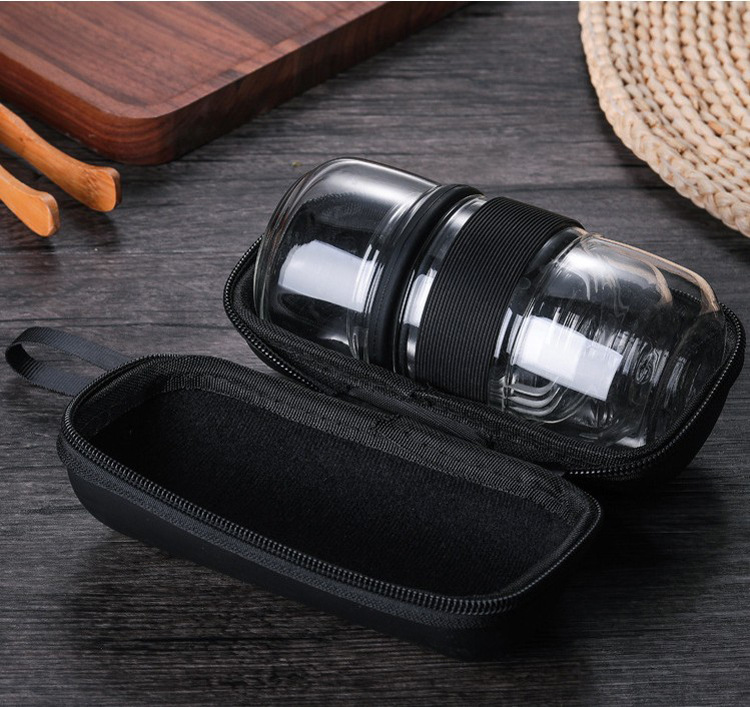 Portable travel tea set, glass quick guest cup storage bag, teapot, teacup, one pot, two cups, portable storage