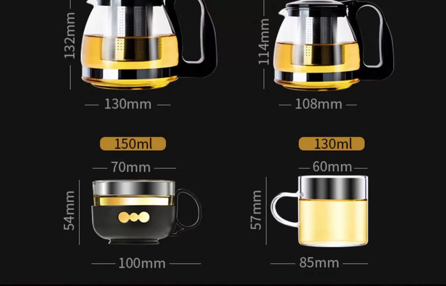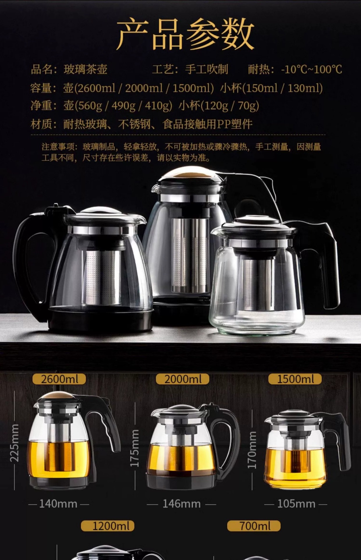 Tea set, Kung Fu tea pot, household large kettle, single pot, heat-resistant filter, flower tea pot, black tea glass teapot