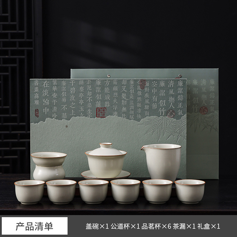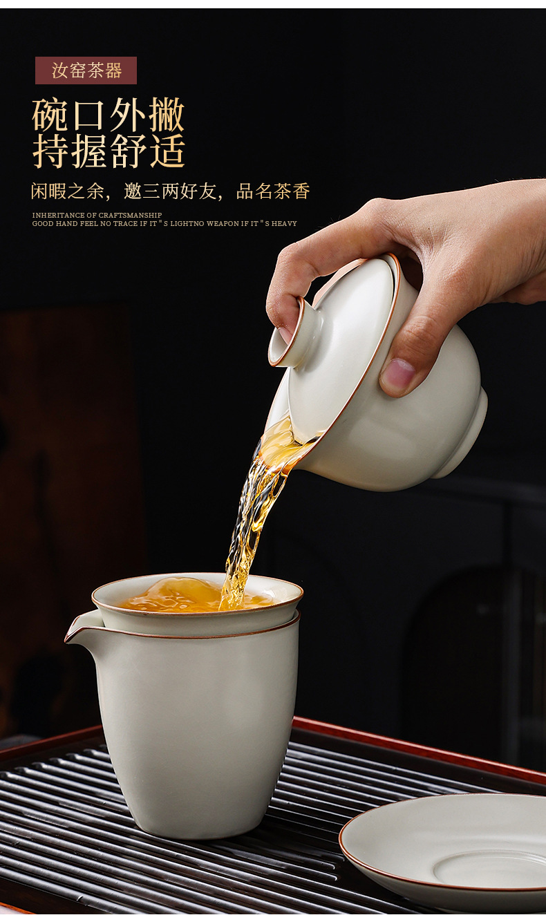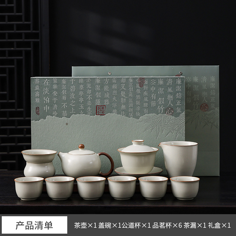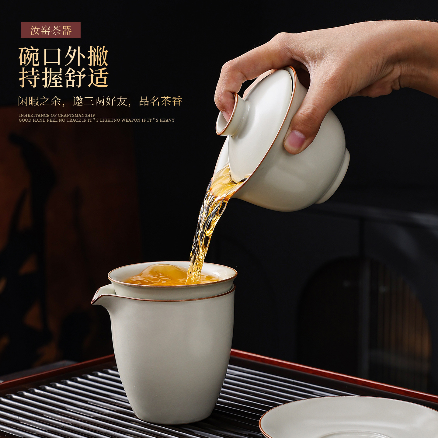 Mi Huang Ru Kiln Kung Fu Tea Set High end Gift Box Home Teapot High end Tea Cup Brewing Cover Bowl Ceramic Fair Cup