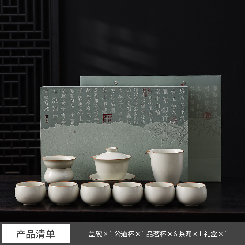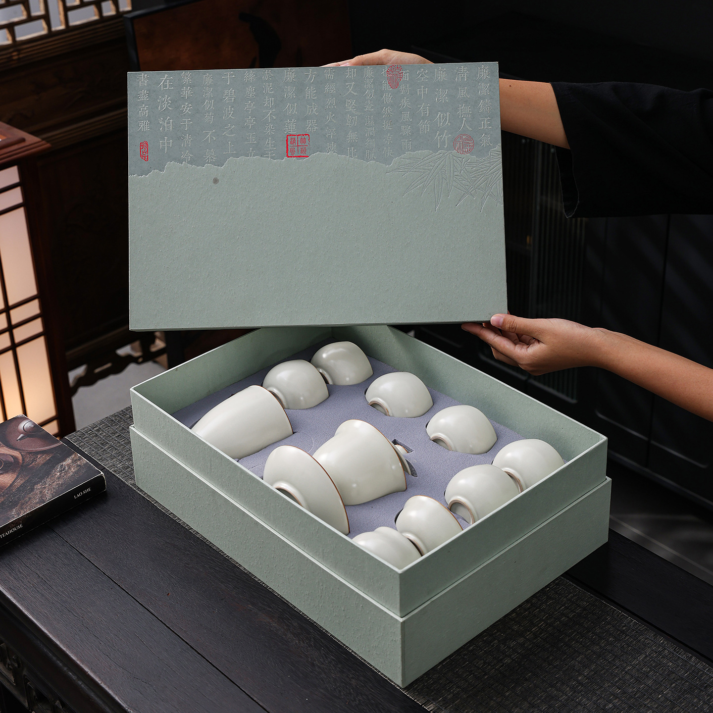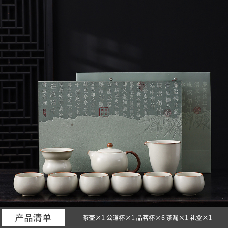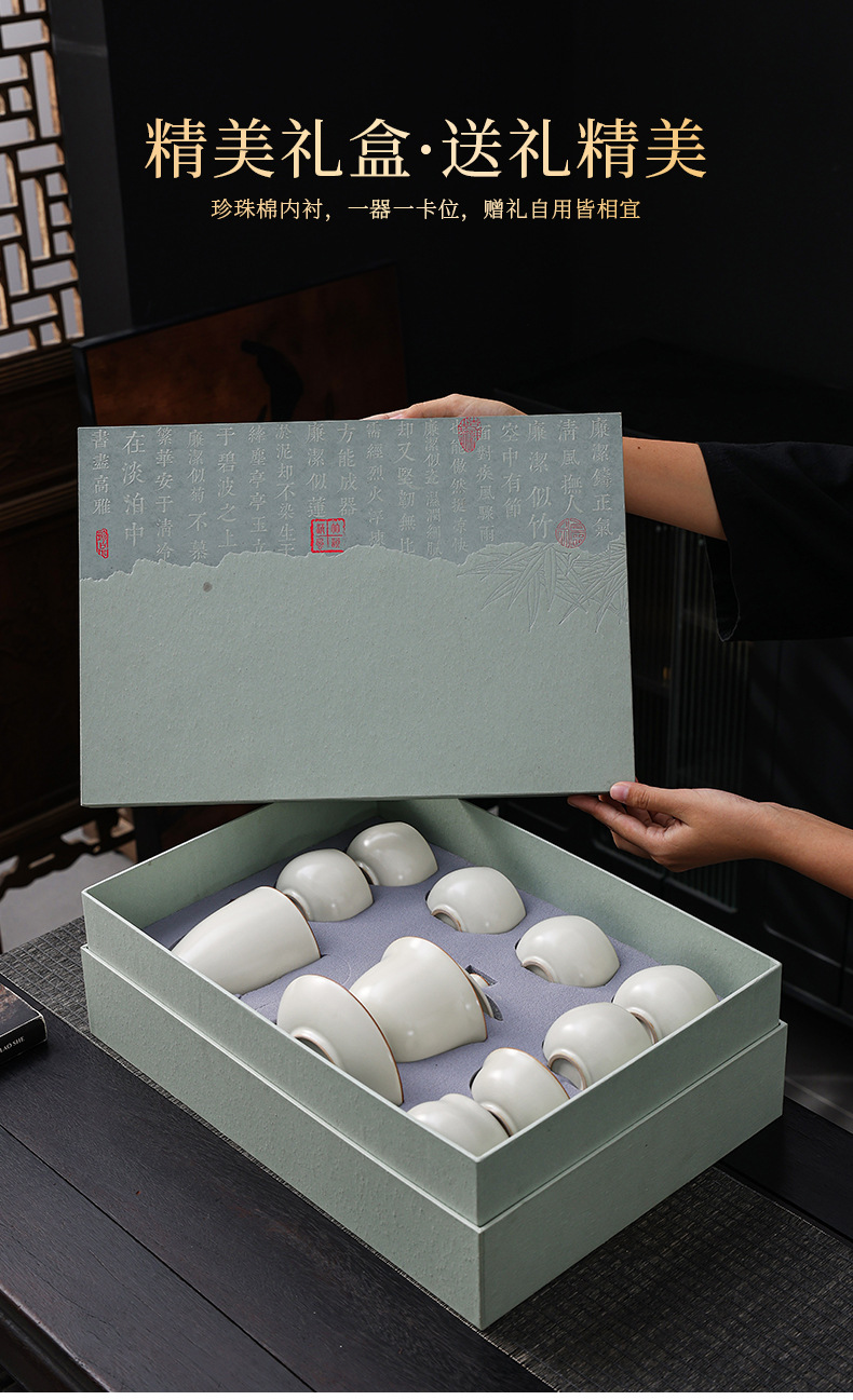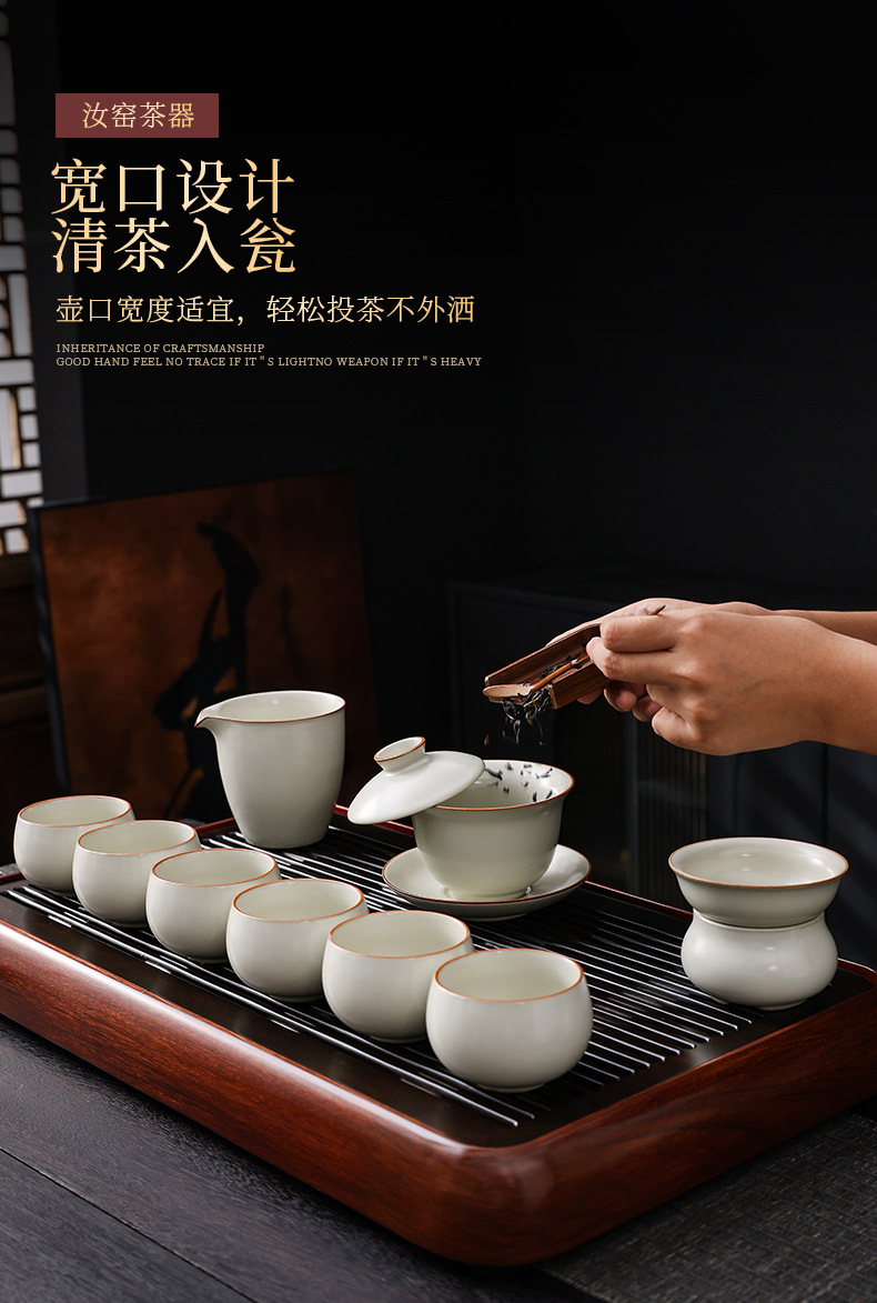 Mi Huang Ru Kiln Kung Fu Tea Set High end Gift Box Home Teapot High end Tea Cup Brewing Cover Bowl Ceramic Fair Cup