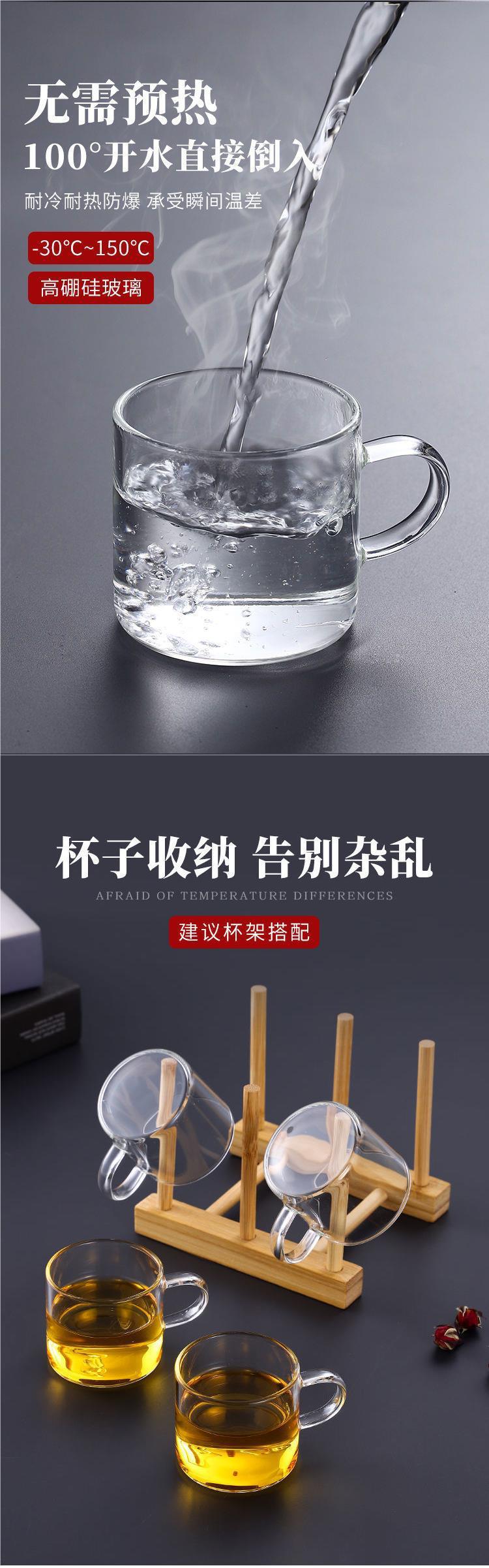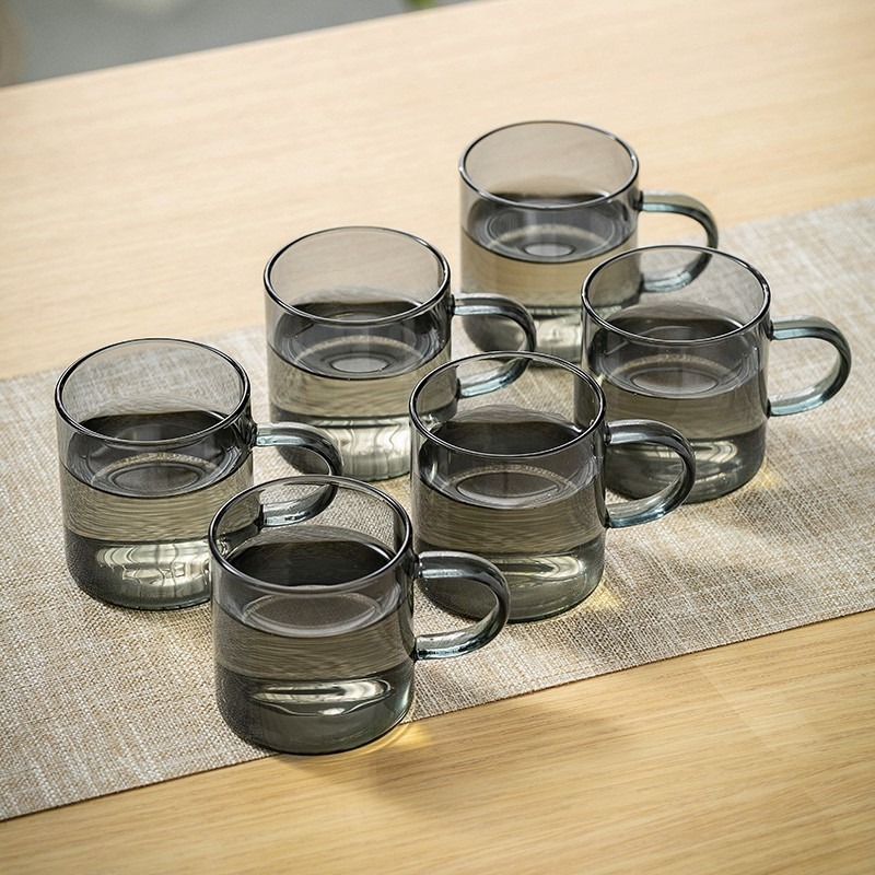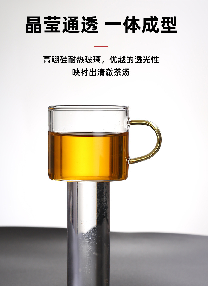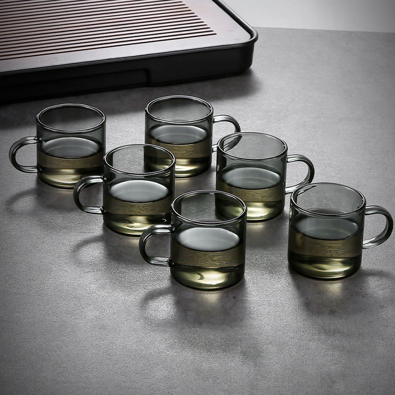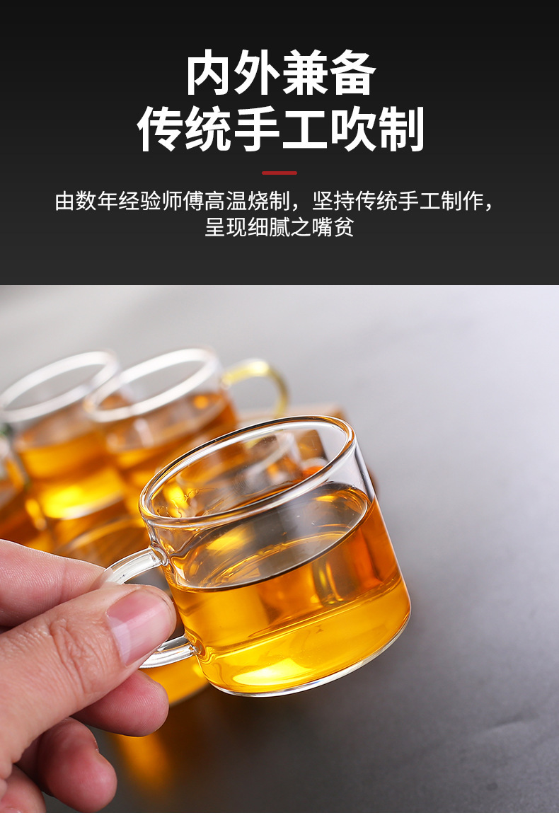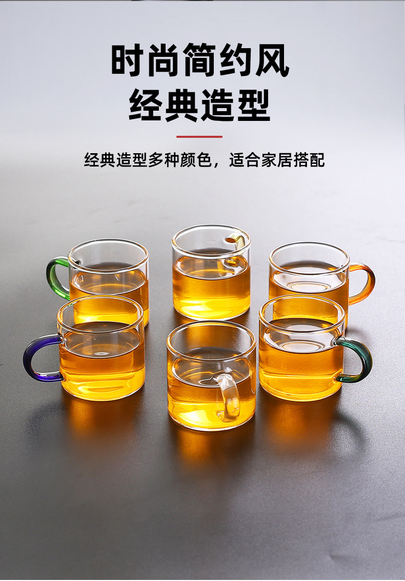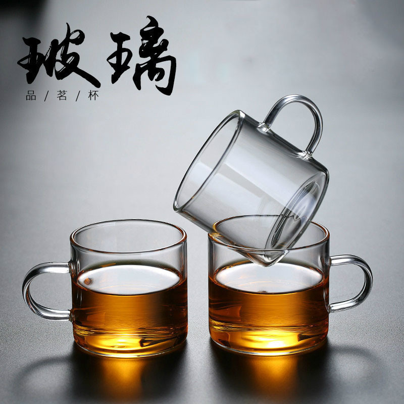 Thick heat-resistant small tea cup, transparent tea cup with handle, glass cup, household straight handle tea cup set