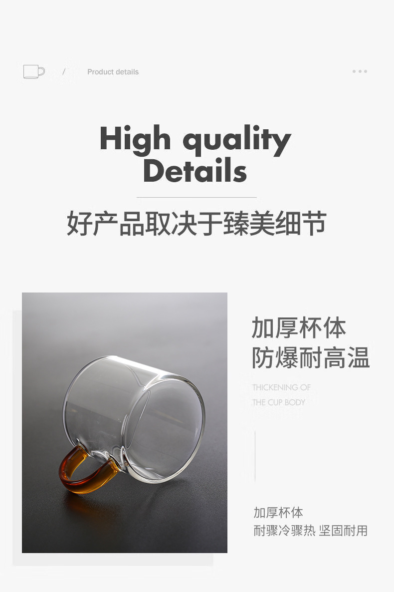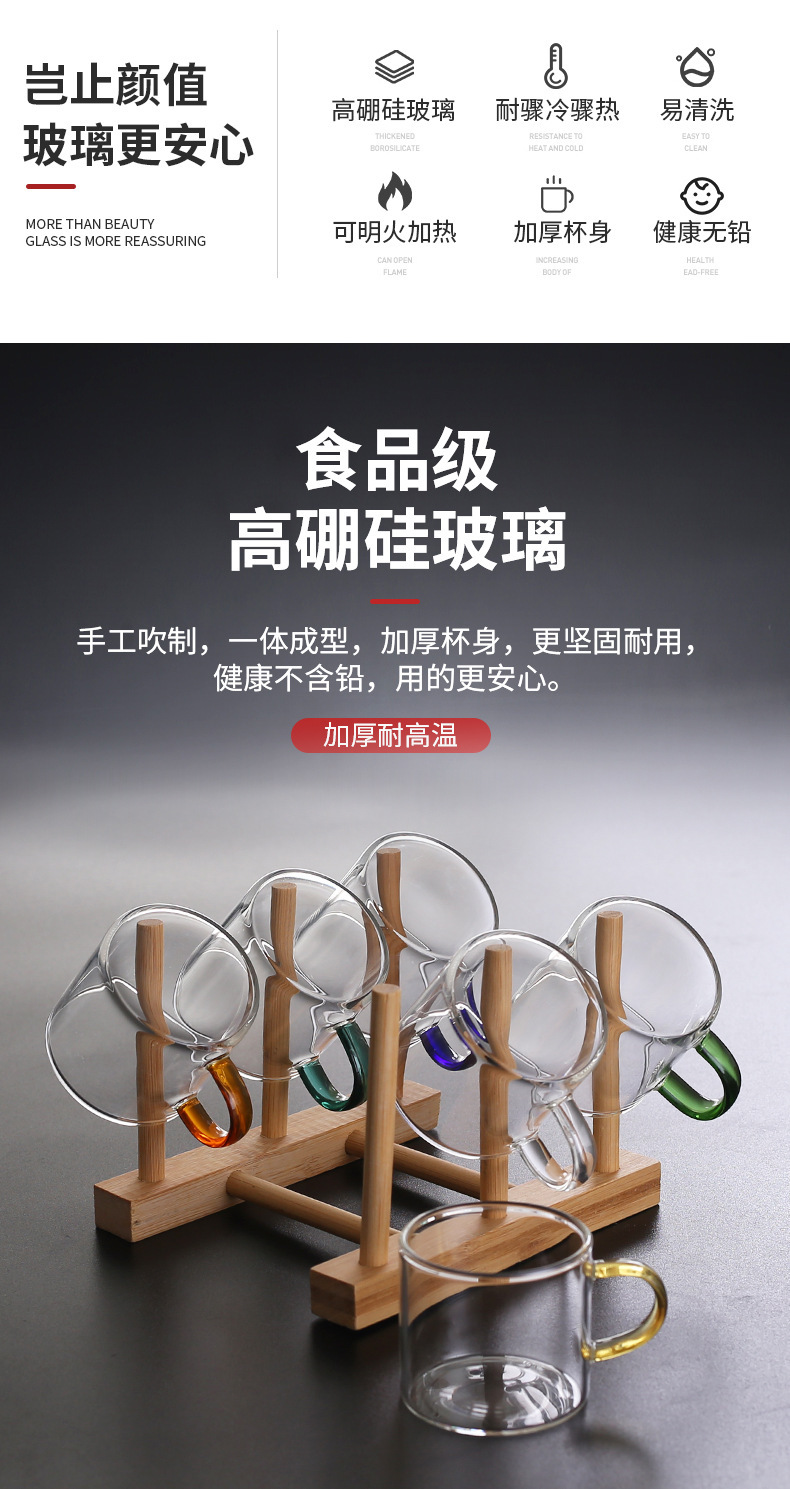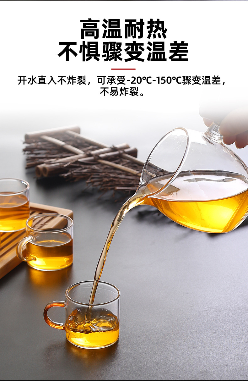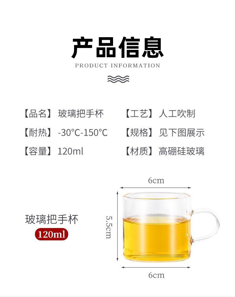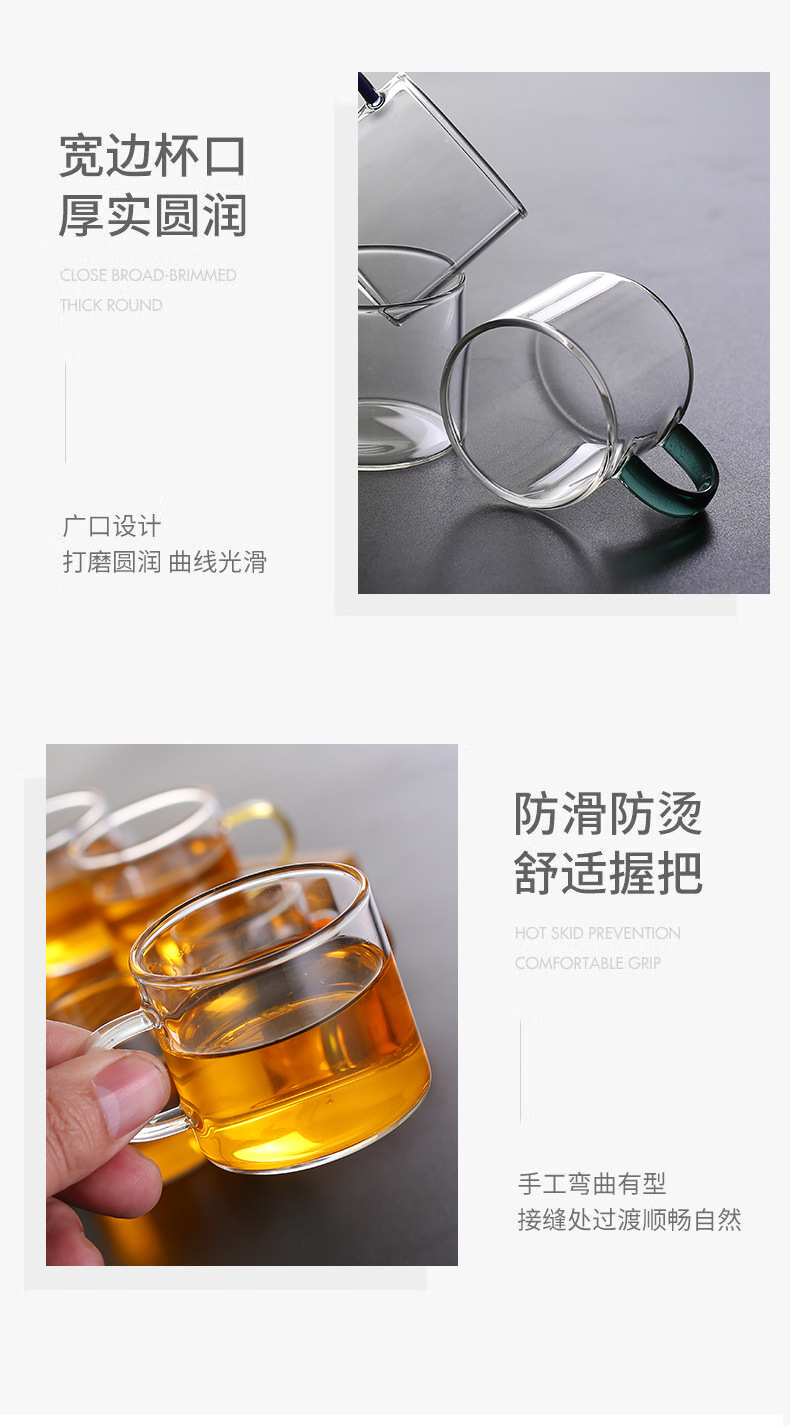 Thick heat-resistant small tea cup, transparent tea cup with handle, glass cup, household straight handle tea cup set