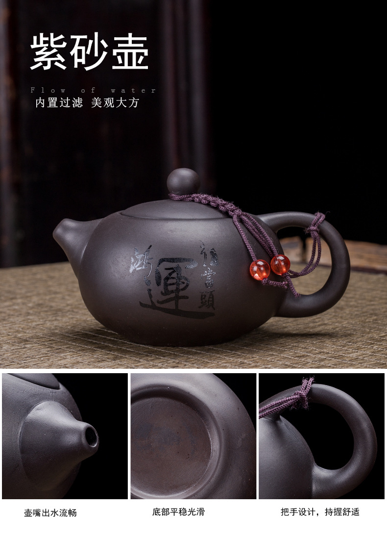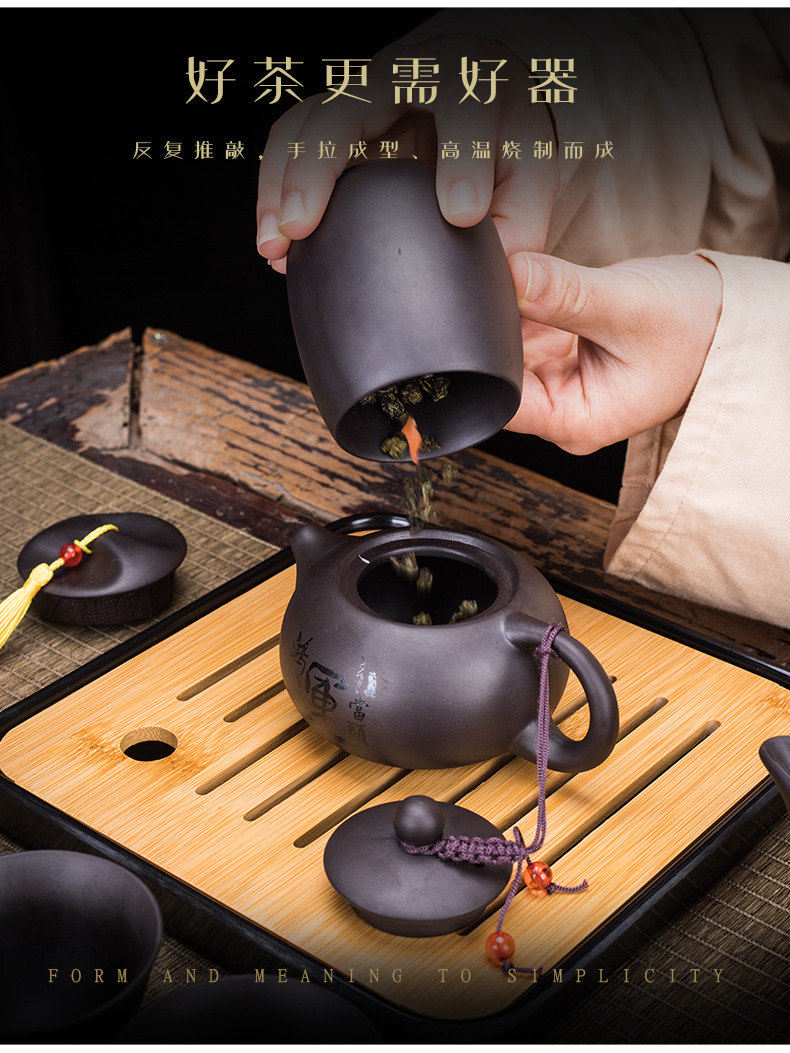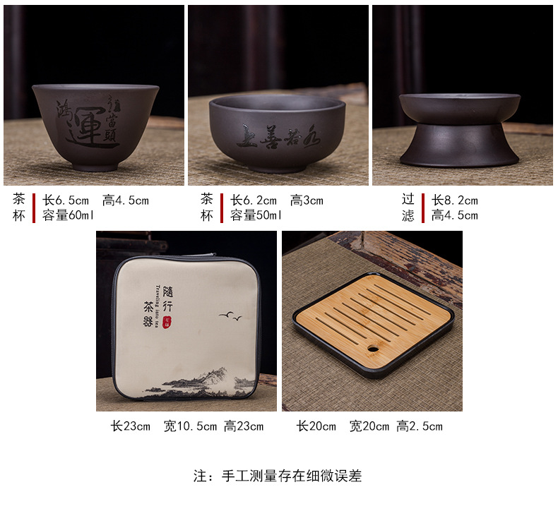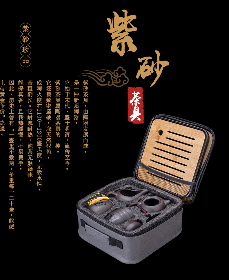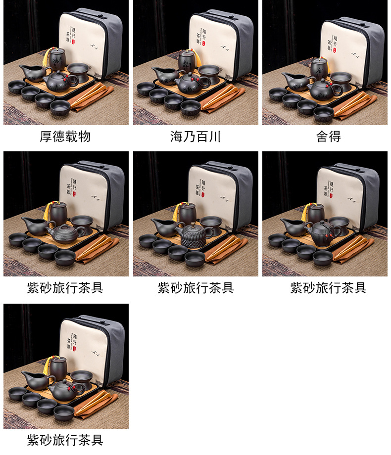 Portable Xishi teapot purple clay kung fu tea set for home travel, business trip, leather bag, tea tray, teapot with tea can