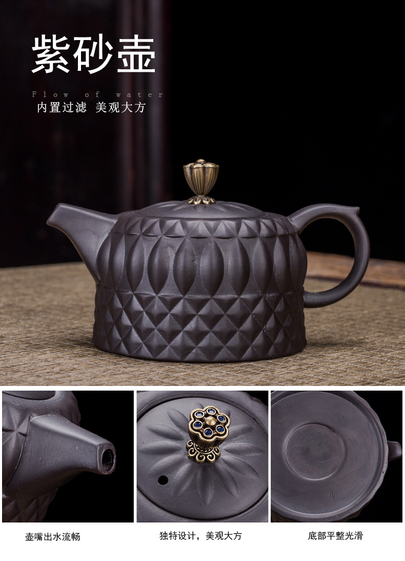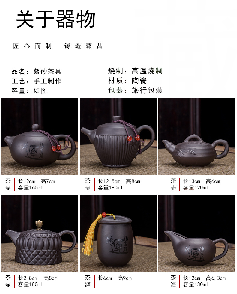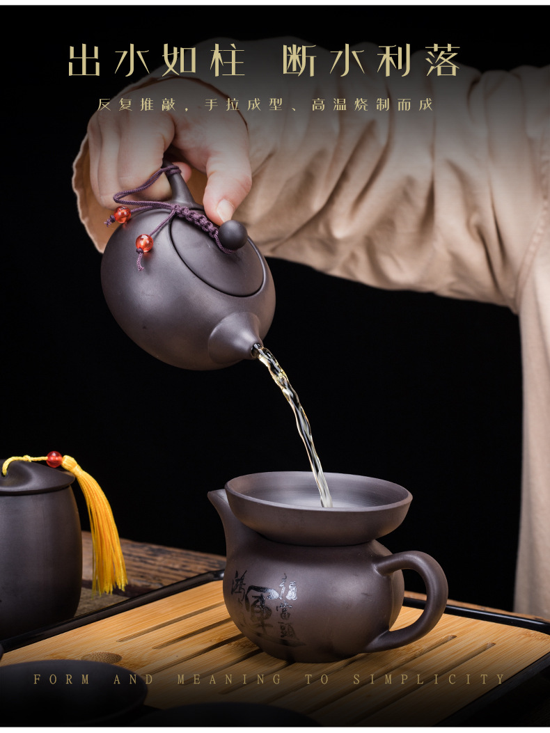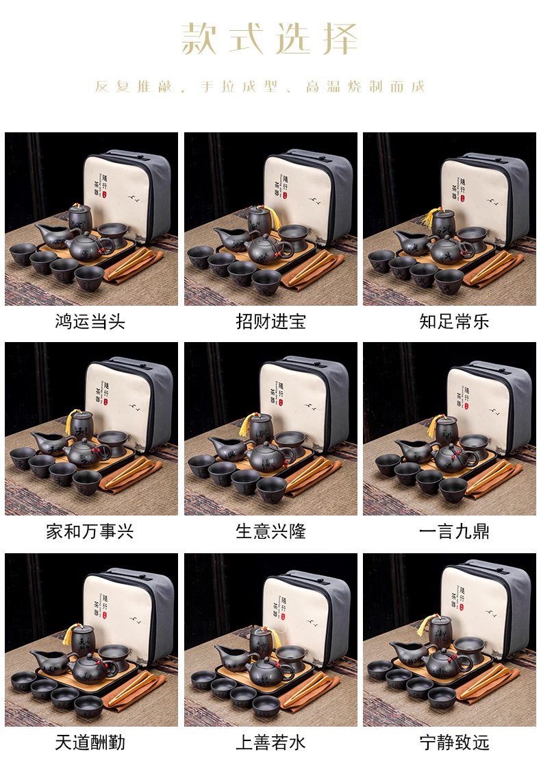 Portable Xishi teapot purple clay kung fu tea set for home travel, business trip, leather bag, tea tray, teapot with tea can