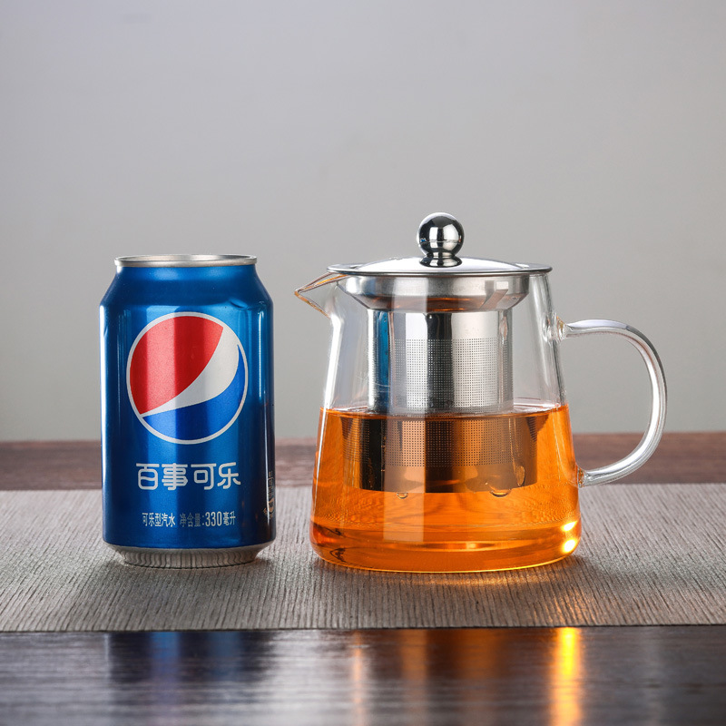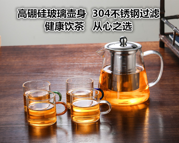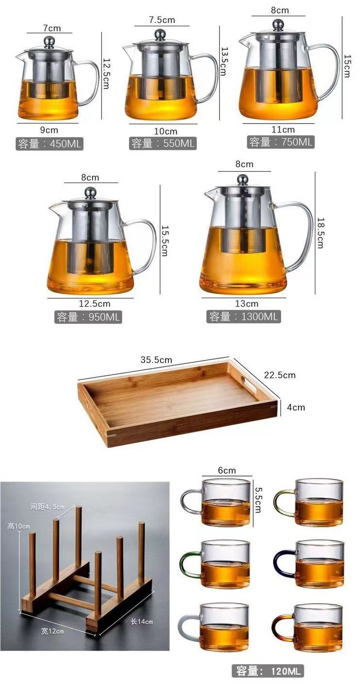 Manufacturer wholesale thick glass teapot, heat-resistant flower tea pot, brewing teapot, stainless steel filtering teapot, tea set