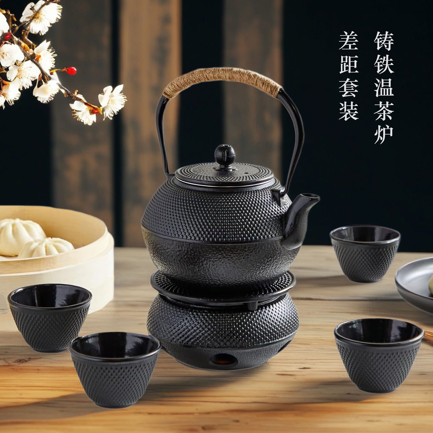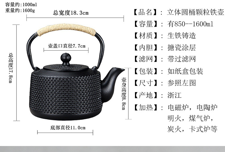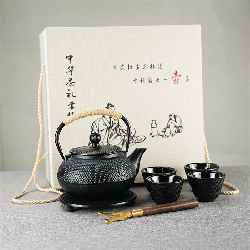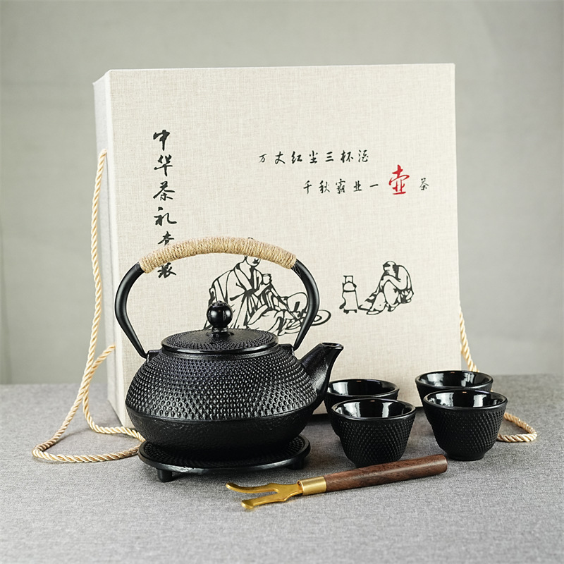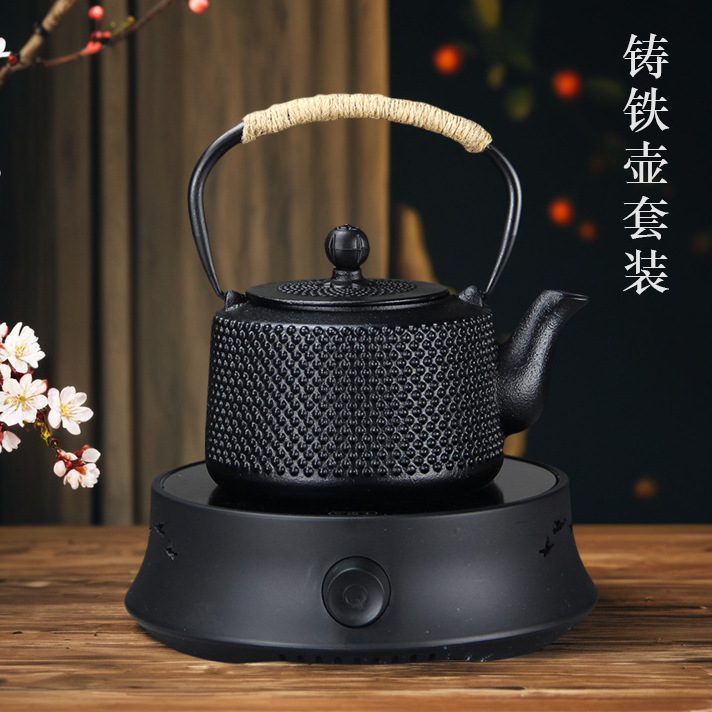 Japanese pig iron teapot, kettle, tea maker, household stove, cast iron teapot, warm tea stove, tea set, gift