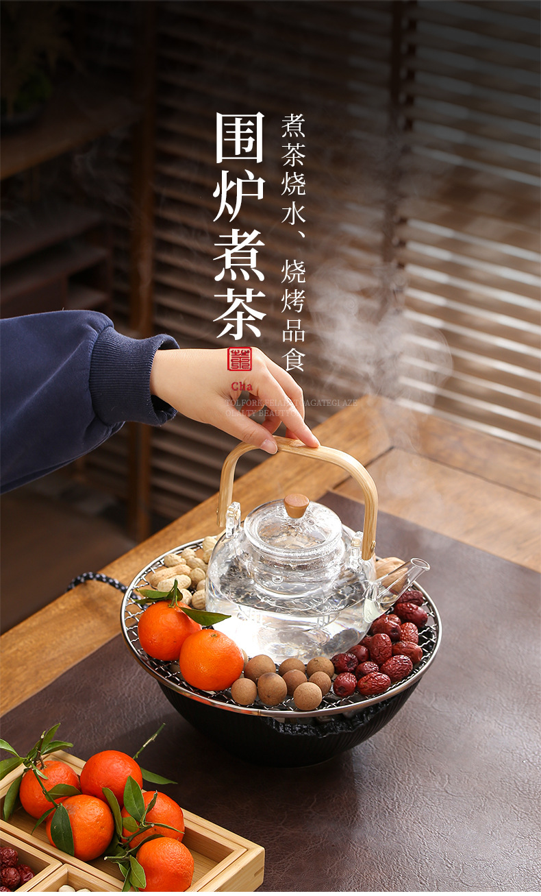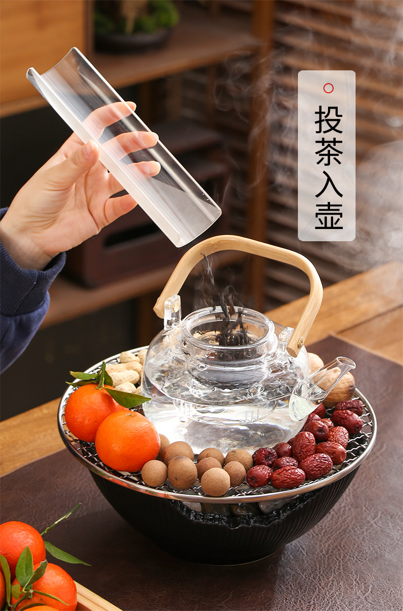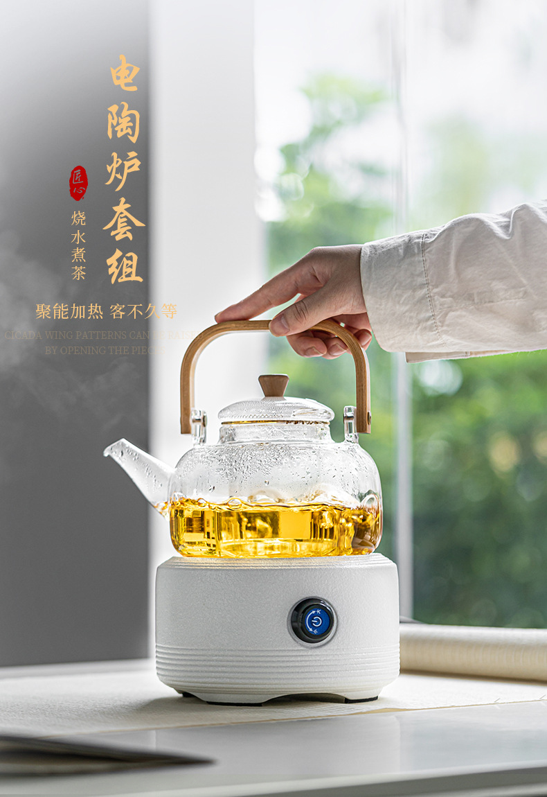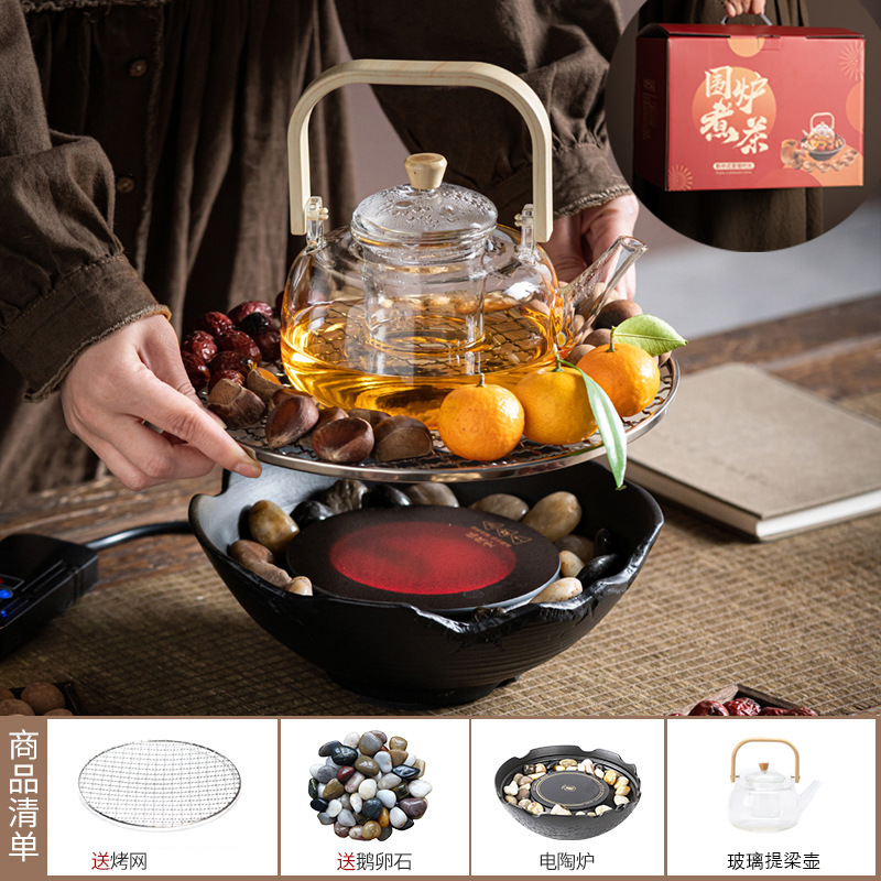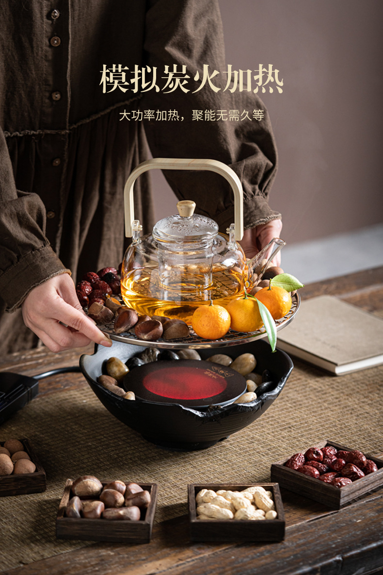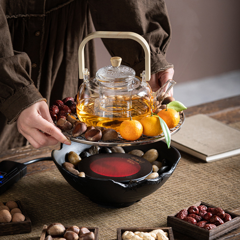 Красная печь для заваривания чая в комнате Электрическая керамическая печь Цветной чай Чайный сервиз Стеклянный чайник для заваривания волос