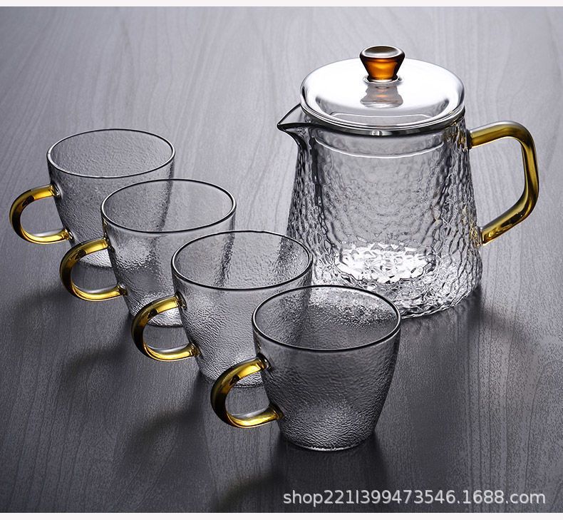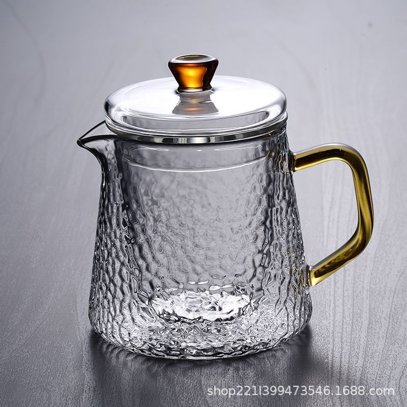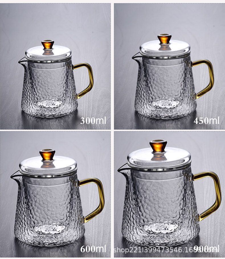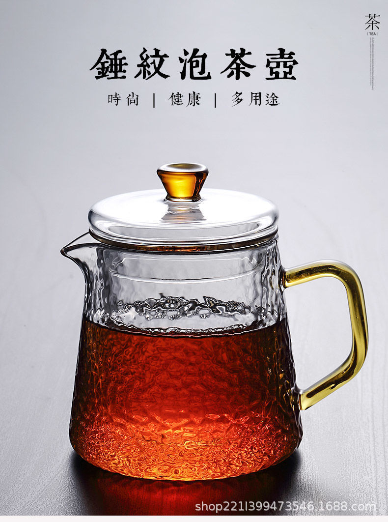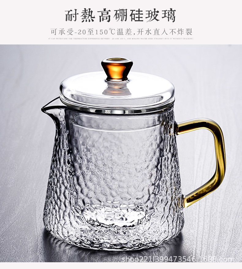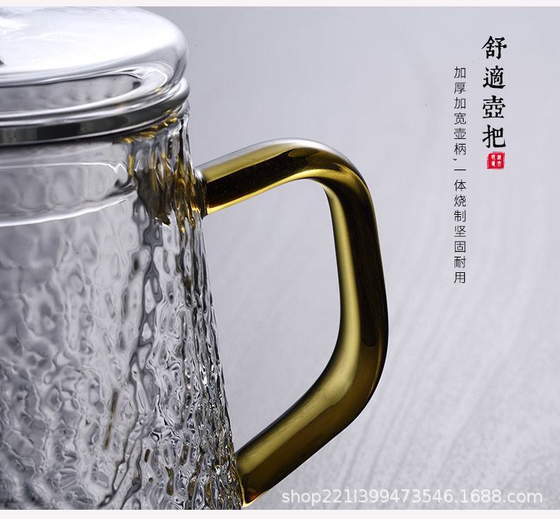 Thickened glass flower tea pot, Kung Fu tea pot, hammer patterned office teapot, heat-resistant brewing teapot, boiling teapot set