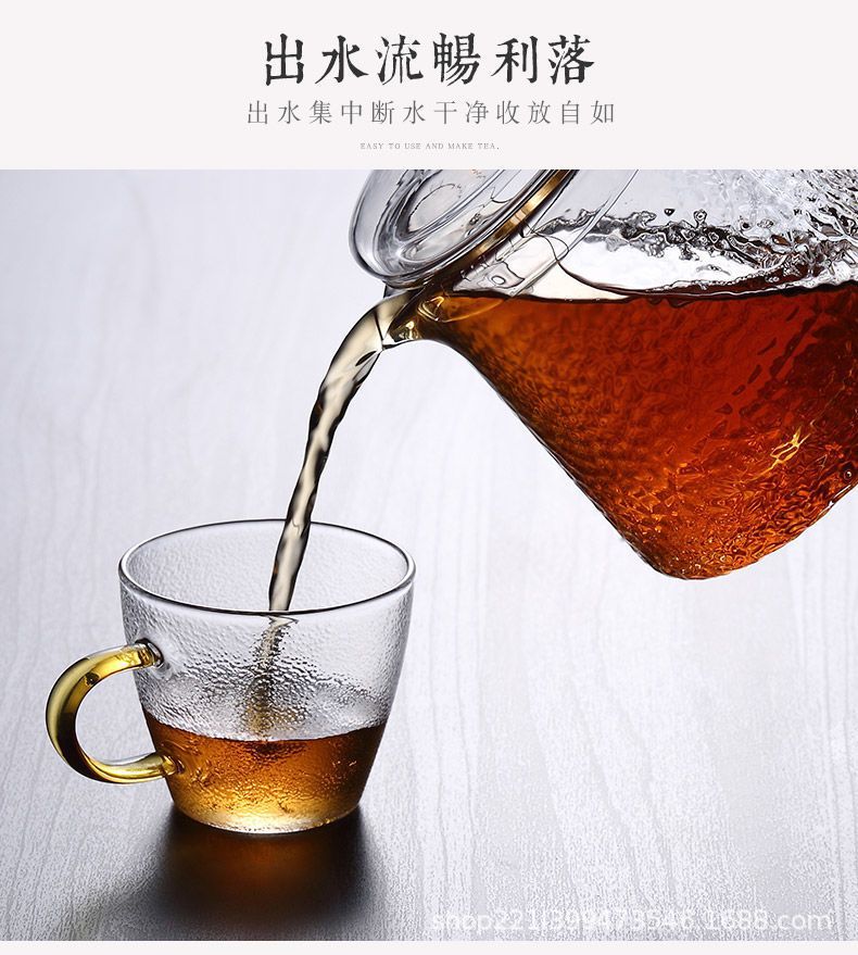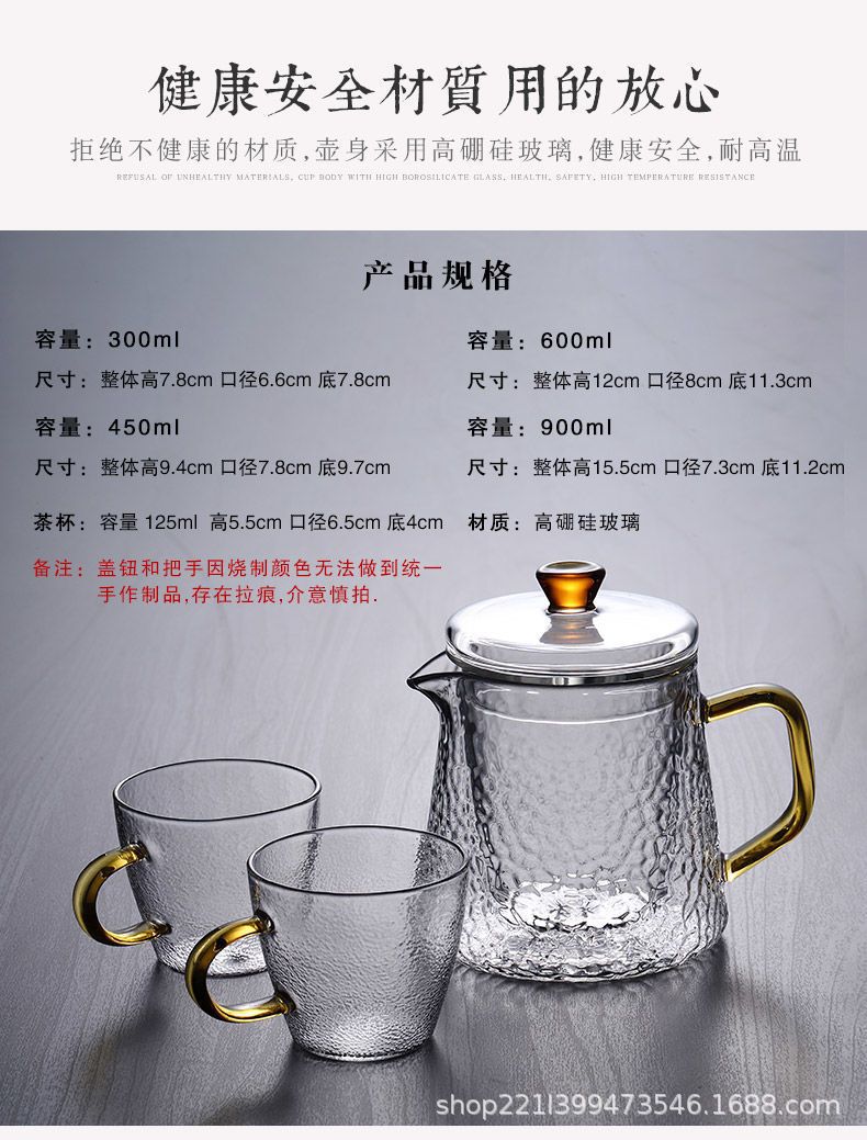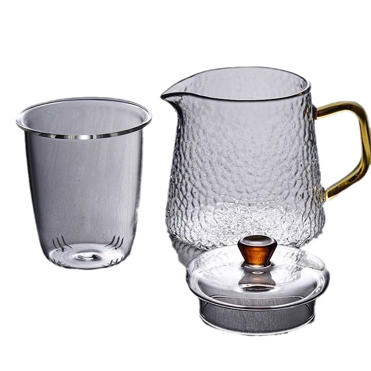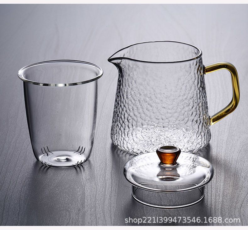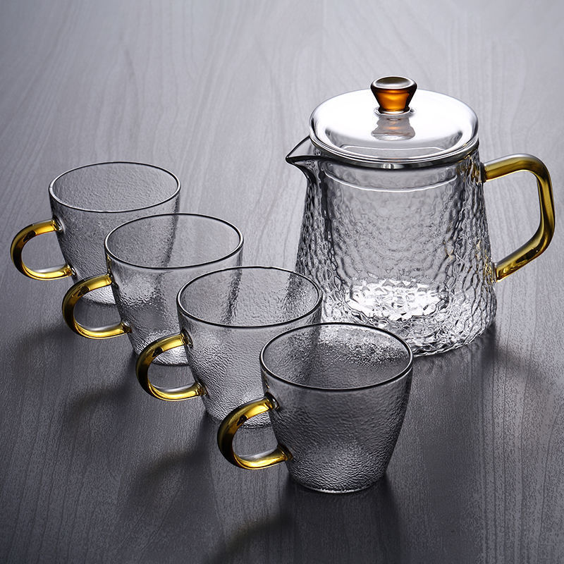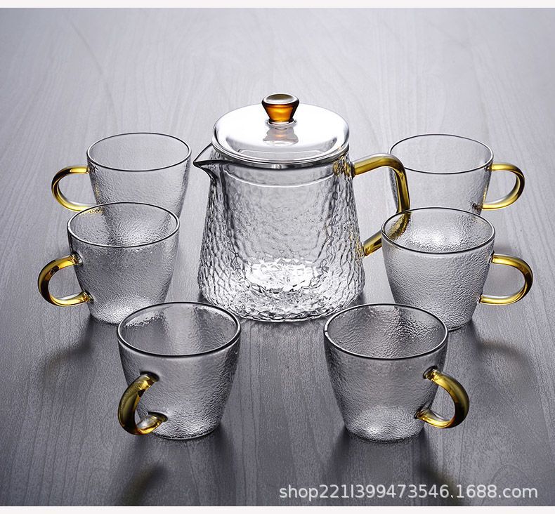 Thickened glass flower tea pot, Kung Fu tea pot, hammer patterned office teapot, heat-resistant brewing teapot, boiling teapot set