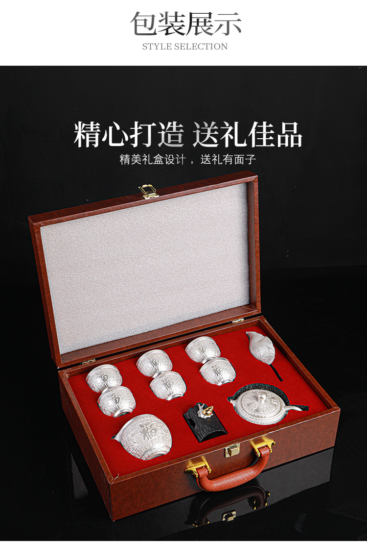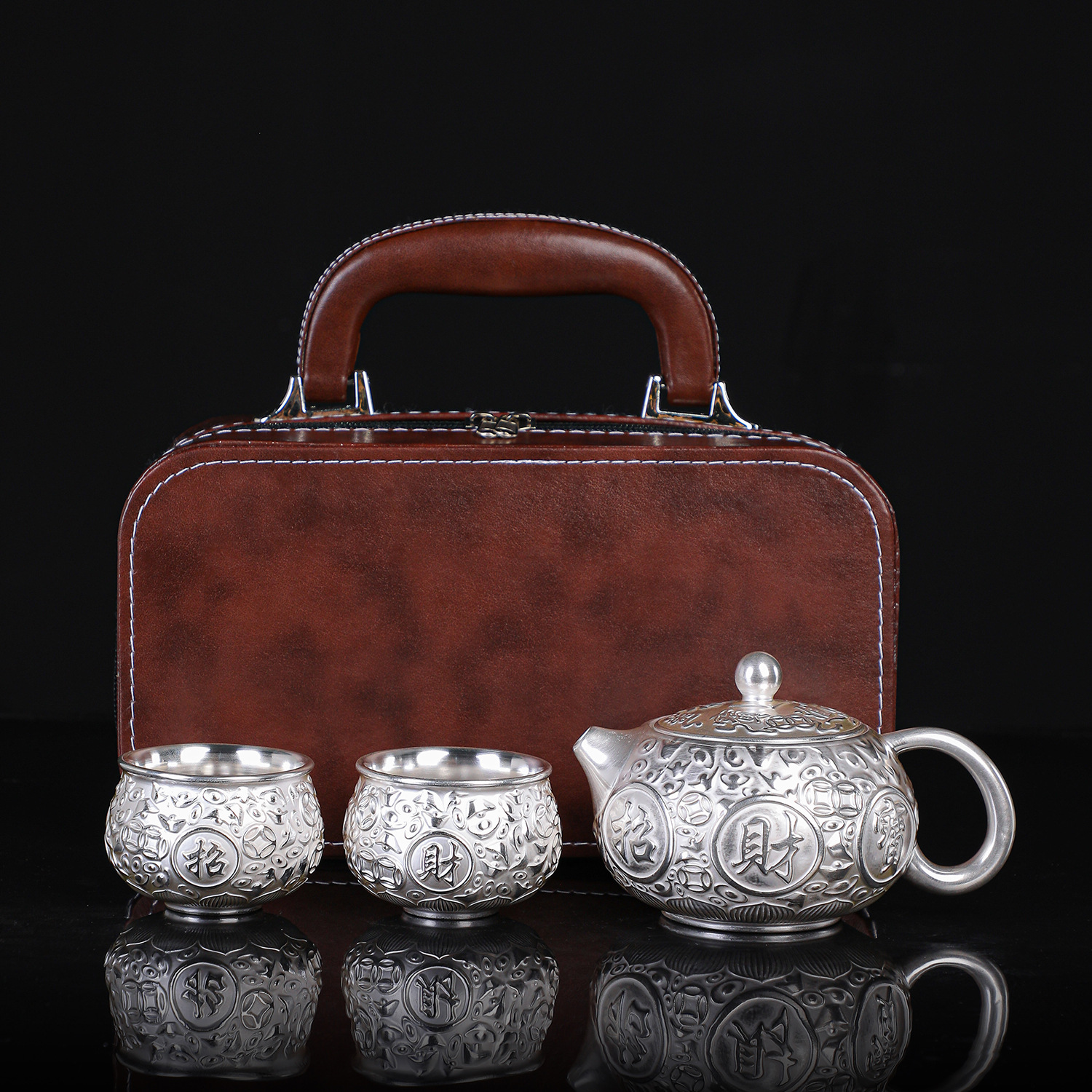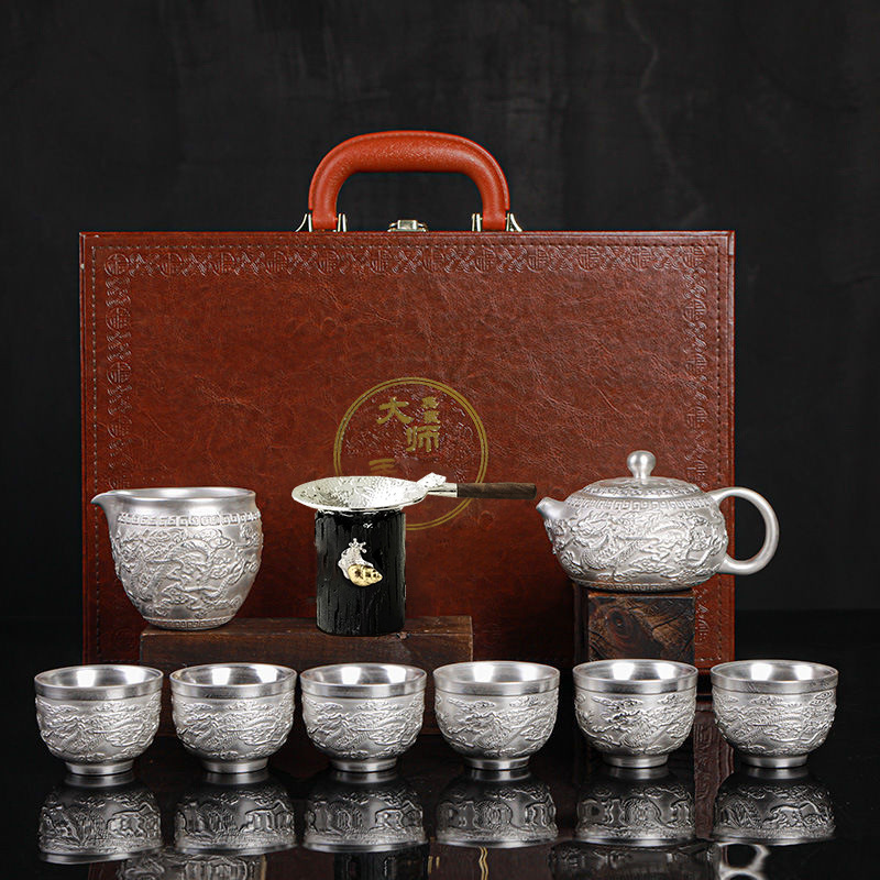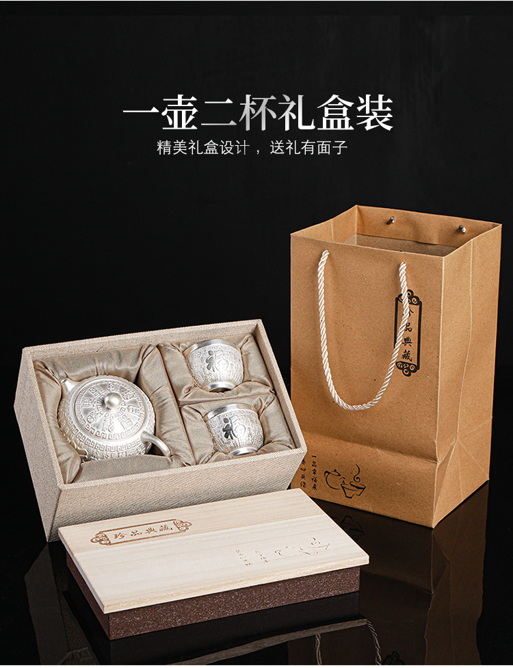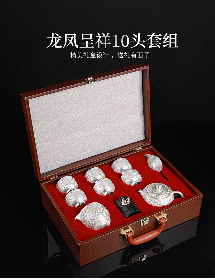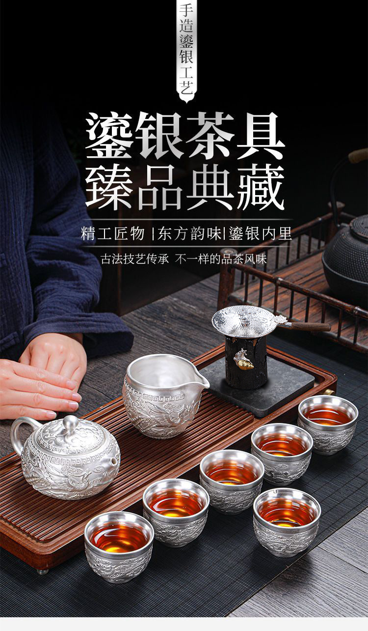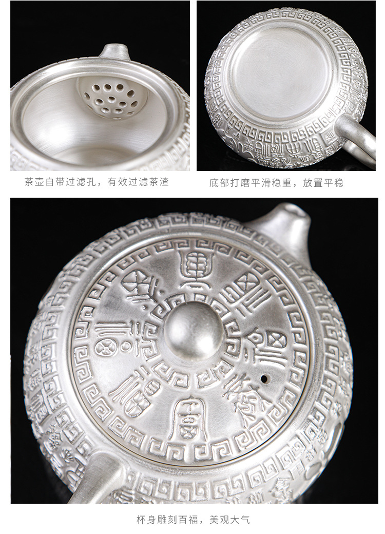 999 Gilded Silver Kung Fu Tea Set, Baifu Ceramic Teapot Cover, Tea Cup, Silver Tea Set, High end Business Companion Gift
